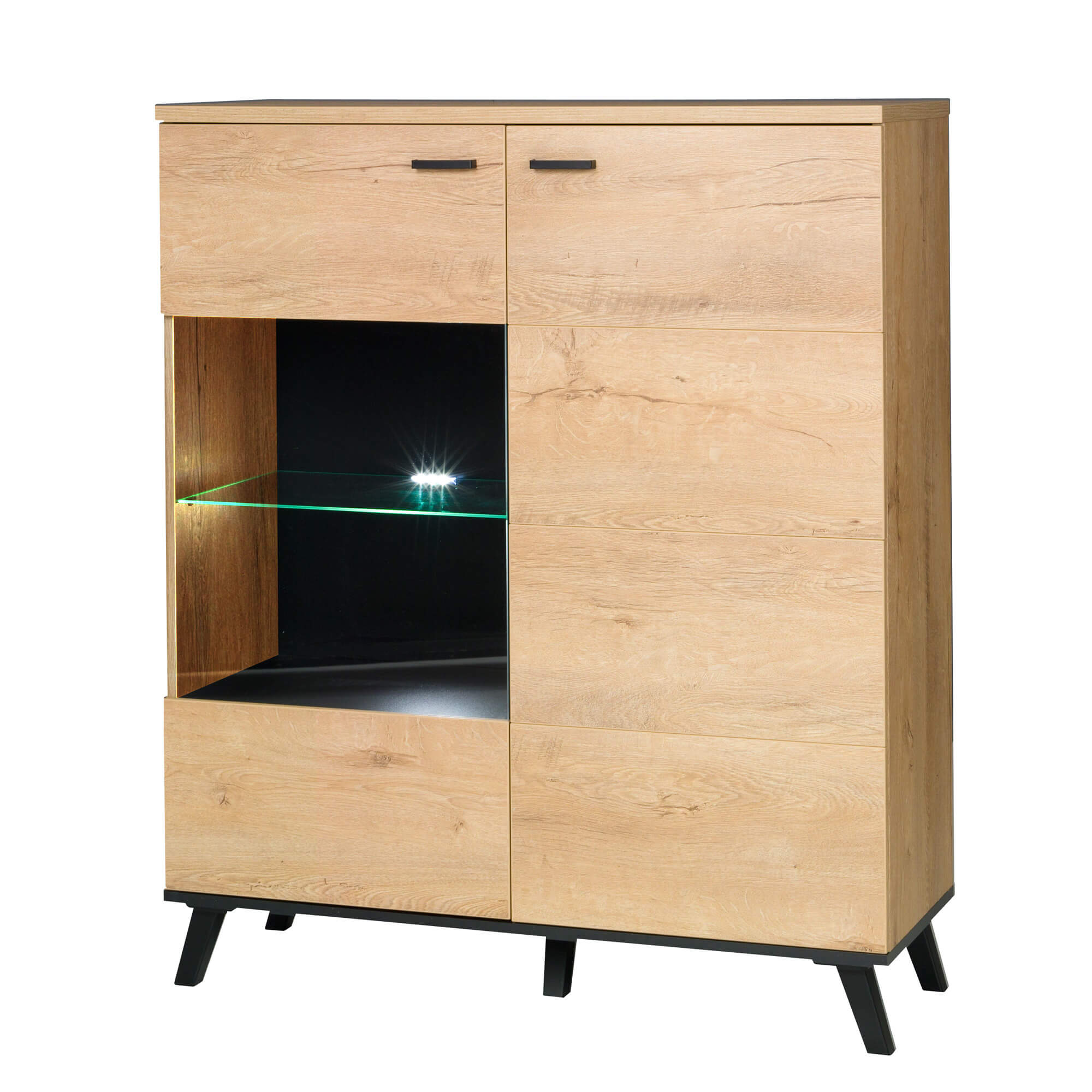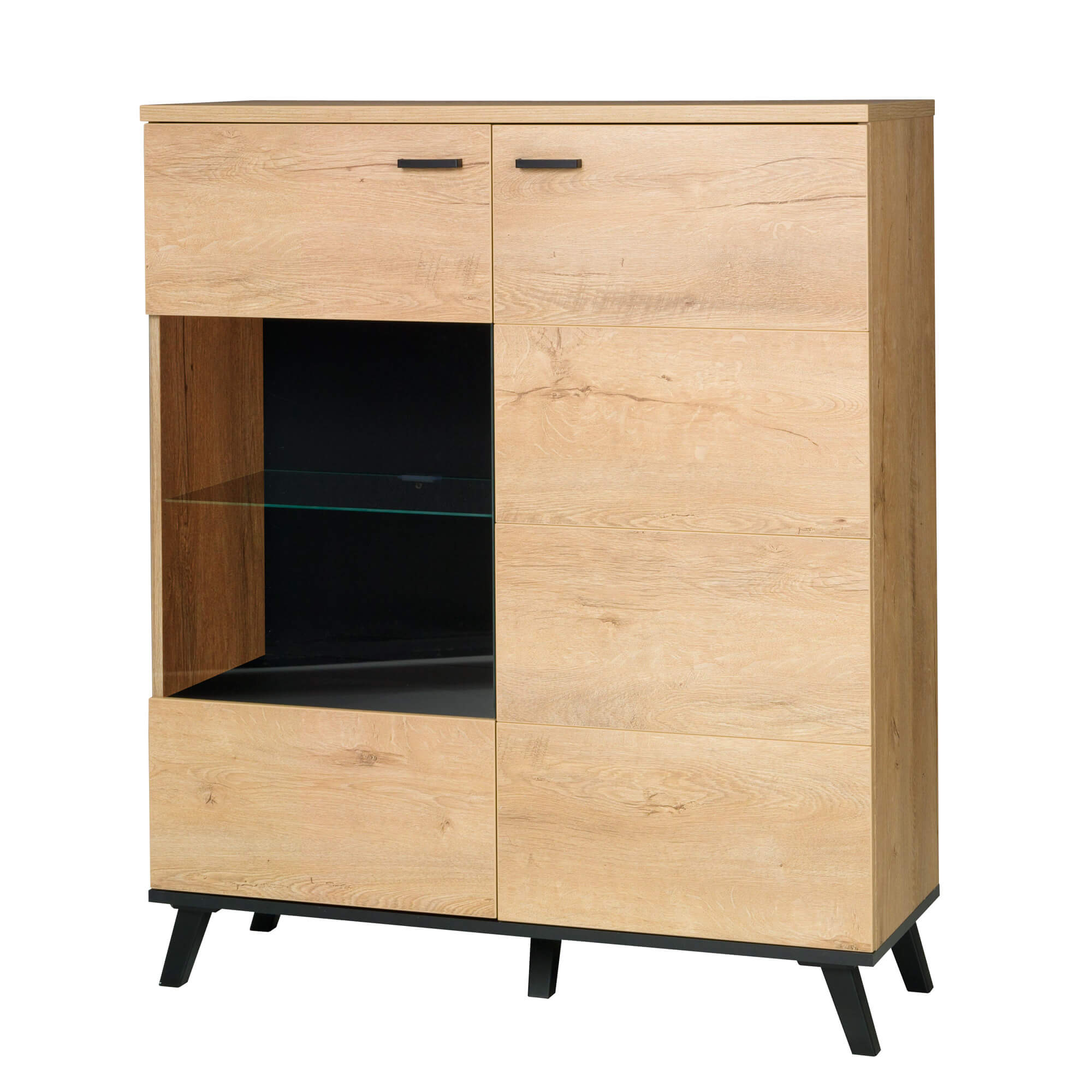 - Komoda z witryną JON 4: szerokość: 101 cm; wysokość: 121 cm; głębokość: 40 cm