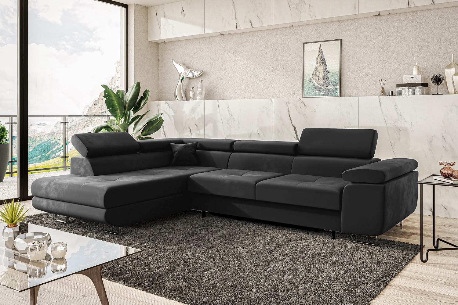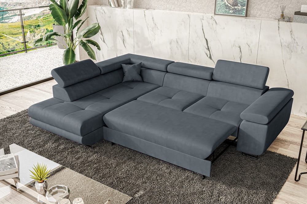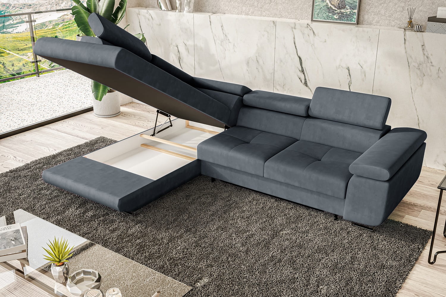 Narożnik do salonu CARL L z funkcją spania oraz pojemnikiem