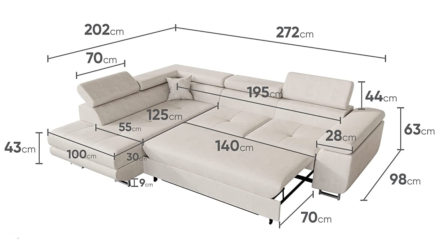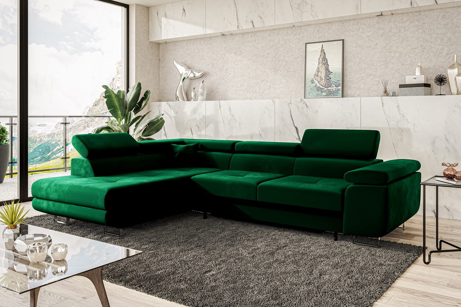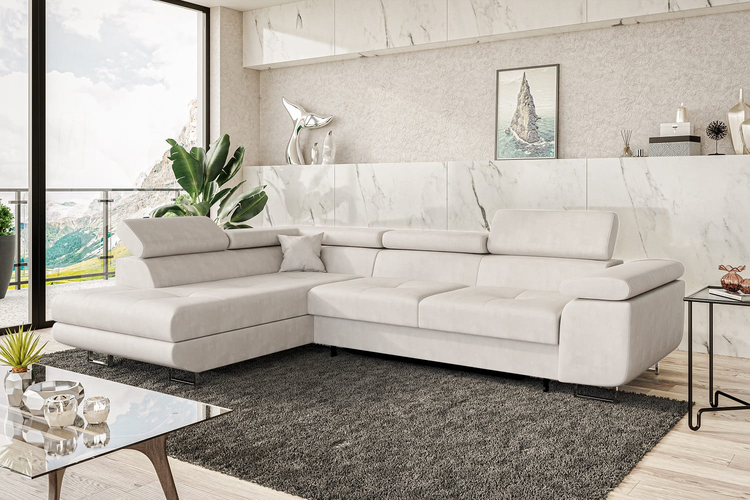Narożnik do salonu CARL L z funkcją spania oraz pojemnikiem