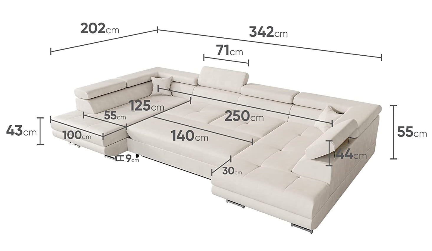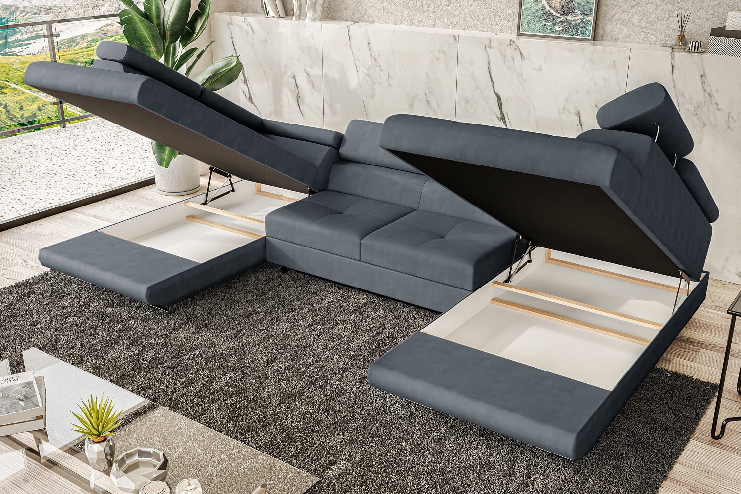 Narożnik CARL U z pojemnikami i funkcją spania