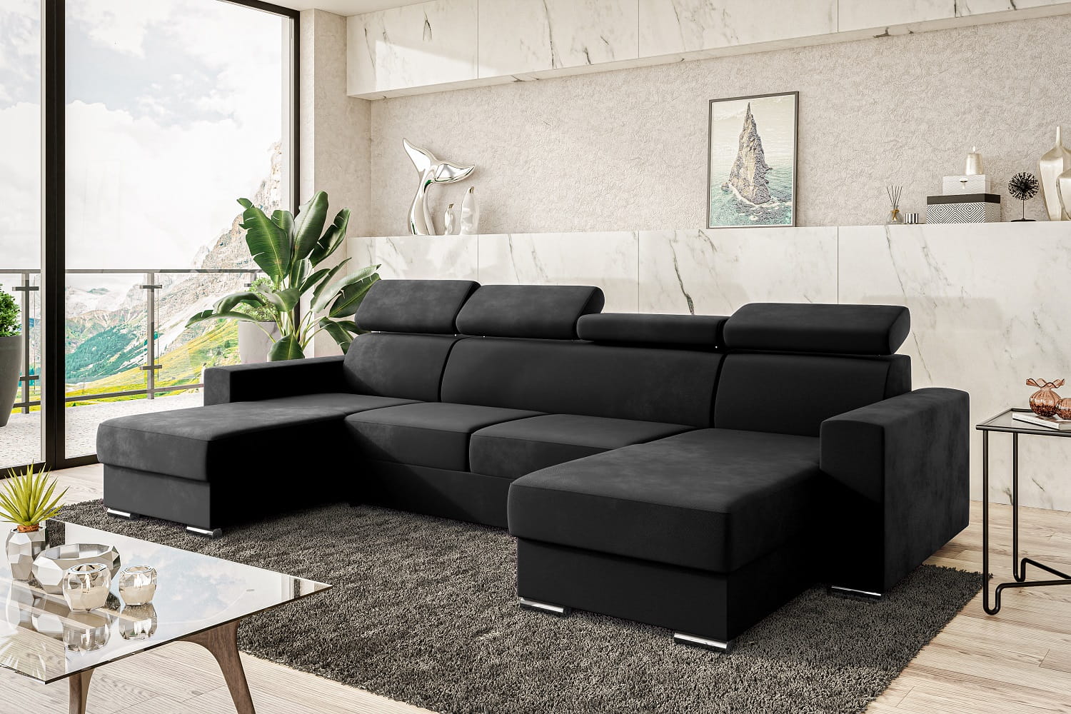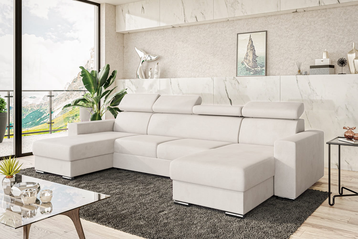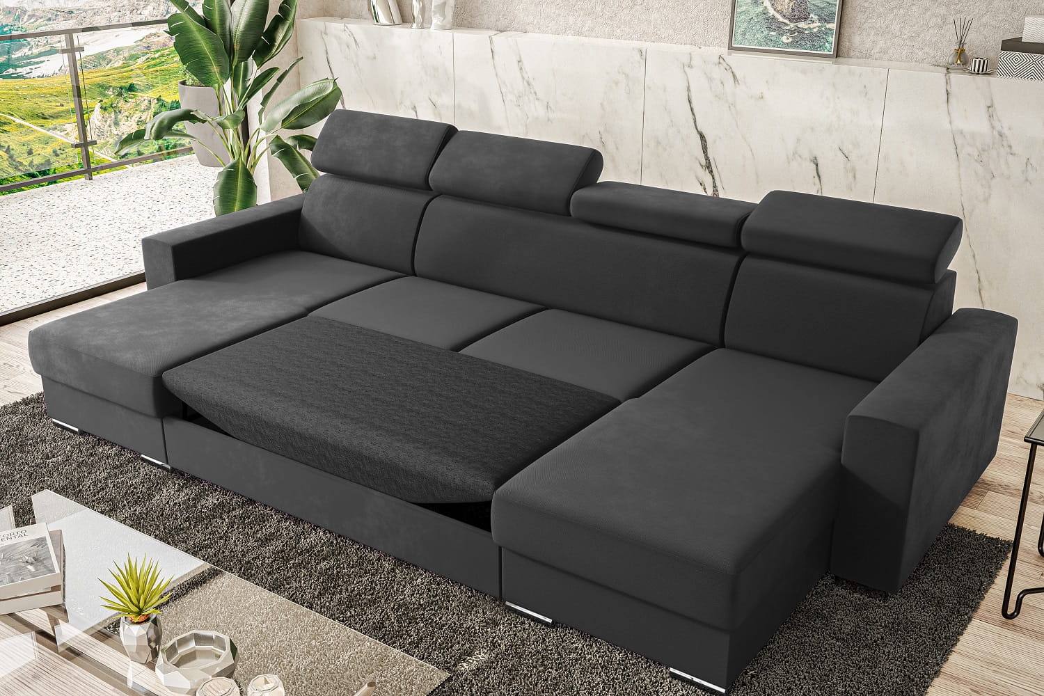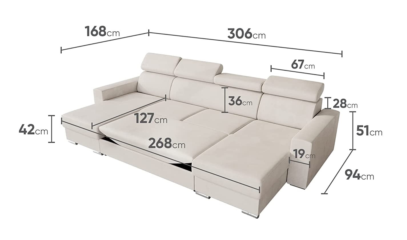 Narożnik VOSS U z funkcją spania i zagłówkami