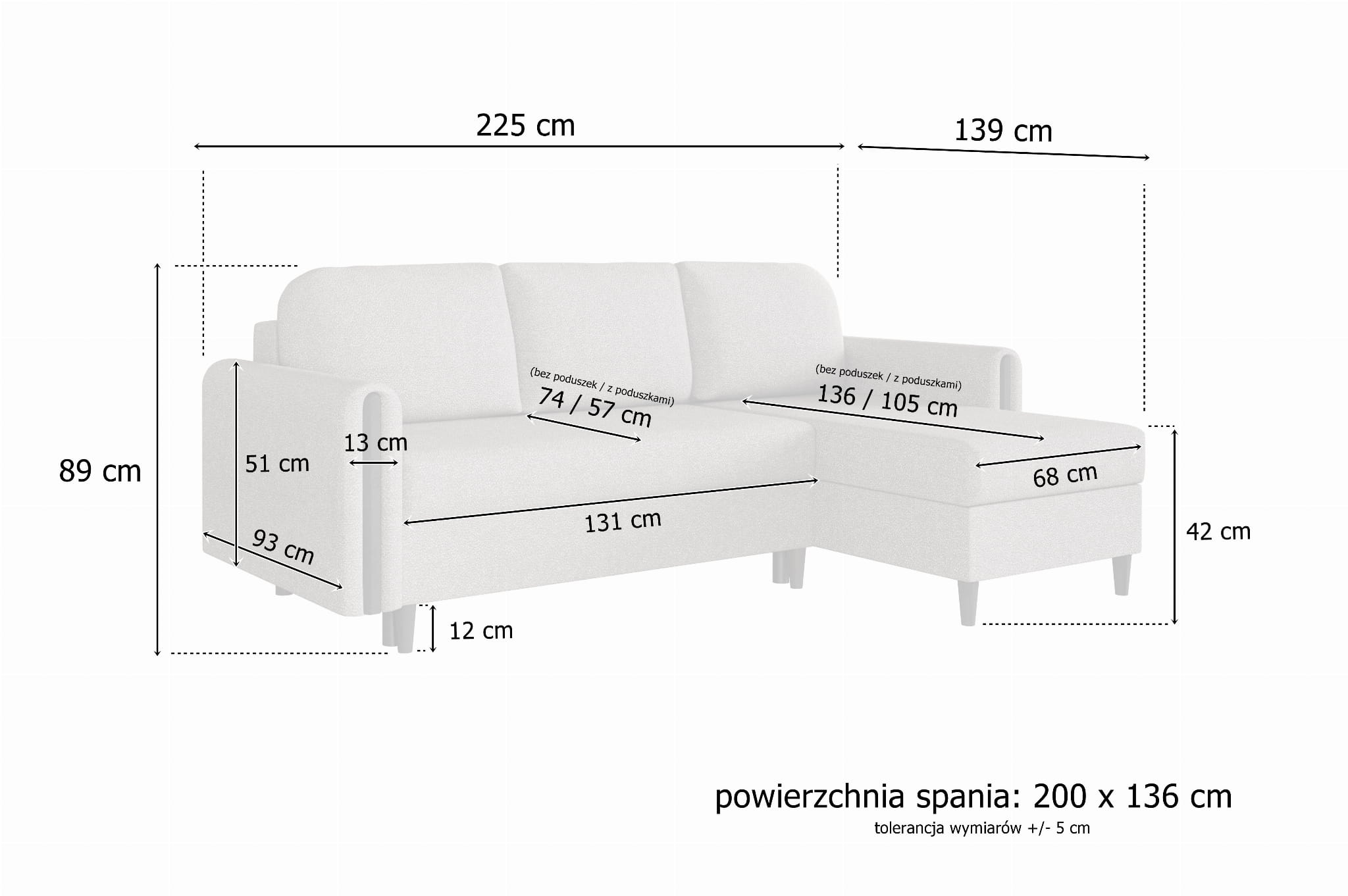 Podczas składania zamówienia prosimy wybrać preferowaną stronę narożnika oraz kolor nóżek.