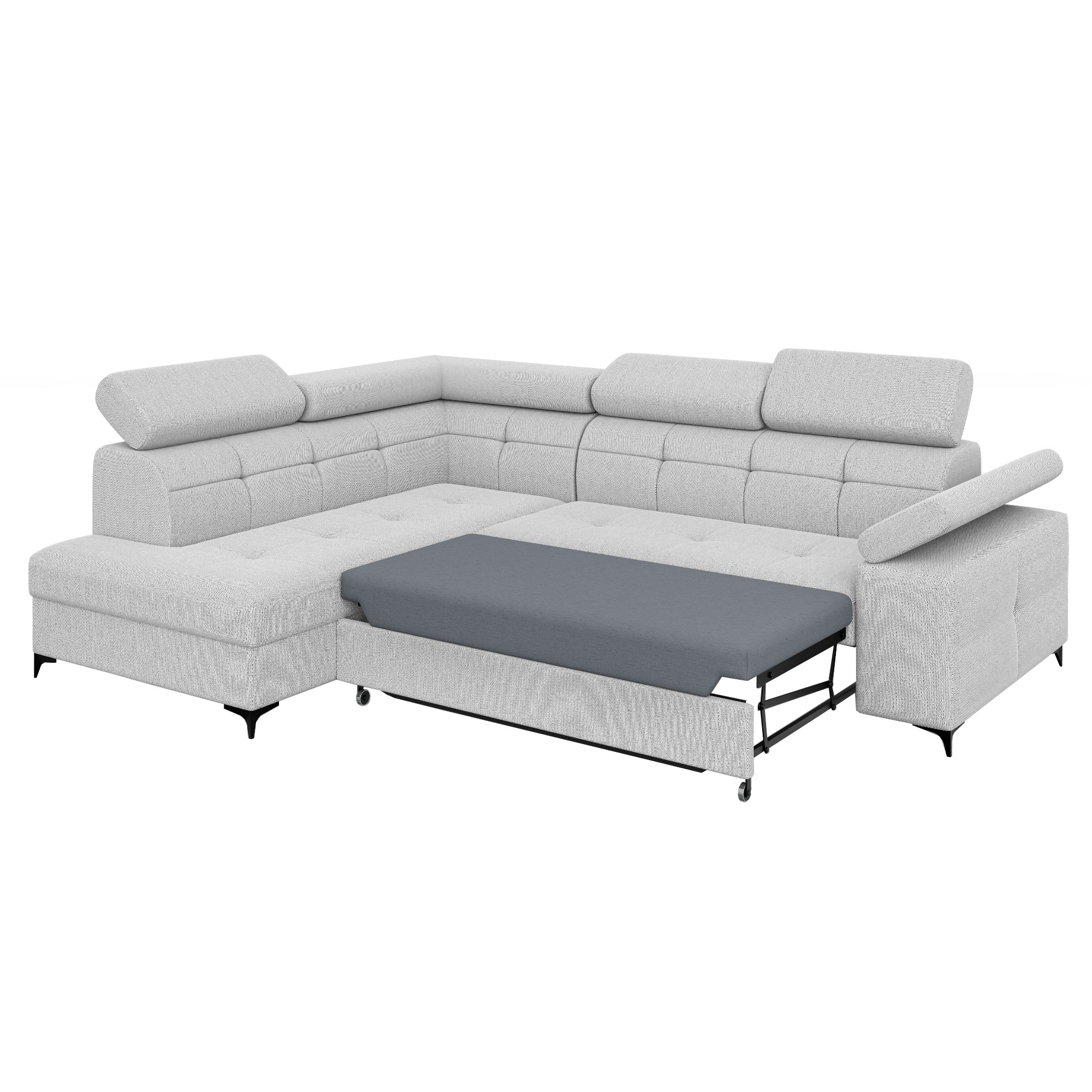 Narożnik biało-szary na nóżkach rozkładany BERGI