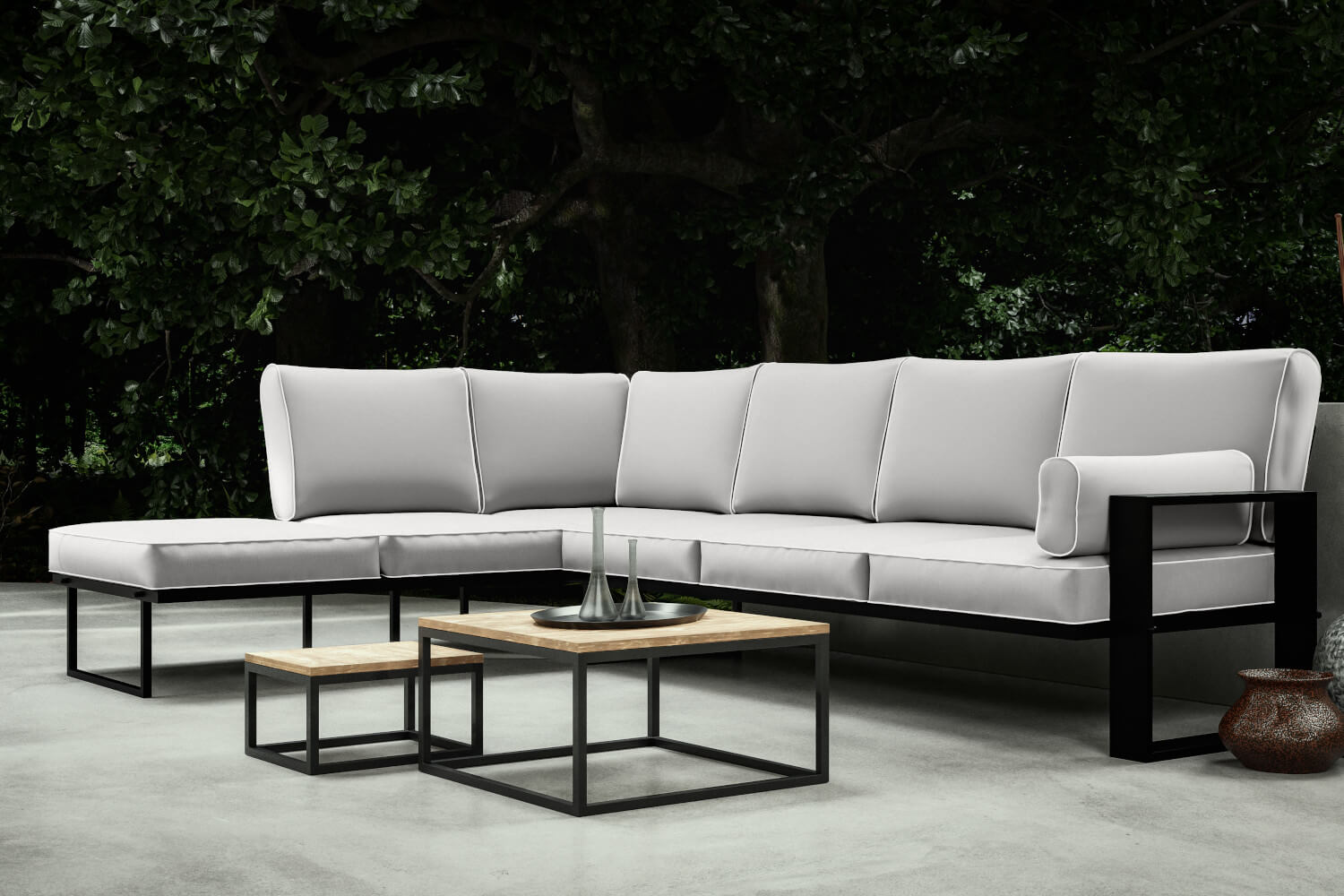 Narożnik ogrodowy LAVI to wyjątkowy mebel, który doda elegancji i funkcjonalności każdej przestrzeni na świeżym powietrzu. Model ten występuje w kształcie litery L i cechuje się imponującą szerokością 292 cm. Mebel ten oferuje mnóstwo miejsca do siedzenia. Z tego względu to idealna propozycja na rodzinne spotkania.
