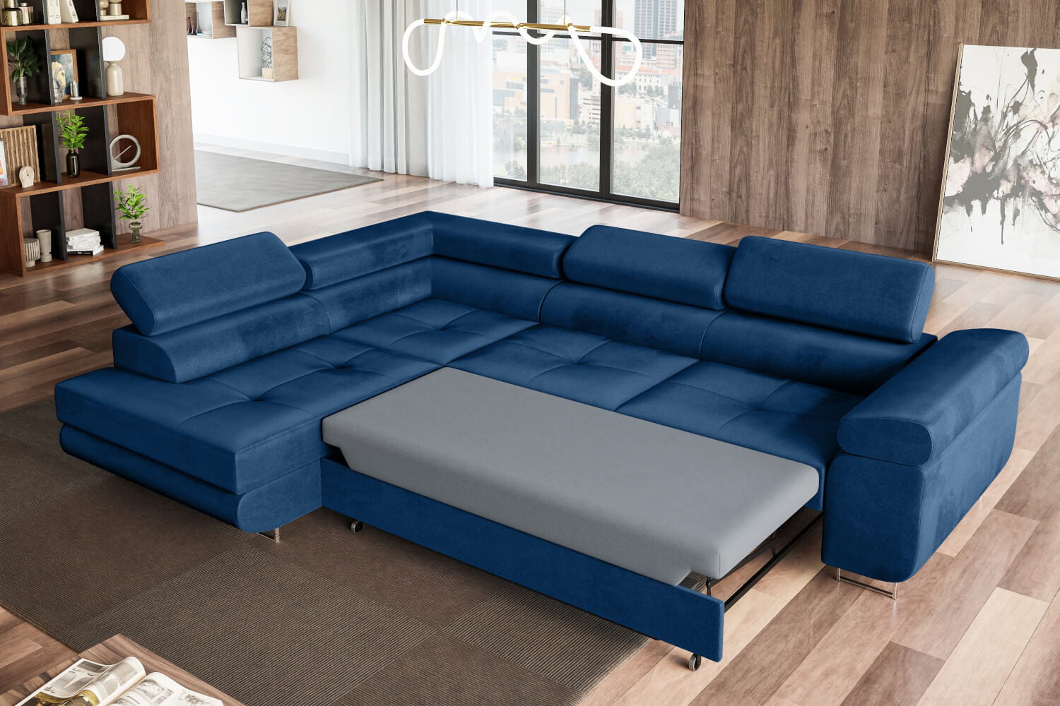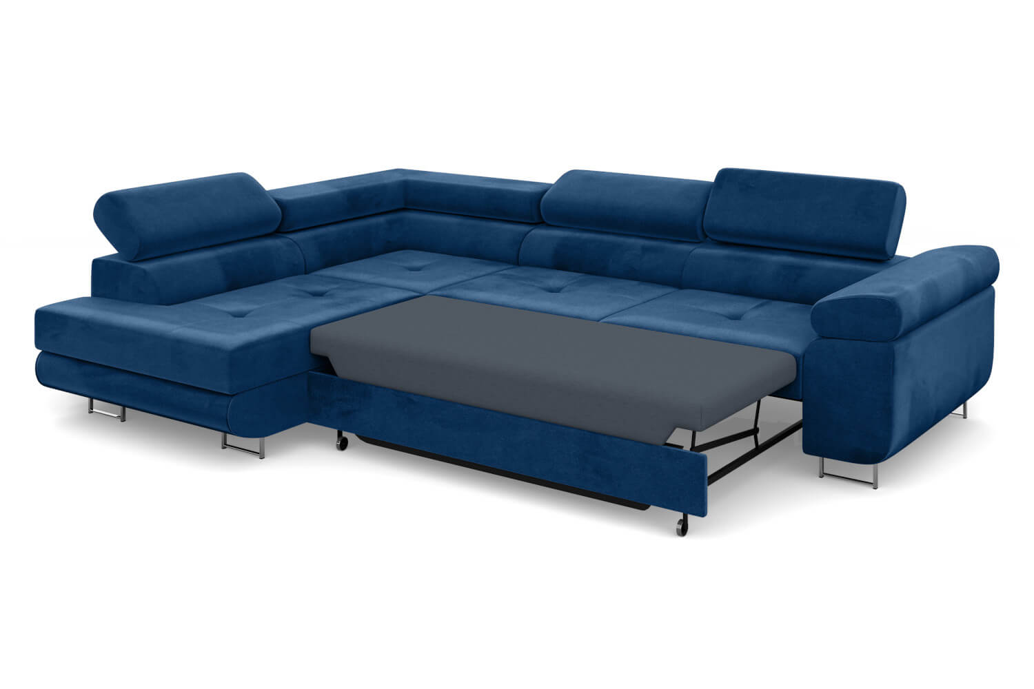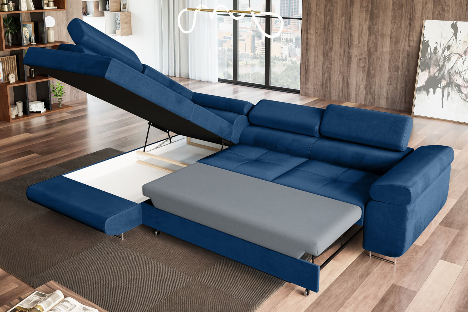 Narożnik granatowy z pojemnikiem na pościel MALIBA