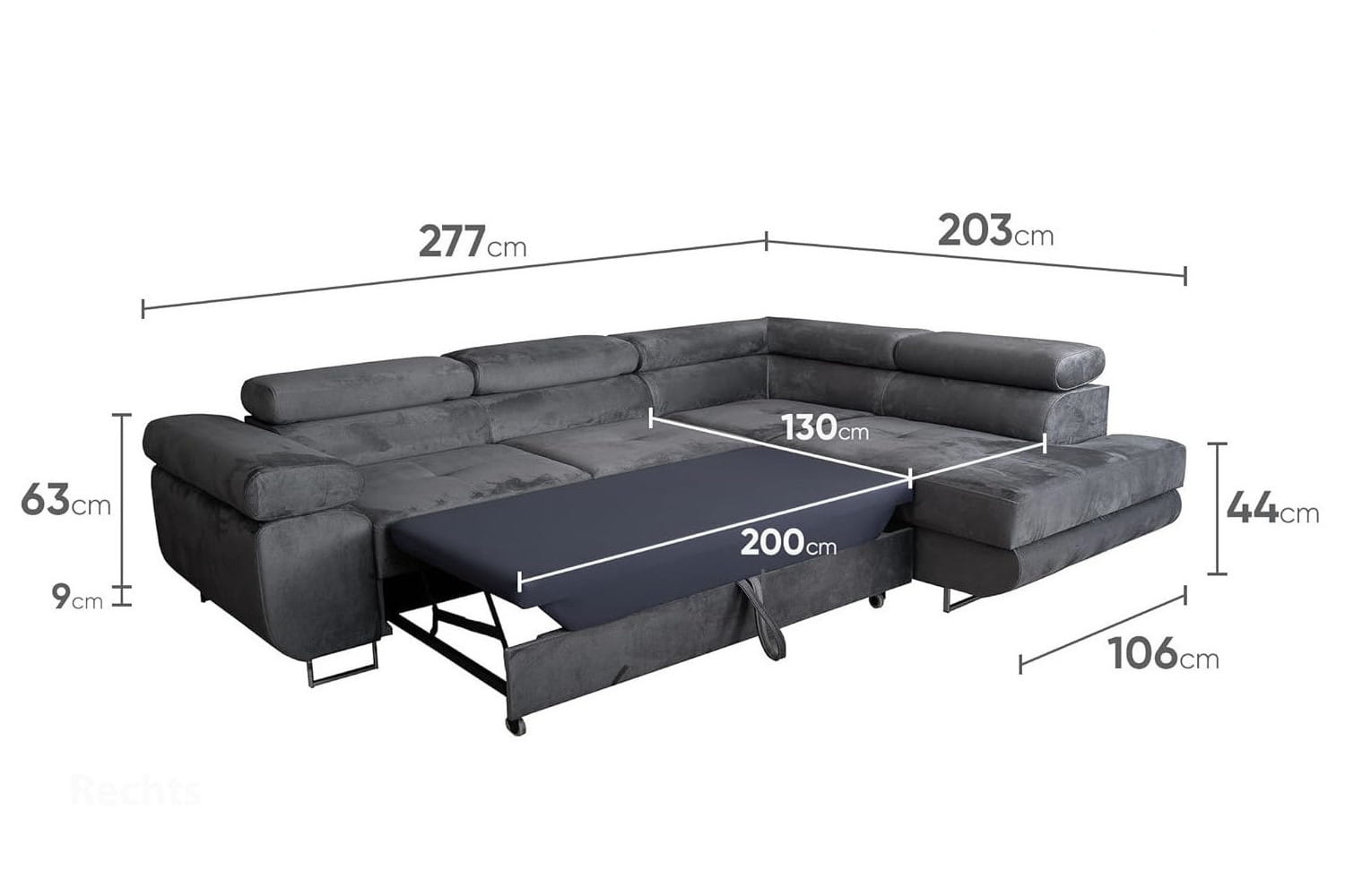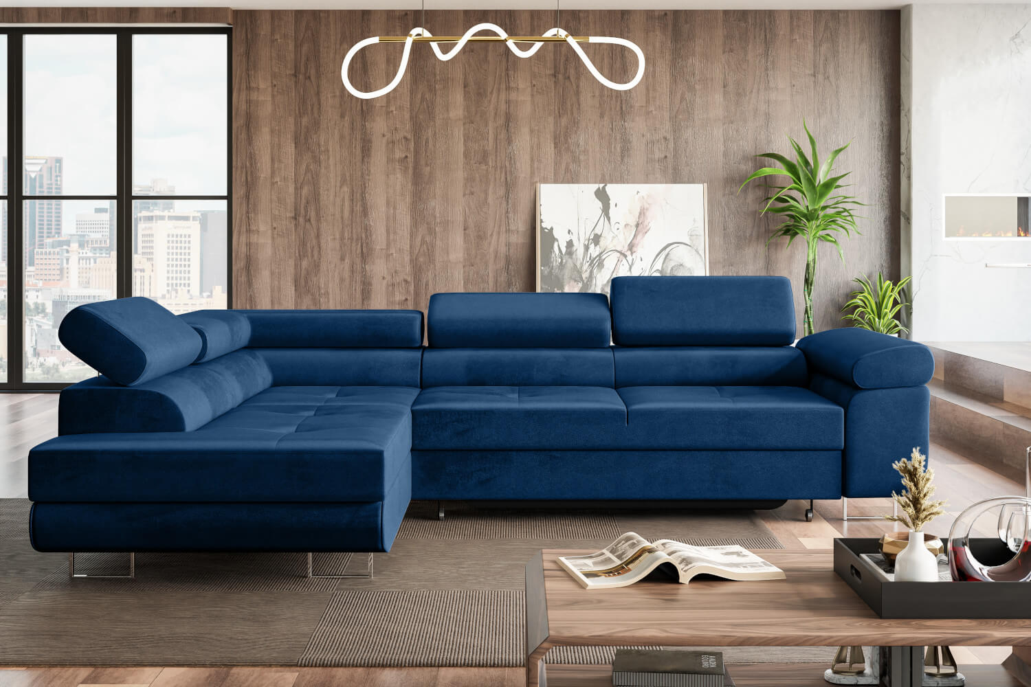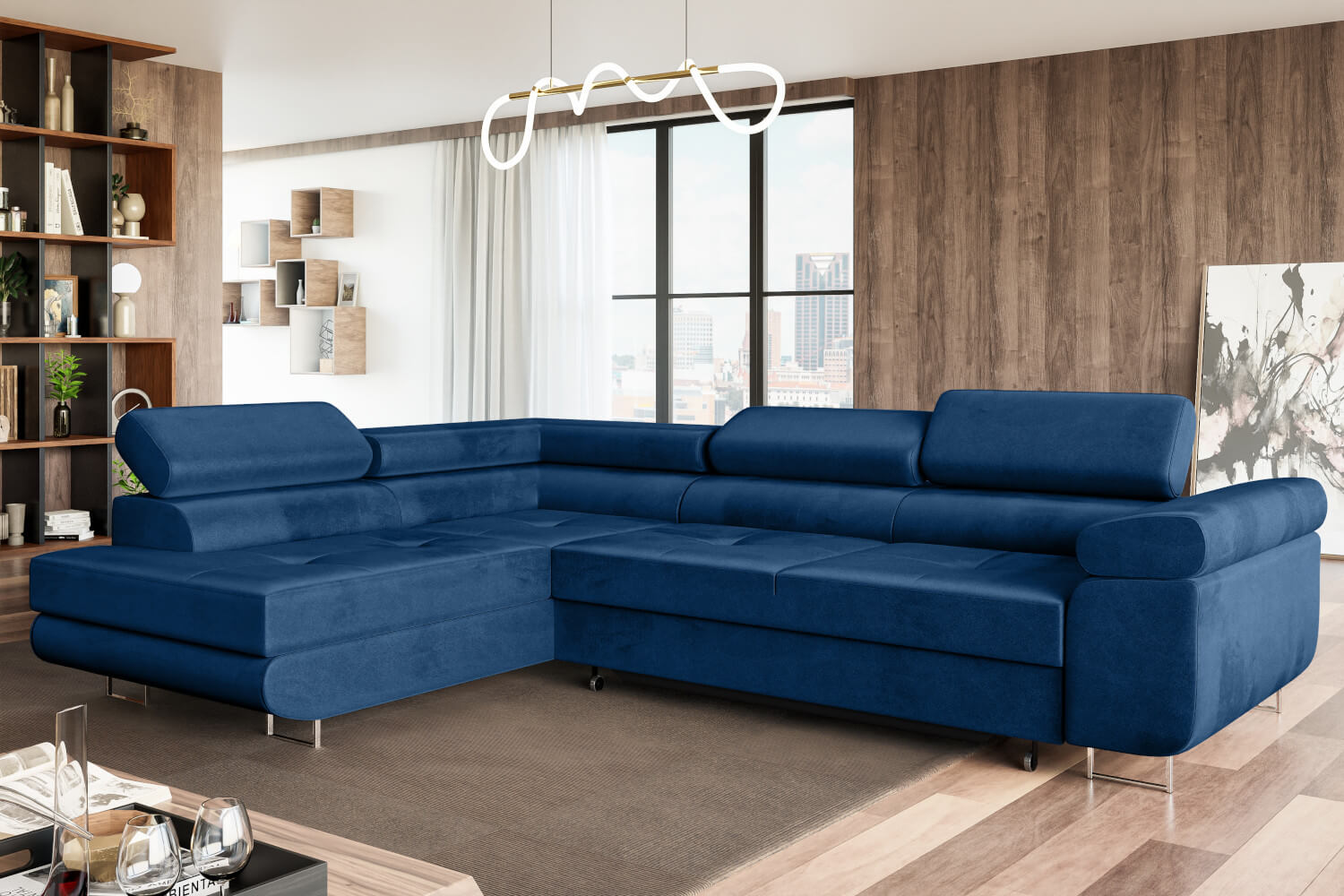 Narożnik granatowy z pojemnikiem na pościel MALIBA