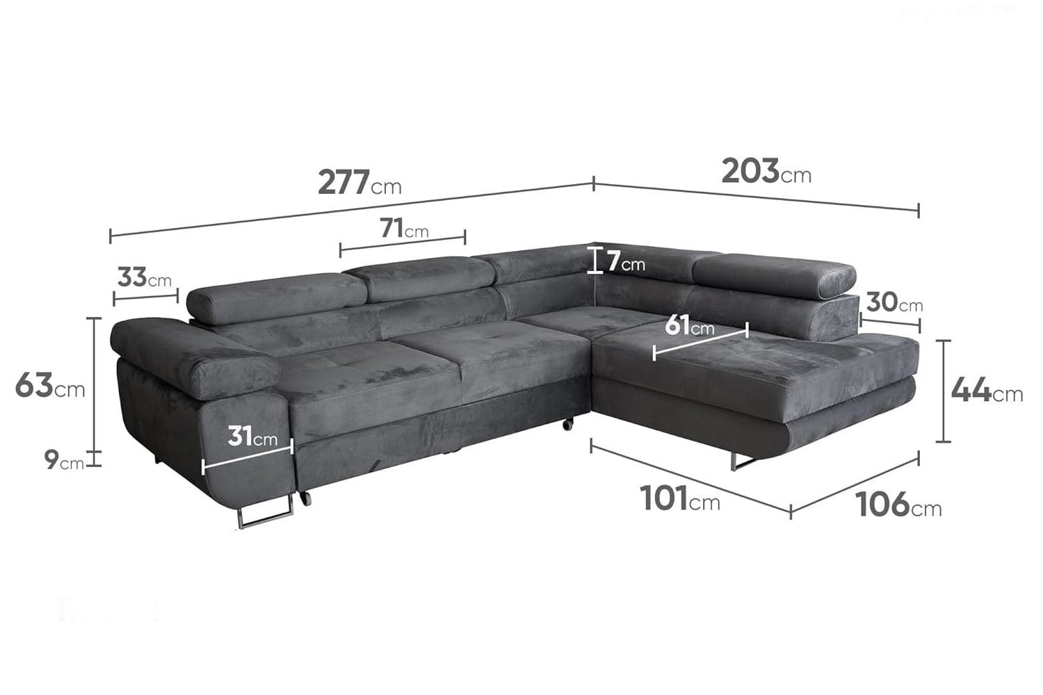 WYMIARY- narożnik rozłożony: