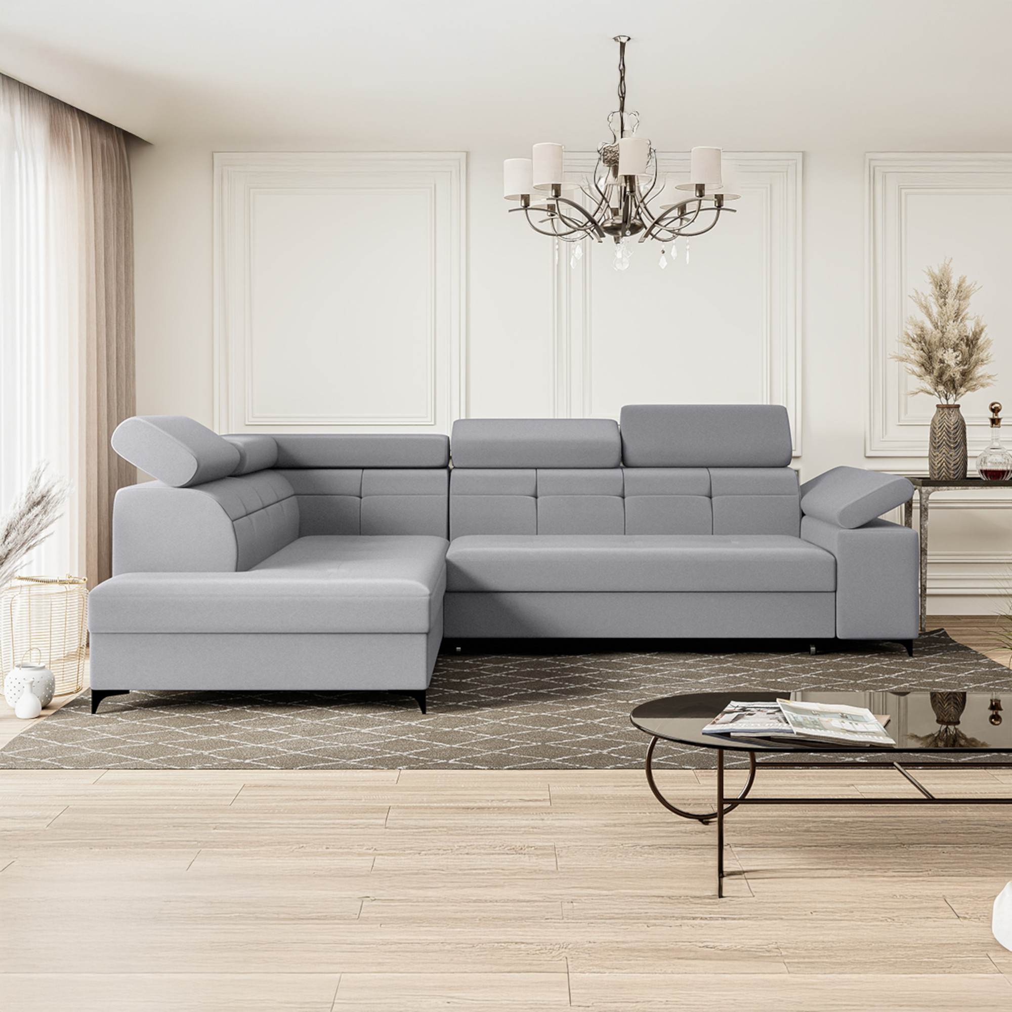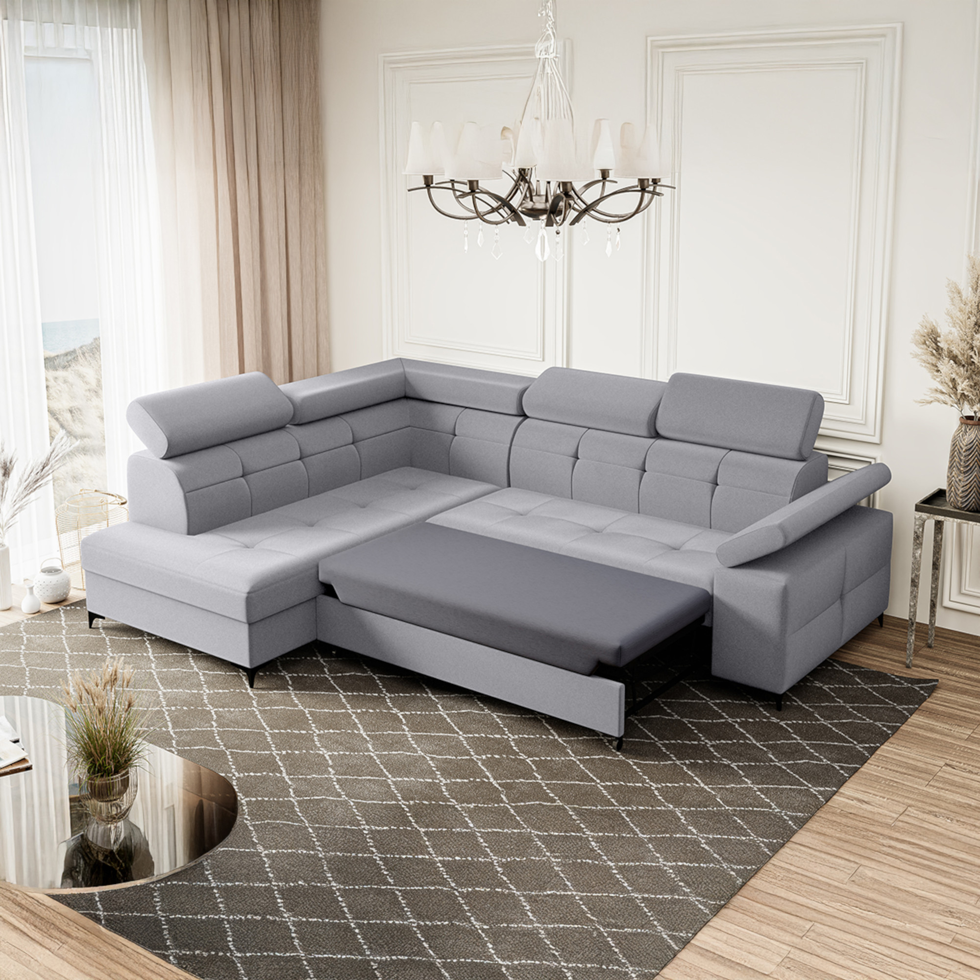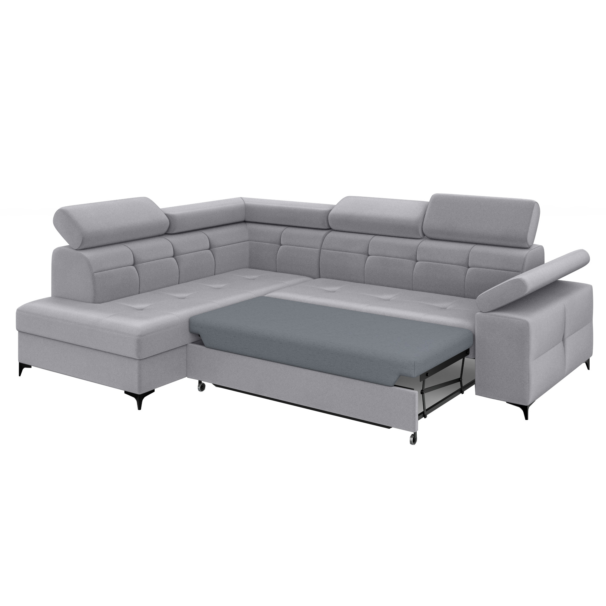 Jasnoszary narożnik z pojemnikiem i funkcją spania BERGI