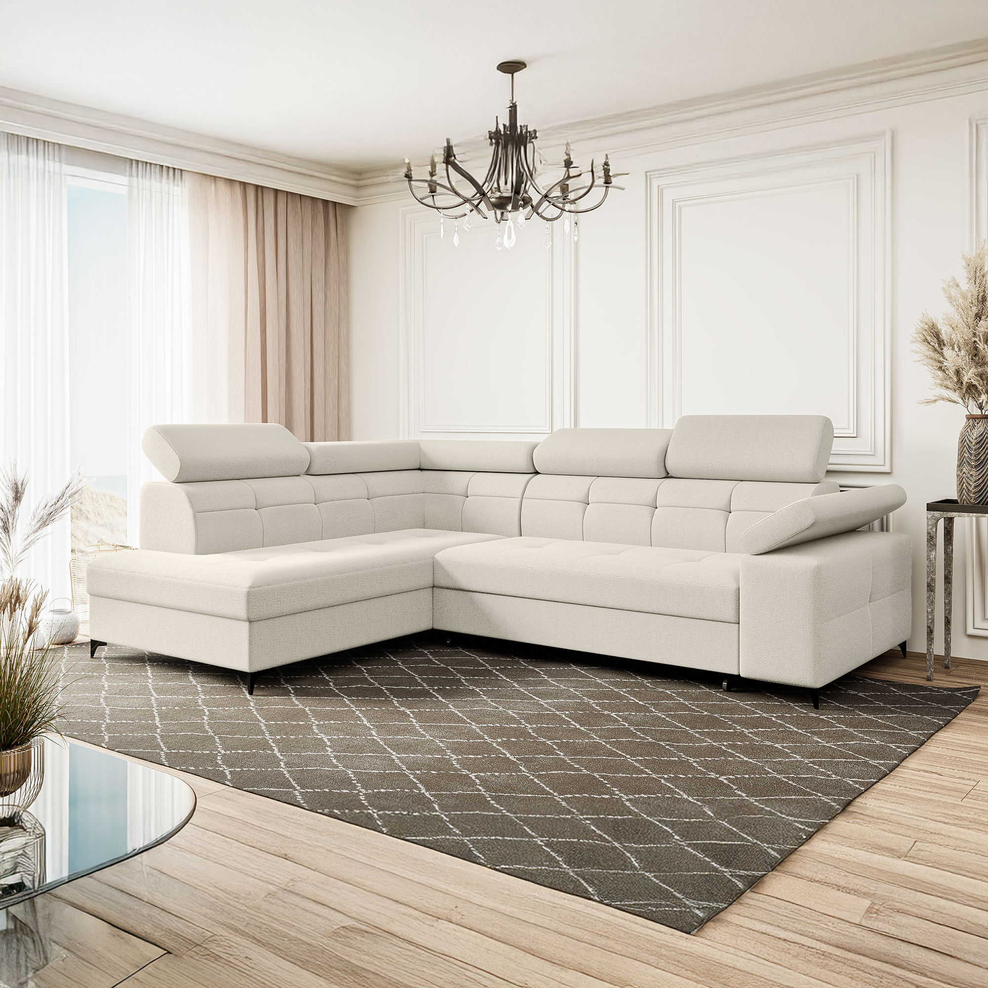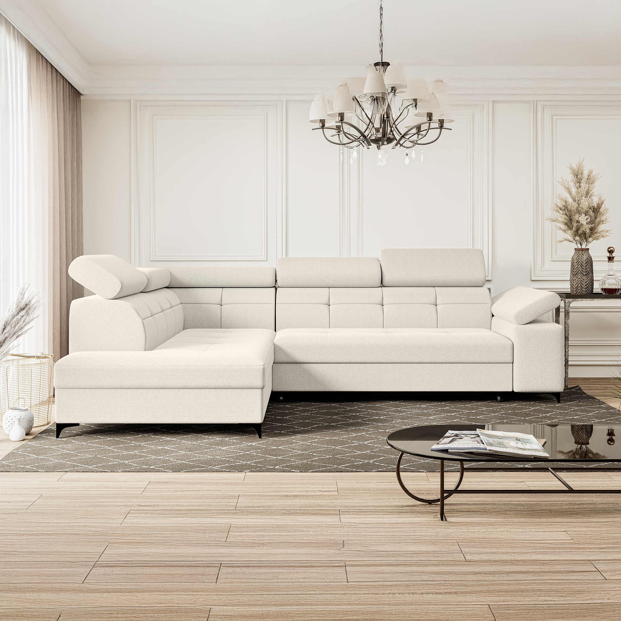 Narożnik kremowy z regulowanymi zagłówkami BERGI