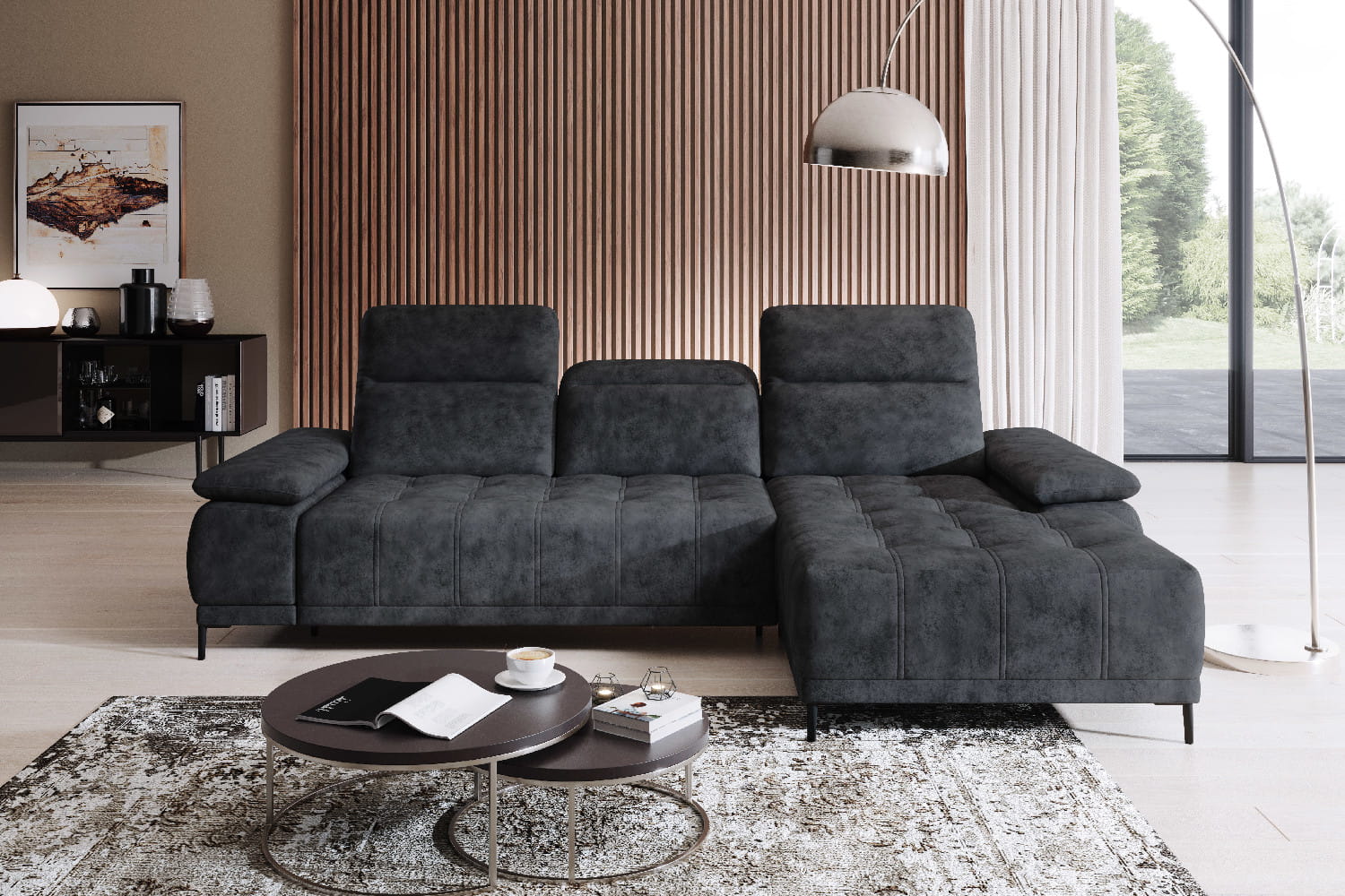 Narożnik Focus Mini to doskonały wybór dla tych, którzy cenią sobie zarówno komfort, jak i elegancję w swoim salonie. Zaprojektowano go z myślą o nowoczesnym stylu, oferuje zatem nie tylko estetykę, ale także funkcjonalność na najwyższym poziomie. Regulowane zagłówki dostosujesz do potrzeb użytkowników, umożliwiając relaksujące pozycje zarówno podczas czytania, jak i oglądania ulubionych filmów. Elektryczna regulacja głębokości siedziska to kolejna wygodna funkcja, która pozwala dostosować głębokość siedzenia do własnych preferencji, zapewniając optymalne wsparcie dla kręgosłupa. Wykorzystanie sprężyny falistej gwarantuje trwałość i wygodę siedzenia przez wiele lat użytkowania. Możliwość wyboru tkaniny umożliwia personalizację mebla.