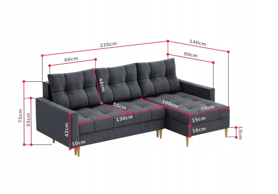 Narożnik skandynawski na nóżkach grafit SCANDO L