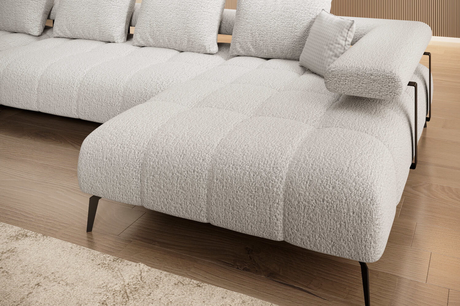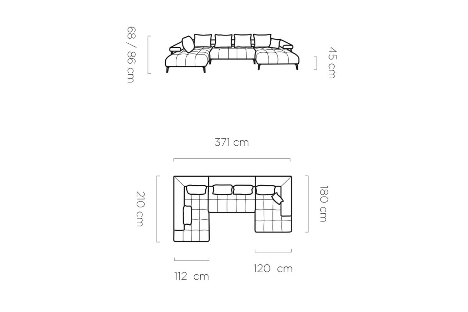 Model Magnetic XL łączy w sobie funkcjonalność, elegancje oraz nowoczesny design. Z szerokością całkowitą wynoszącą imponujące 371 cm, ten narożnik zapewni przestronne miejsce do relaksu dla Ciebie i Twoich bliskich.
