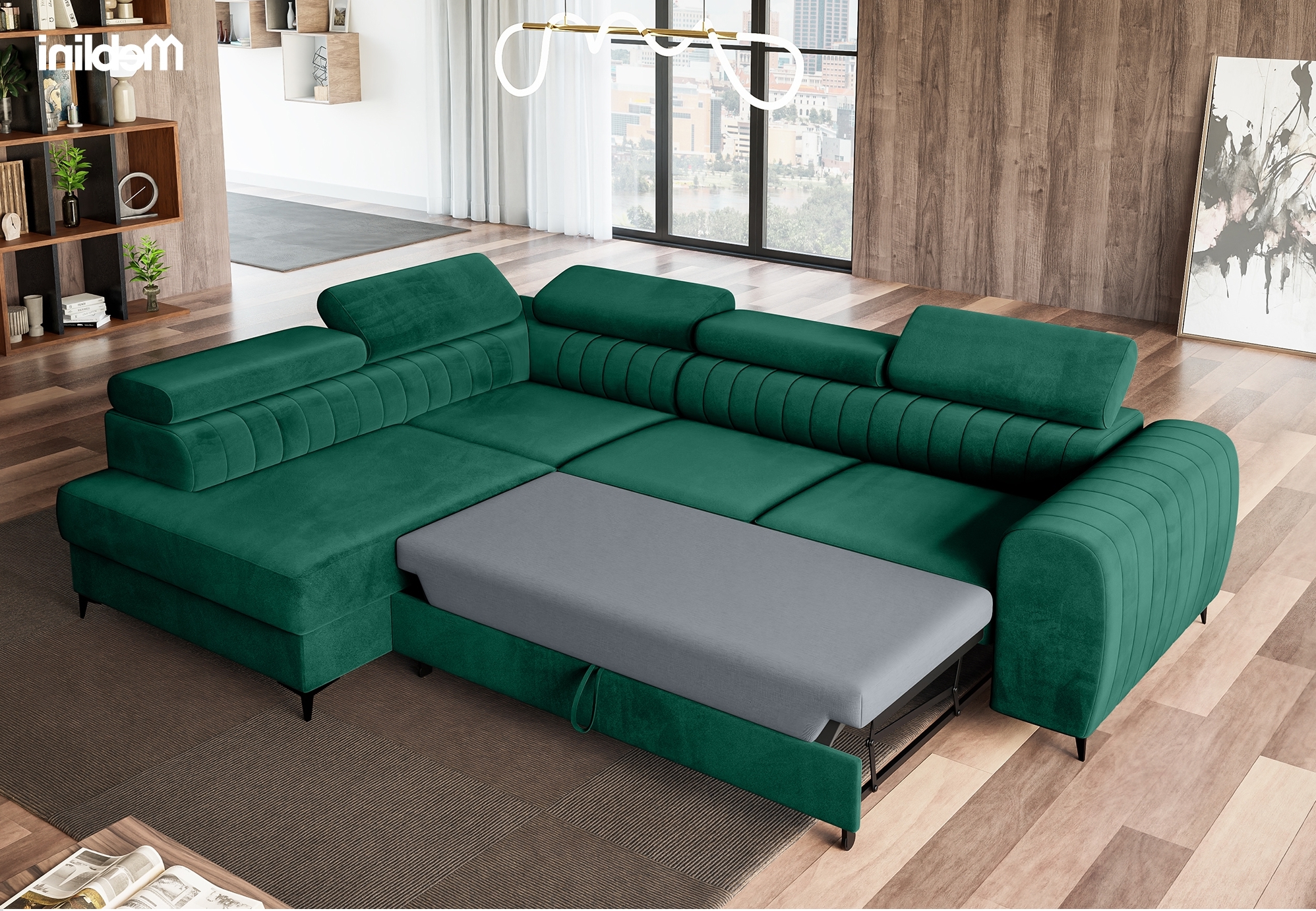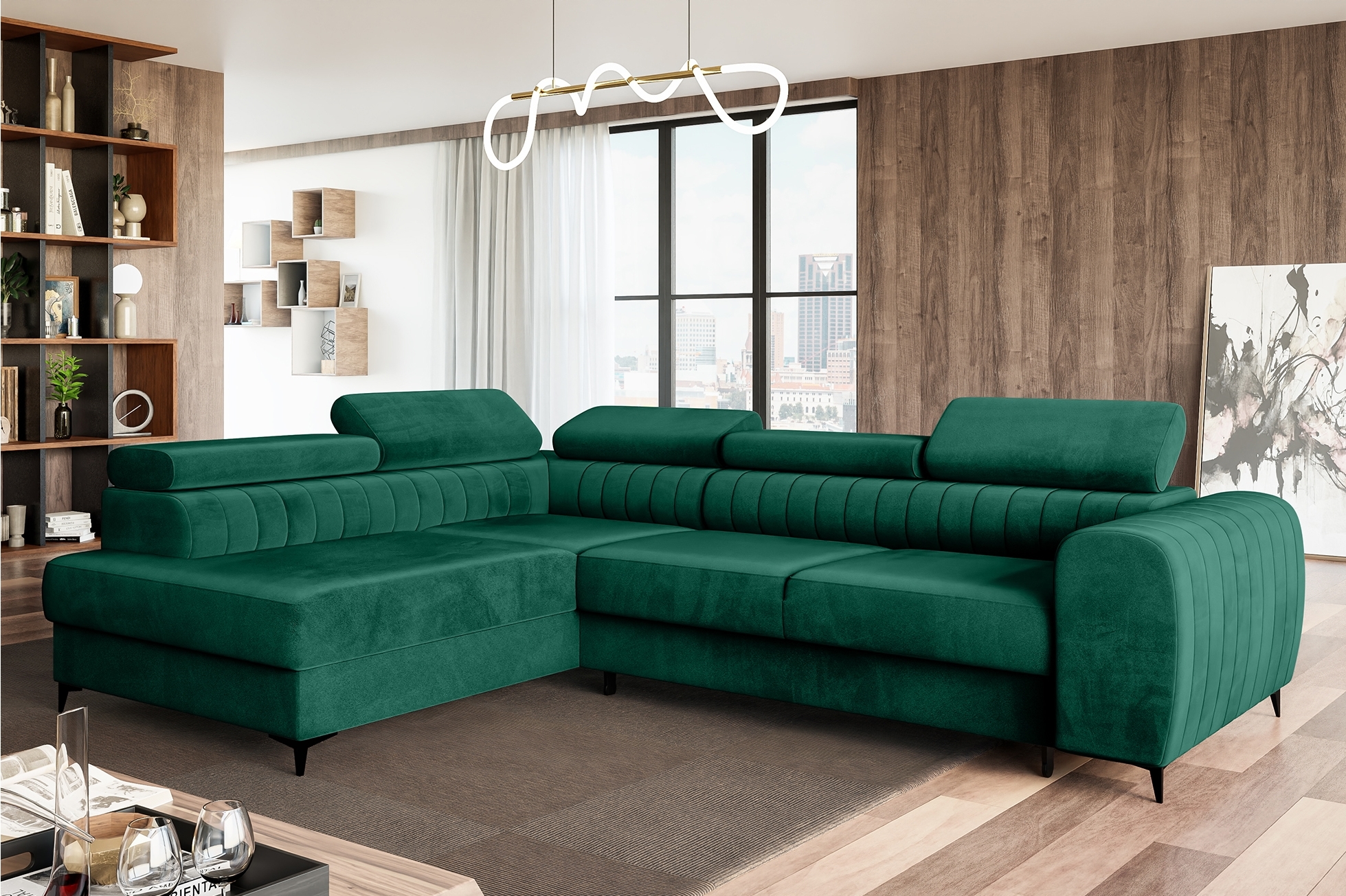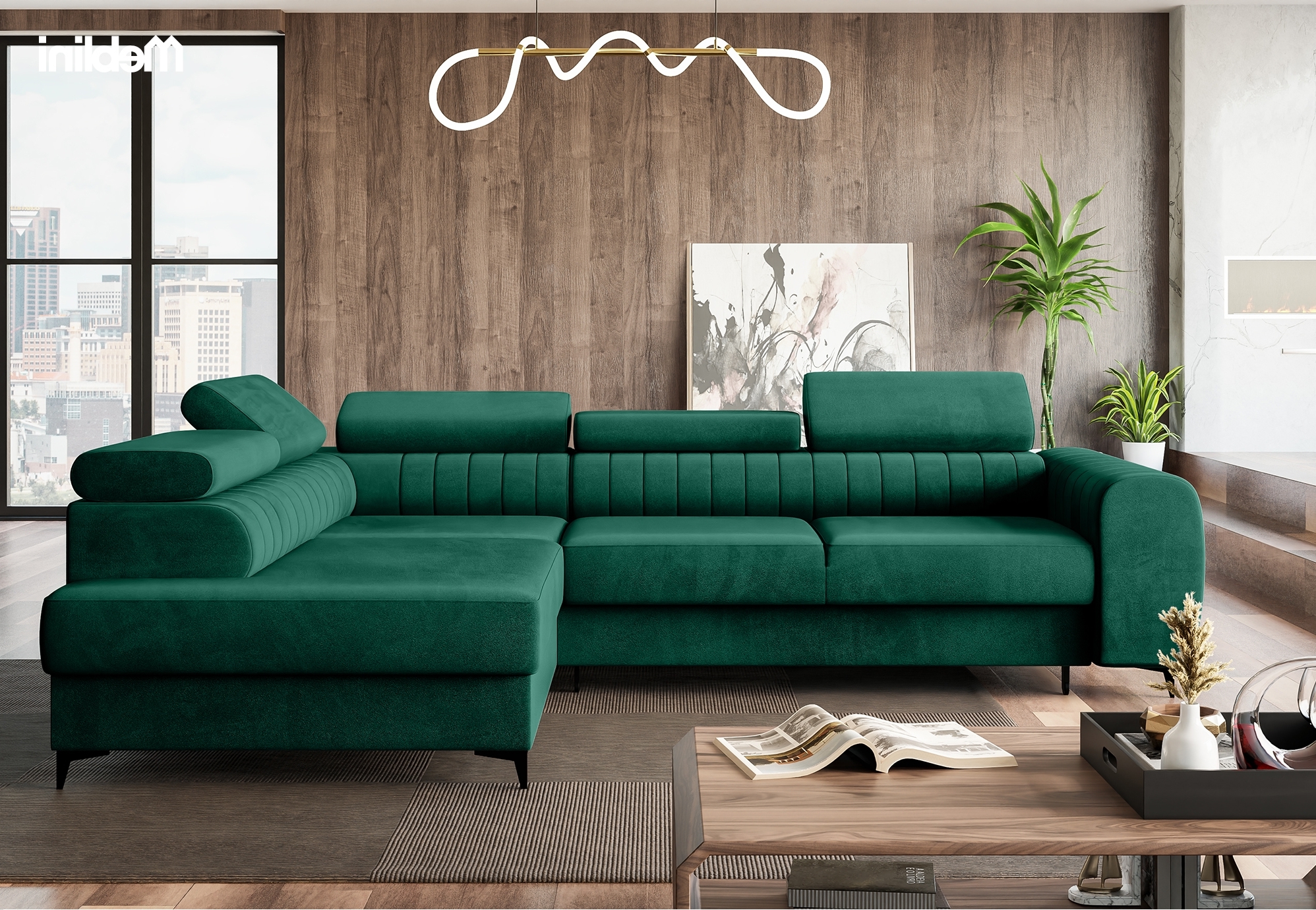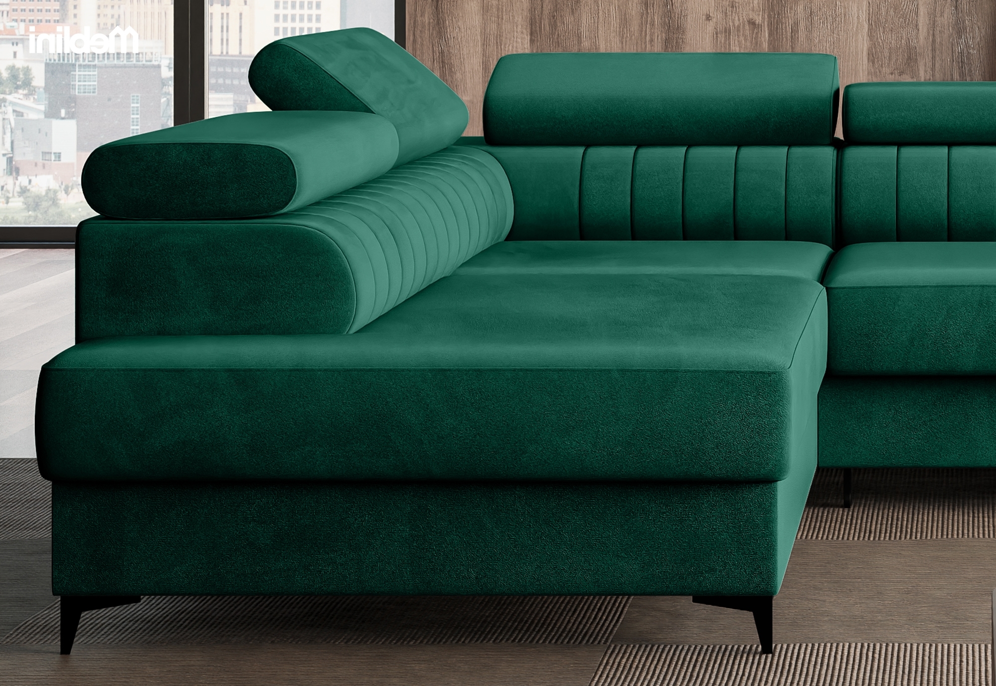 Narożnik zielony z regulowanymi zagłówkami PARTO