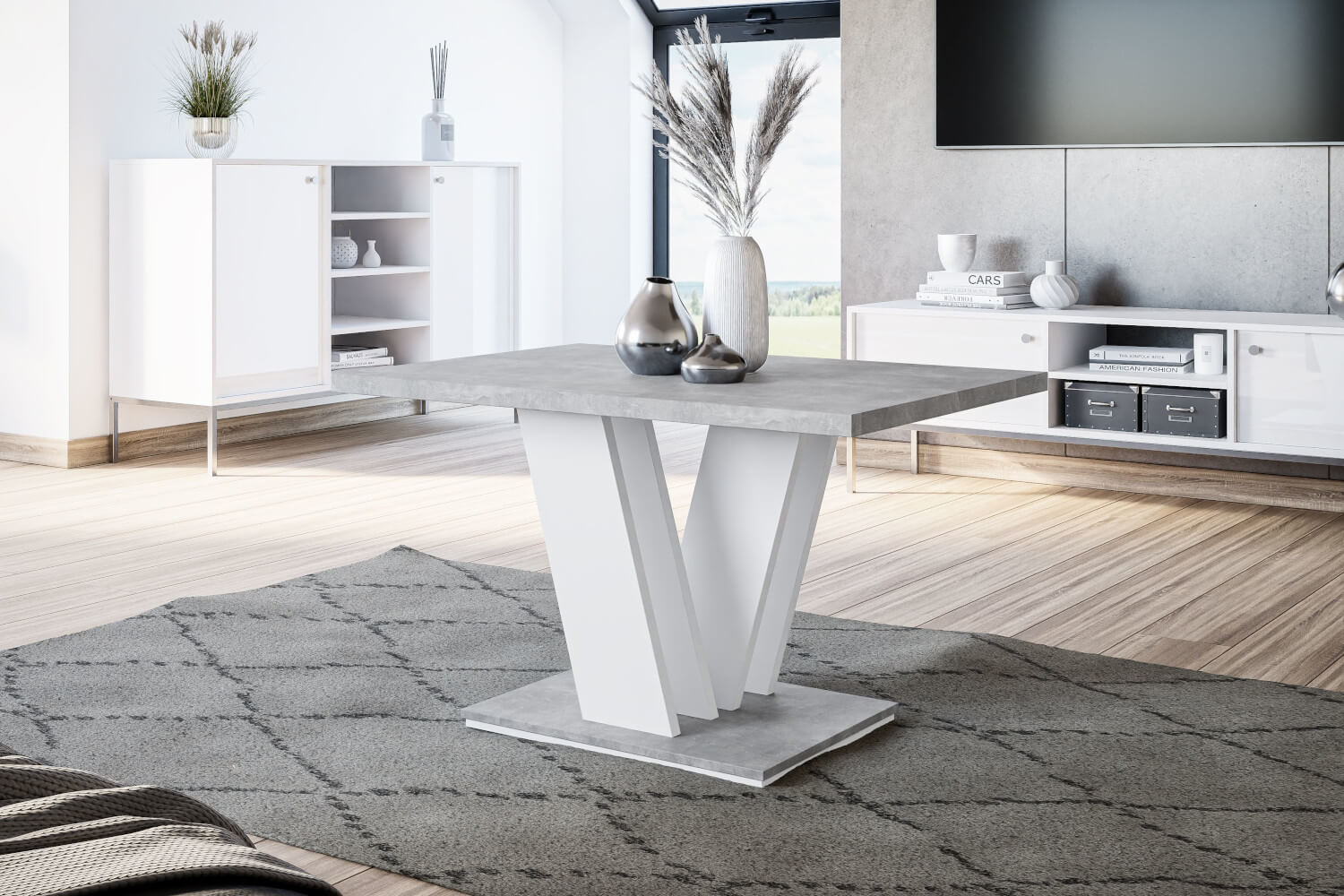 Blat innowacyjnej ławy VISA został wykonany przy użyciu wytrzymałej i solidnej płyty laminowanej o grubości 32 mm. Pomieszczenie w którym zostanie umieszczona ława VISA nabierze blasku i świeżości, wnętrze optycznie się powiększy, a użytkownikowi pozostanie cieszyć się praktycznymi aspektami jej użytkowania. Na nietuzinkowy wygląd mebla składają się elementy wykonane w kolorach biały mat oraz beton będące razem jednym z najmodniejszych połączeń. Dzięki jasnej kolorystyce ława może zostać wykorzystana do przeróżnych aranżacji, nie bacząc na dominujące w nich barwy.