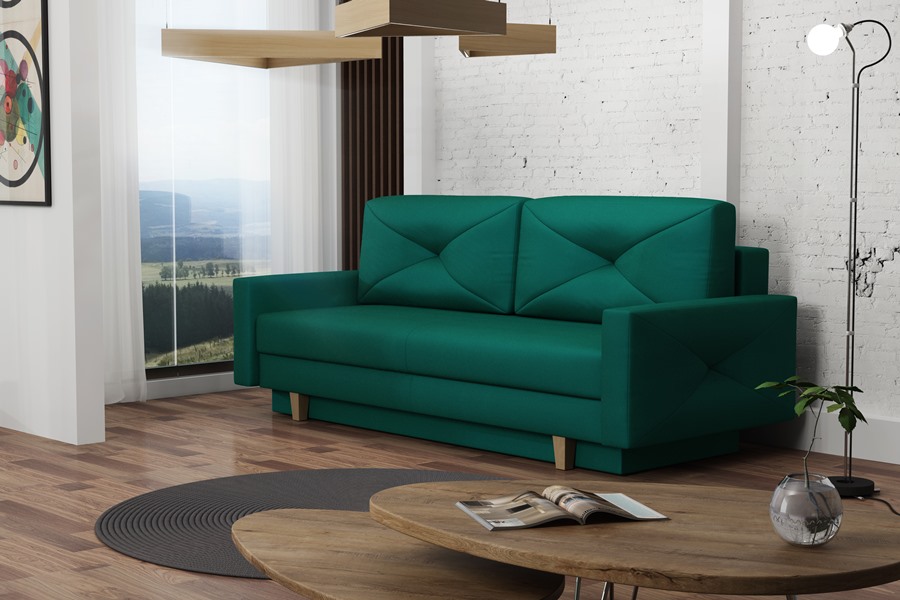 Szykowna sofa LISSA została stworzona dla każdego, kto lubuje się w klasycznym stylu z dodatkiem subtelnych ozdobników. Oparcie oraz boczki mebla zostały udekorowane dużymi, przecinającymi się przeszyciami, tworzącymi zagłębienia na środkach poszczególnych części sofki. Na całej powierzchni spania znajdują się sprężyny bonellowe oraz pianka poliuretanowa ,umożliwiające wygodne spanie na niej również w ciągu dnia. Zastosowanie trzykomorowego wypełniania w dwóch poduszkach zamykanych na zamek, pozwoliło na dłuższe zachowanie ich kształtu oraz większy komfort ich użytkowania. Wiele rozmaitych tkanin - czy to pod względem koloru czy struktury - pozwala na dopasowanie mebla do indywidualnego gustu oraz klimatu wnętrza, w którym się znajdzie. Drewniane nóżki występują w kolorach - naturalnym, orzechu, venge, białym - które pomogą w stworzeniu kompatybilnej całości ze stylem salonu. Niewielkie rozmiary mebla umożliwiają jego transport nawet przy wykorzystaniu windy (zmieszczą się również w drzwiach o szerokości 80 cm). Delikatne wyrafinowanie to cecha charakterystyczna sofy LISSA!