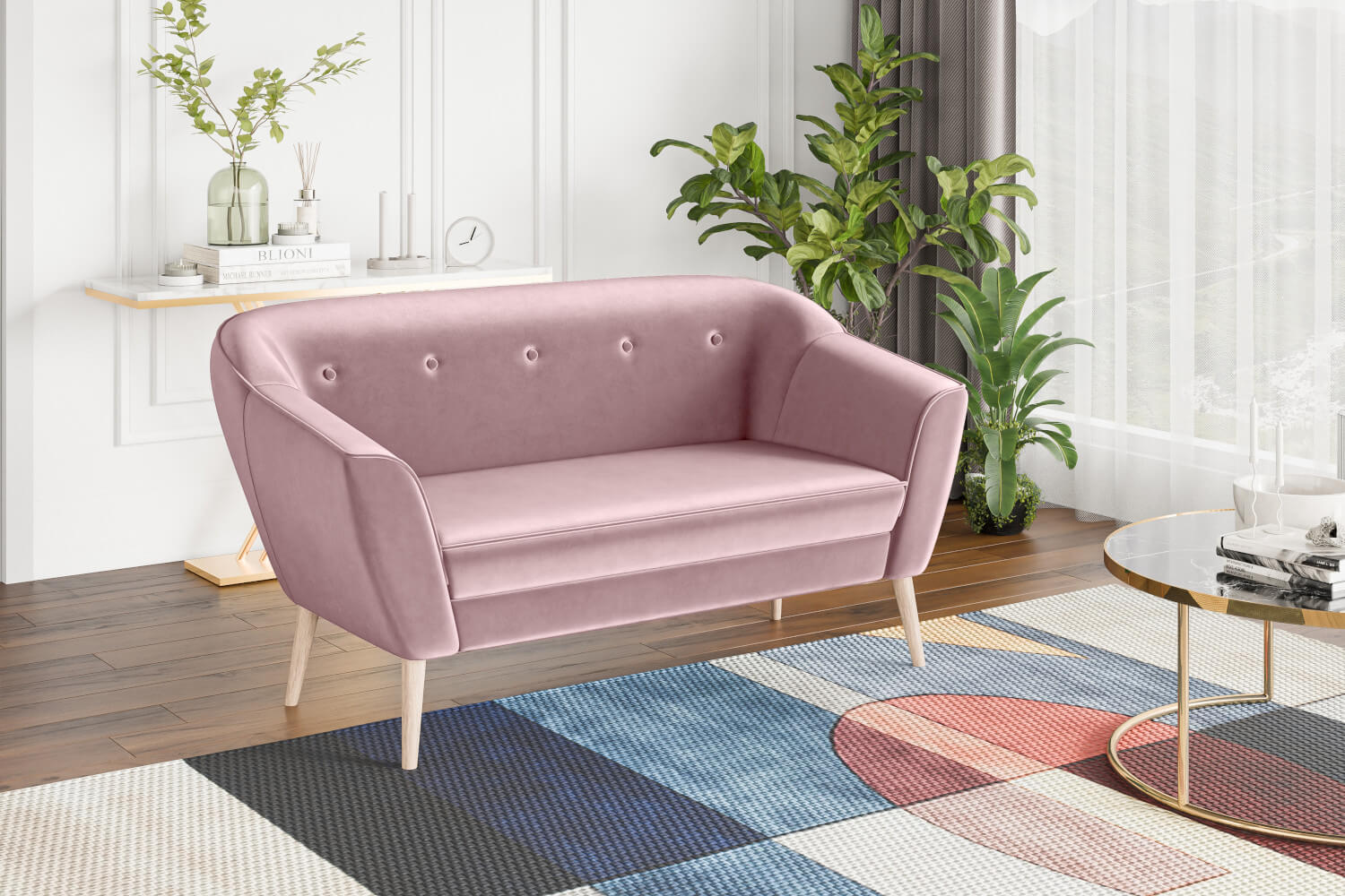 Sofa dwuosobowa w stylu scandi i boho DIMA II 140 cm z guzikami