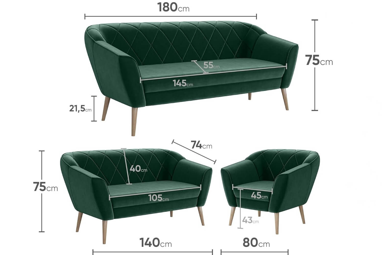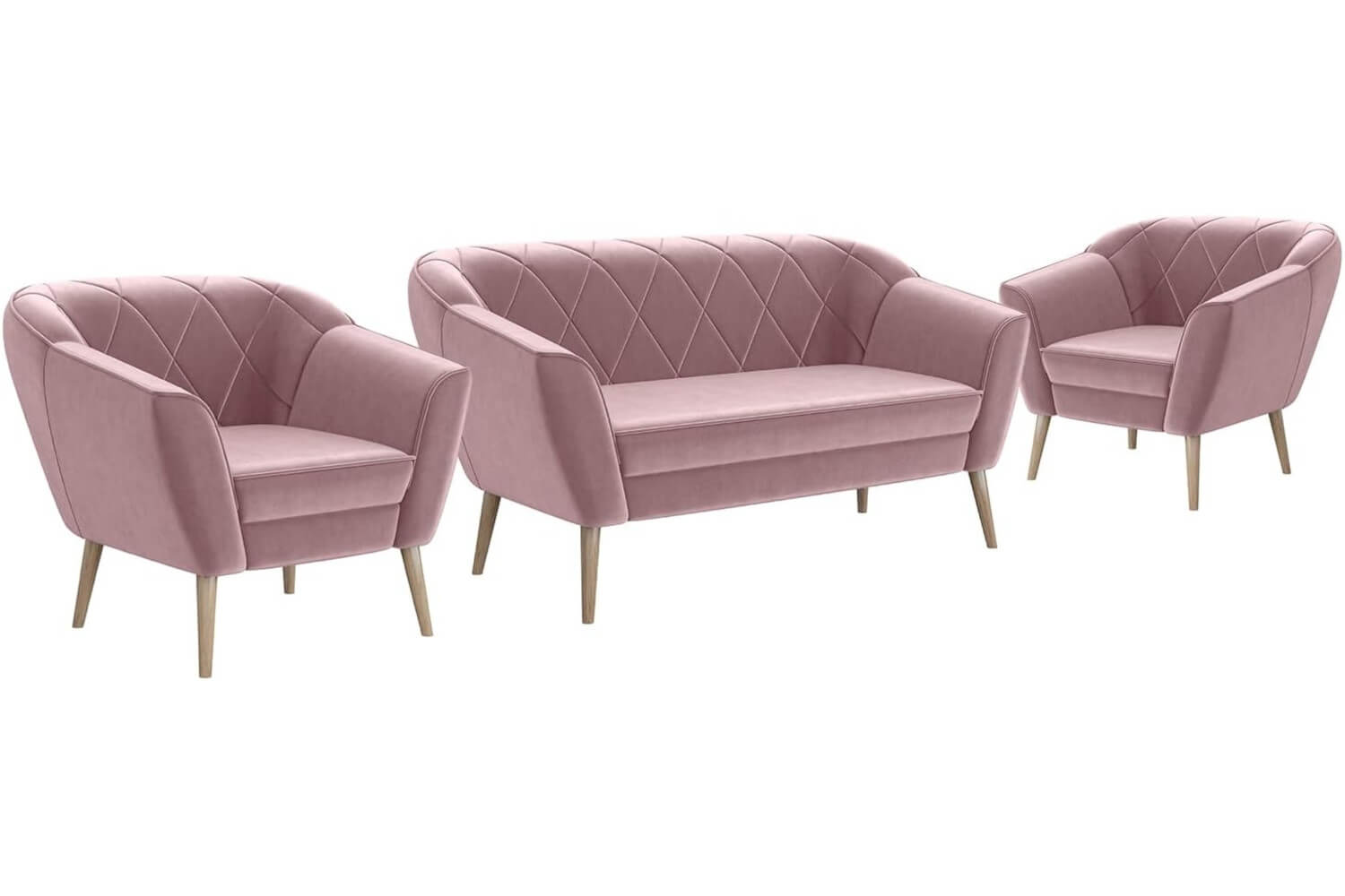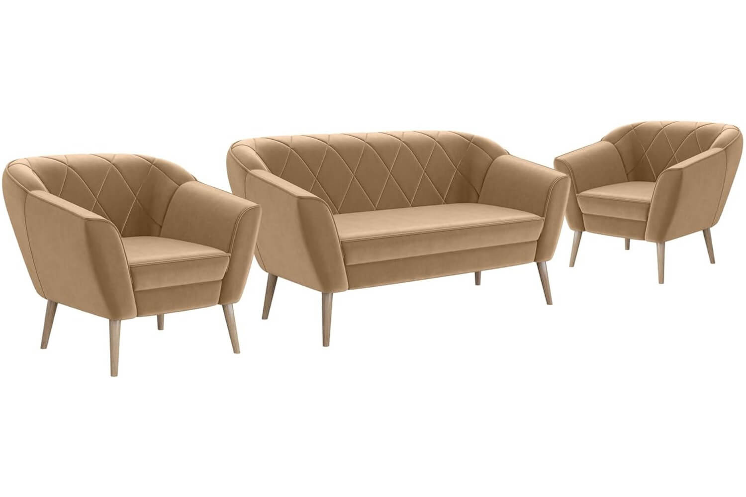 Sofa z fotelami na drewnianych nóżkach GLORI 2+1+1