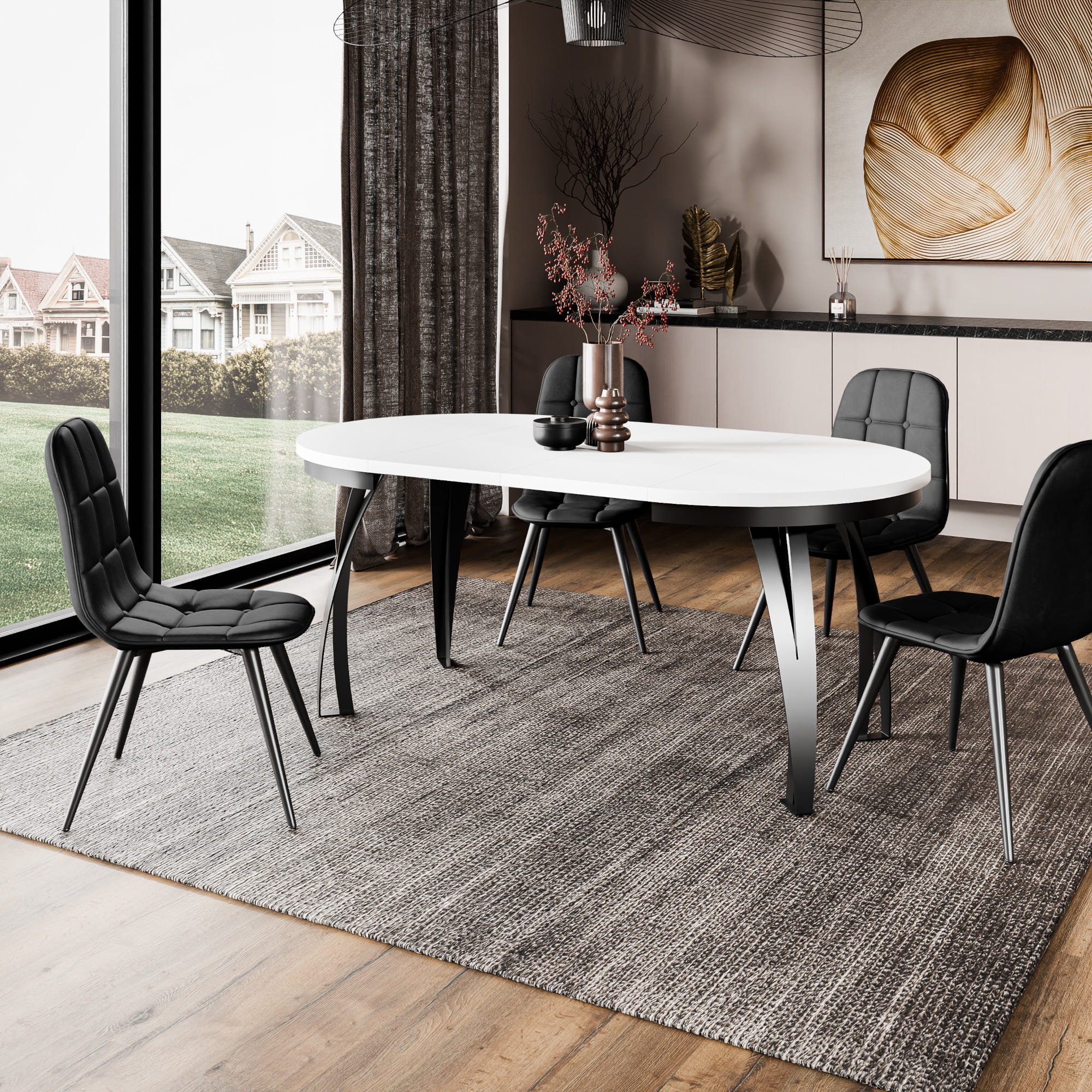 Model ten ma szerokość 100 cm, jest idealnym rozwiązaniem do mniejszych przestrzeni. Dzięki dwóm wkładkom można go łatwo rozłożyć do 176 cm, zyskując dodatkową powierzchnię, idealną na spotkania w większym gronie.