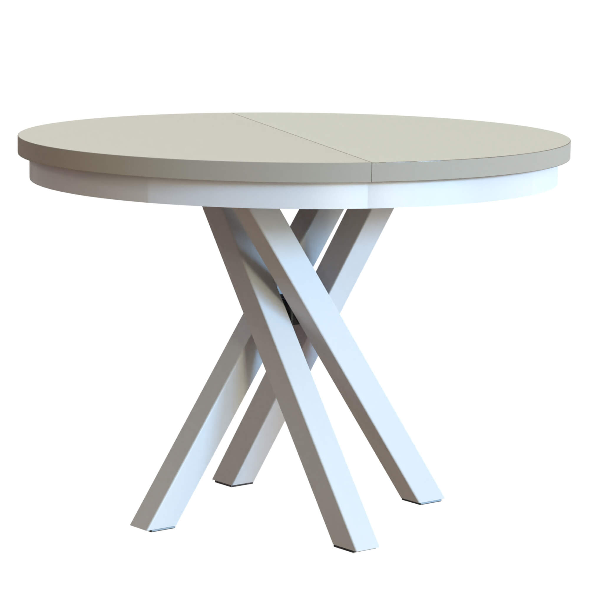 Stół biały okrągły z kaszmirowym blatem KRIS