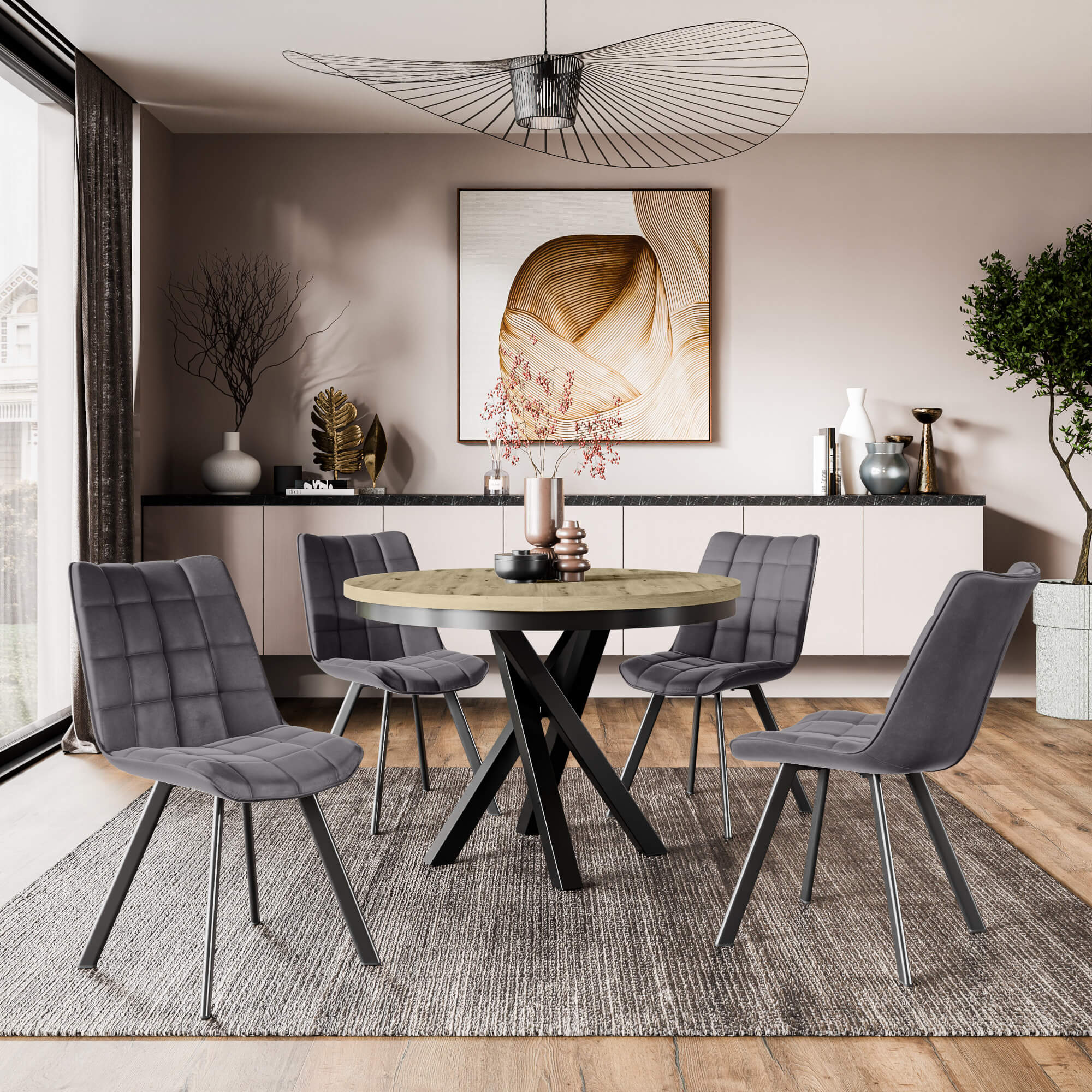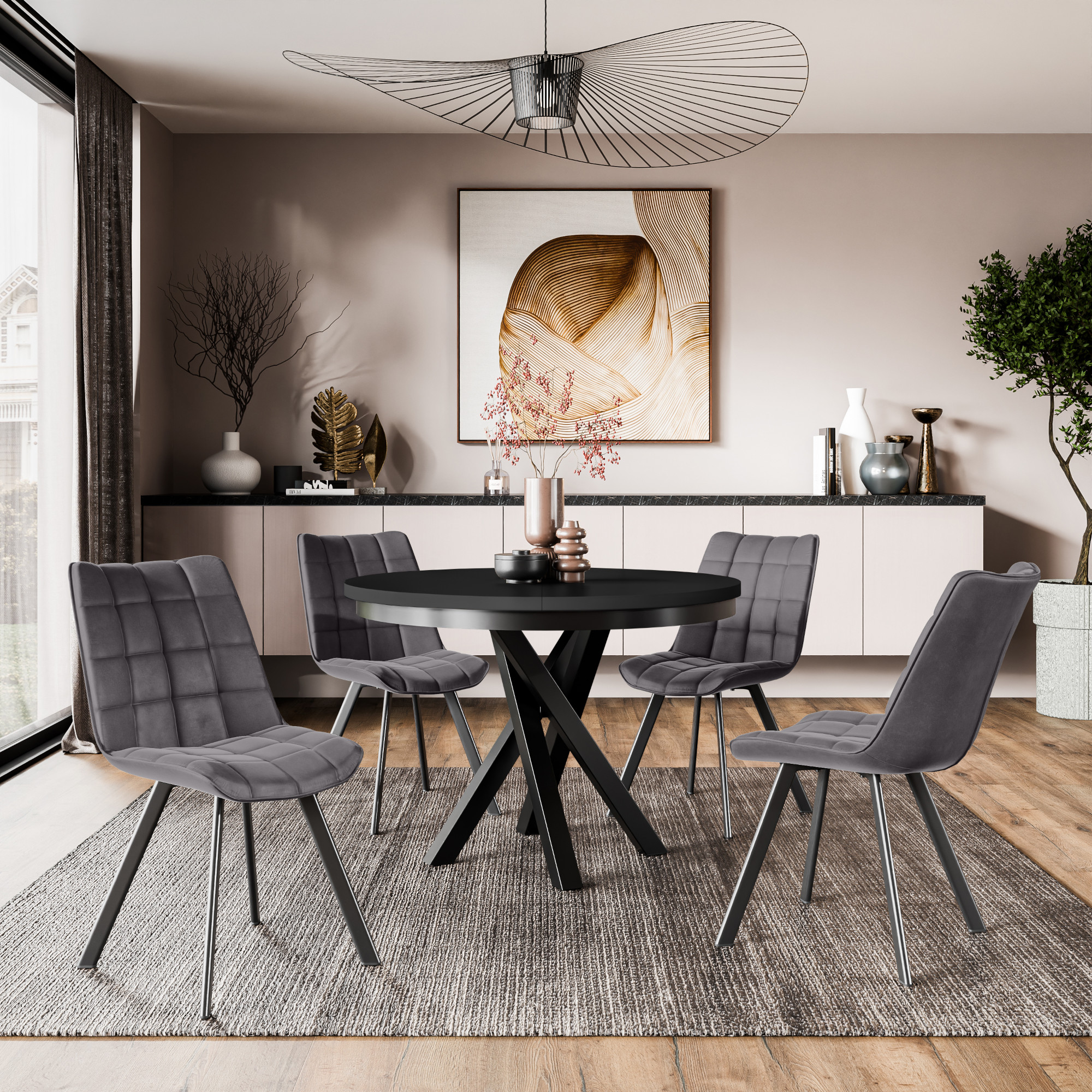 STÓŁ KRIS (BLAT CZARNY/NOGI CZARNE) Z KRZESŁAMI CIEMNOSZARYMI MODI