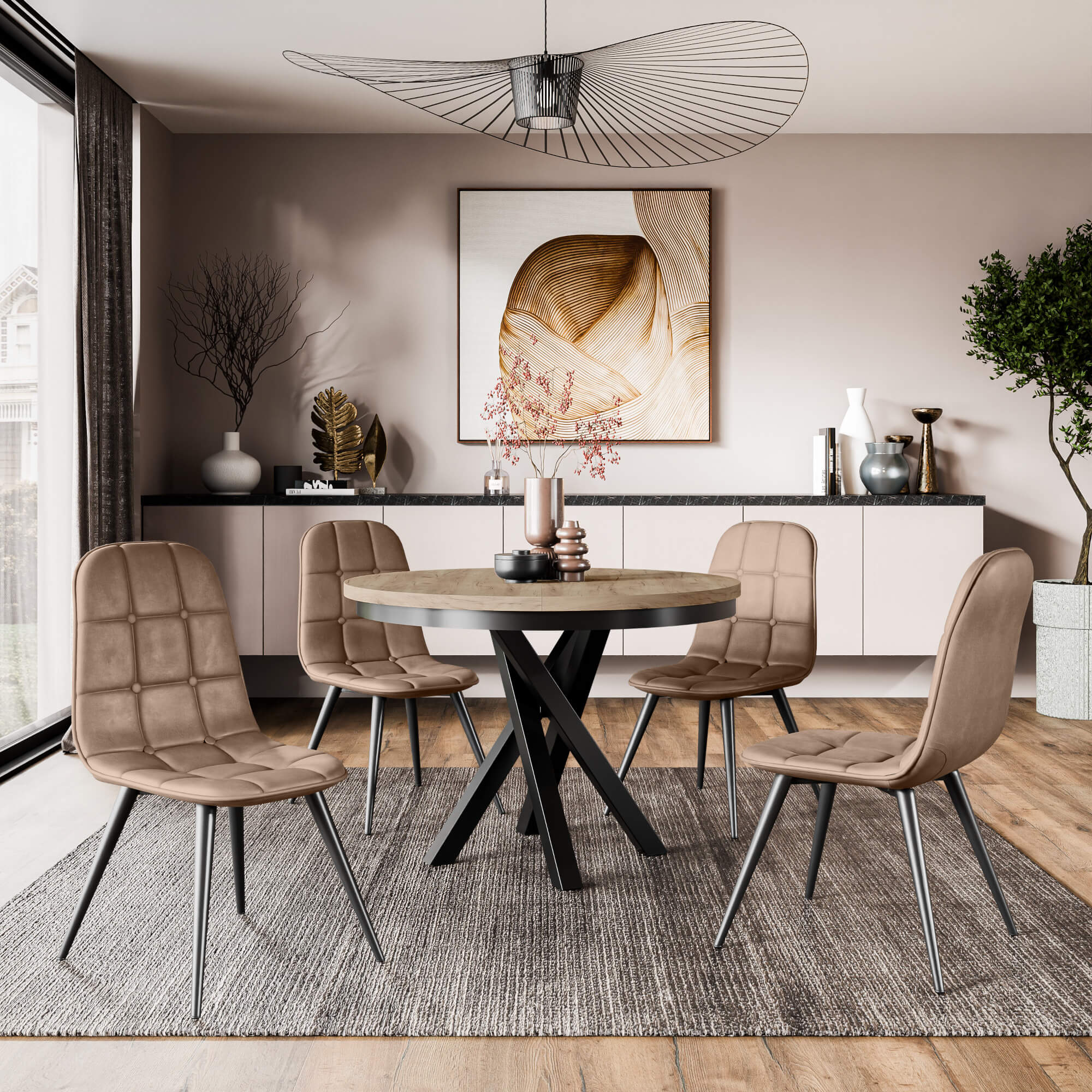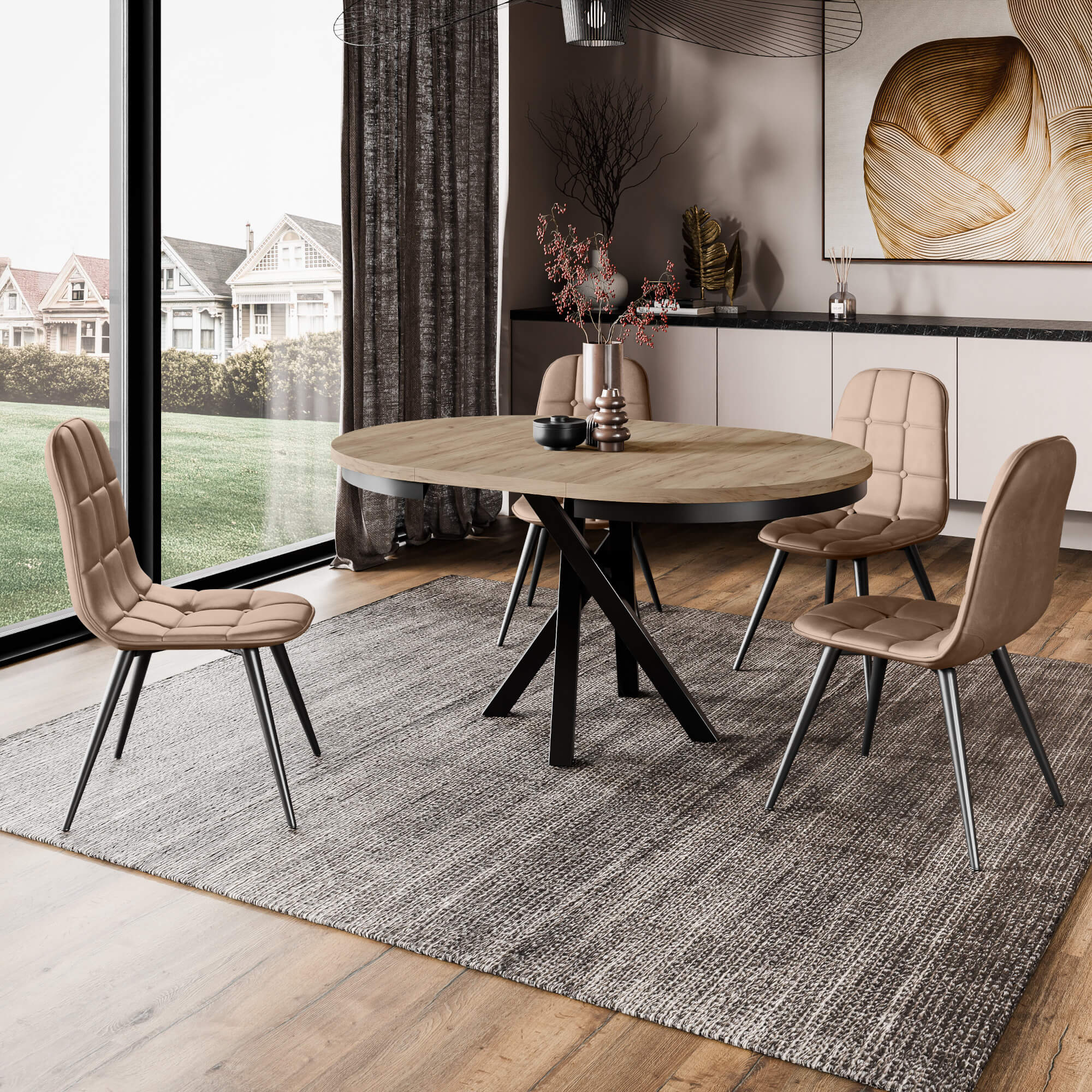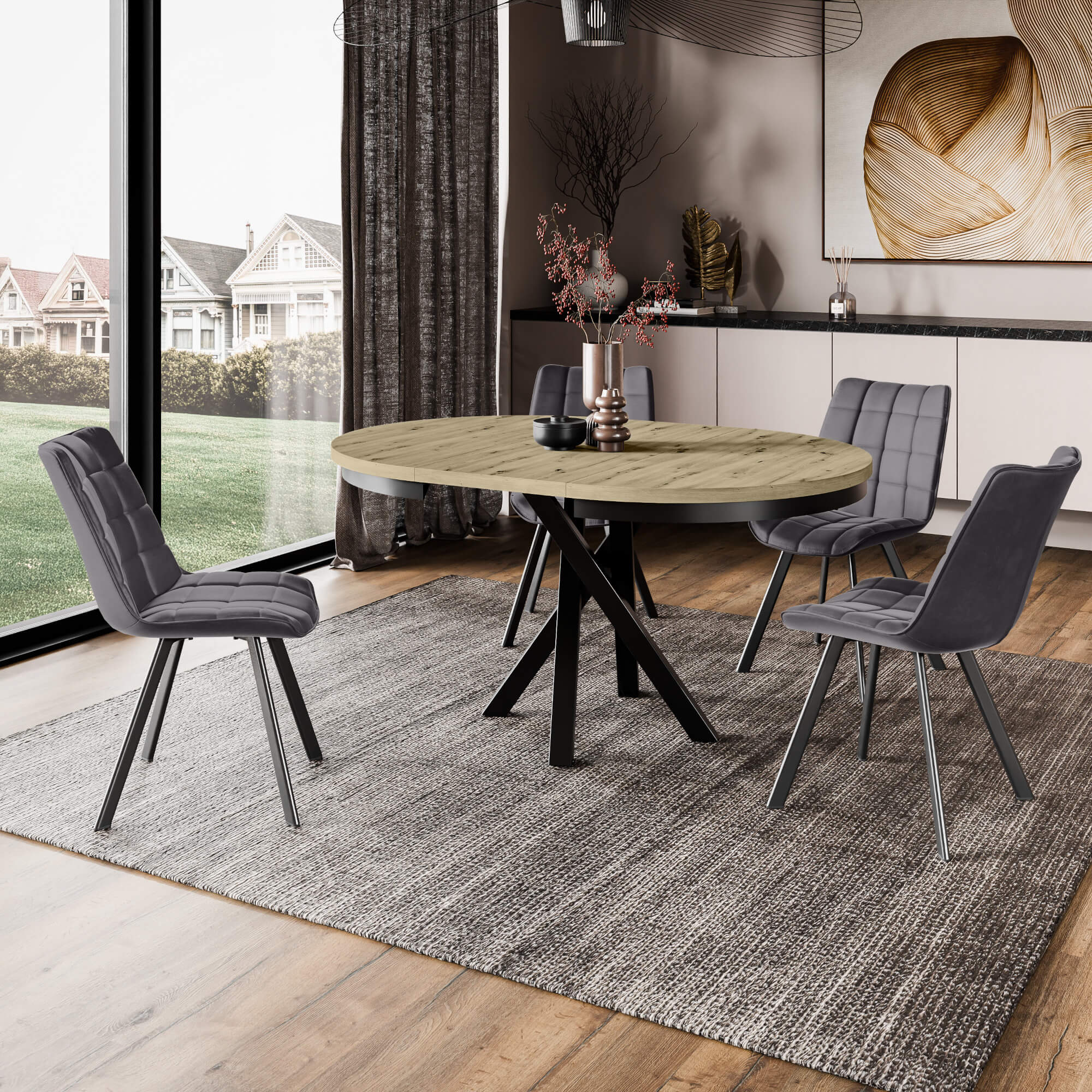 Stół posiada symetryczną podstawę wykonaną z metalu malowanego proszkowo, która zapewnia wyjątkową stabilność. Konstrukcja w kształcie pająka nie tylko gwarantuje solidność, ale również wprowadza surowy charakter do wnętrza. Blat wykonany z płyty laminowanej o grubości 32 mm jest trwały i odporny na uszkodzenia oraz zarysowania, a jednocześnie łatwy do utrzymania w czystości.W naszej ofercie znajdziesz szeroki wybór krzeseł do jadalni.