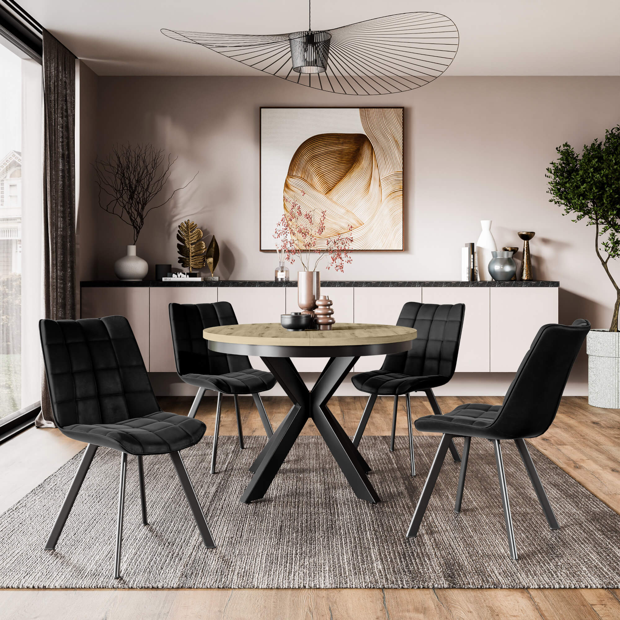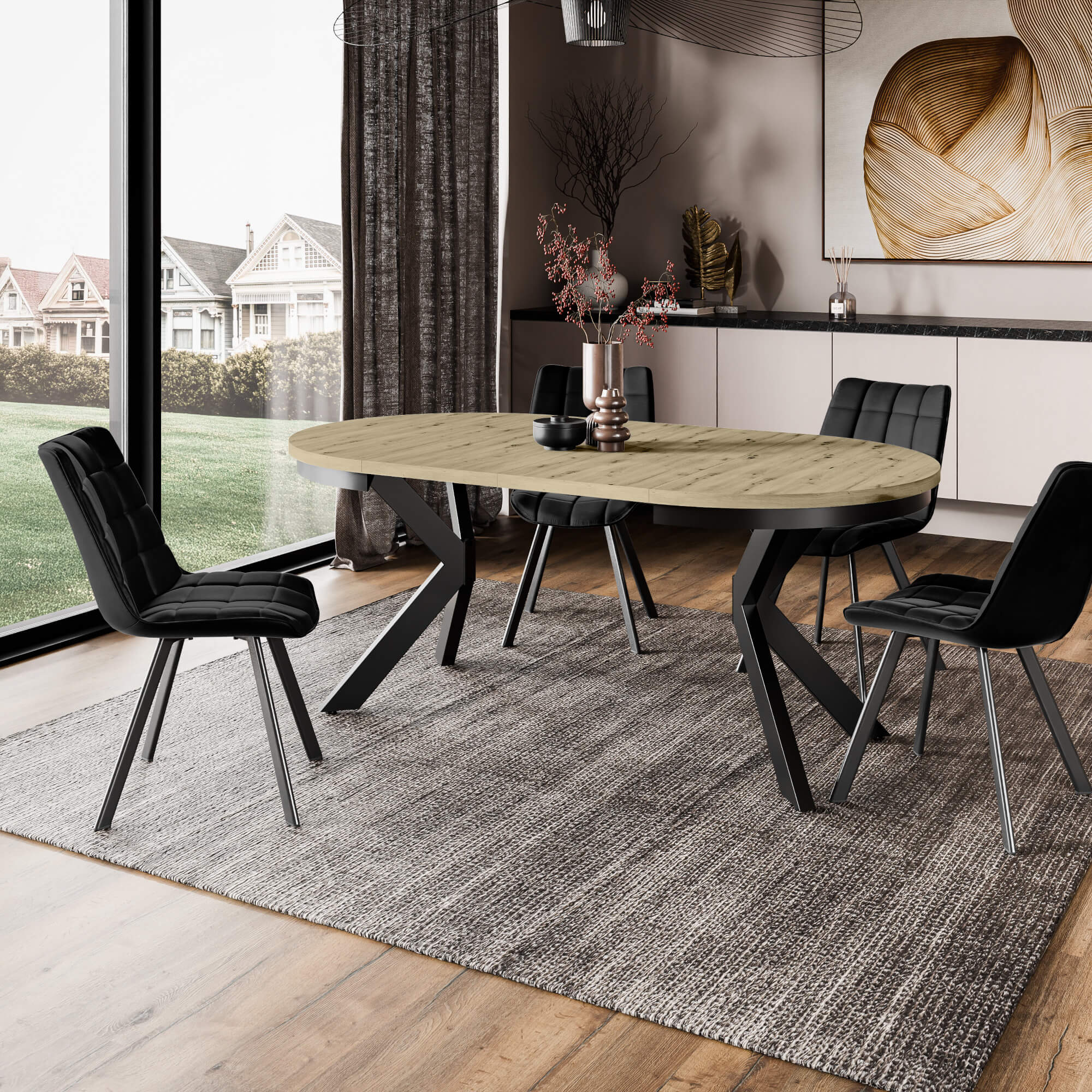 STÓŁ KONO (BLAT DĄB ARTISAN/NOGI CZARNE) Z KRZESŁAMI CZARNYMI MODI