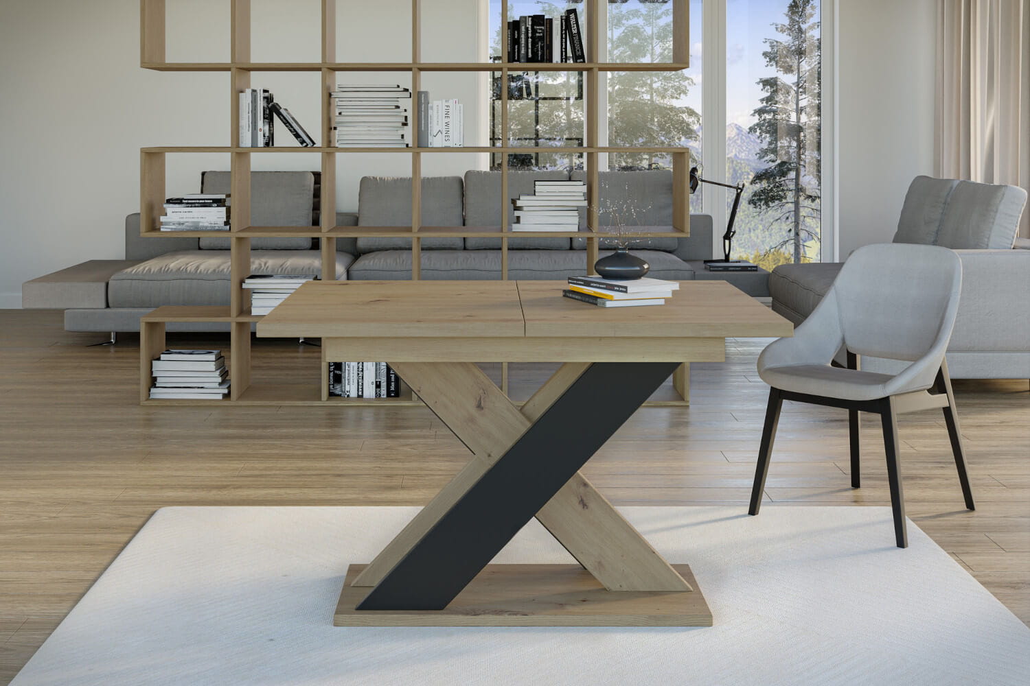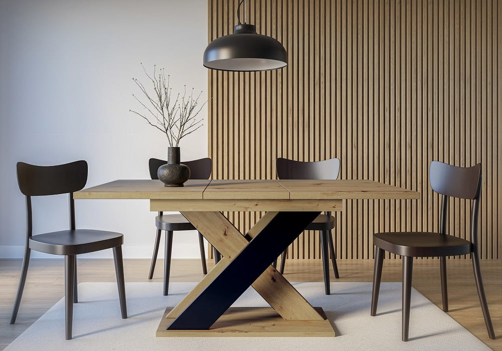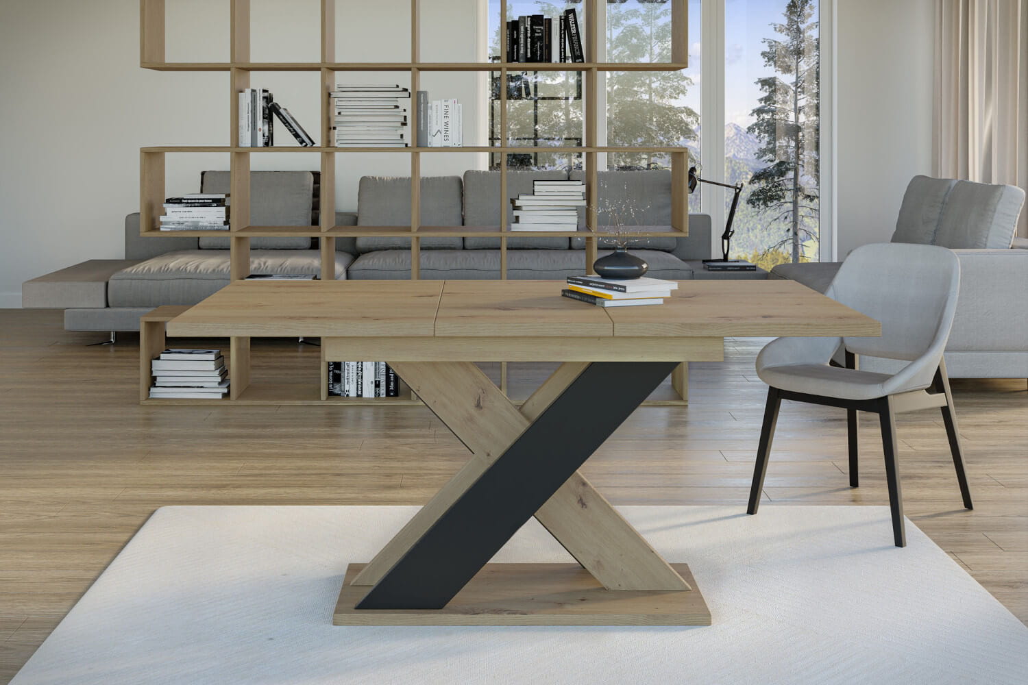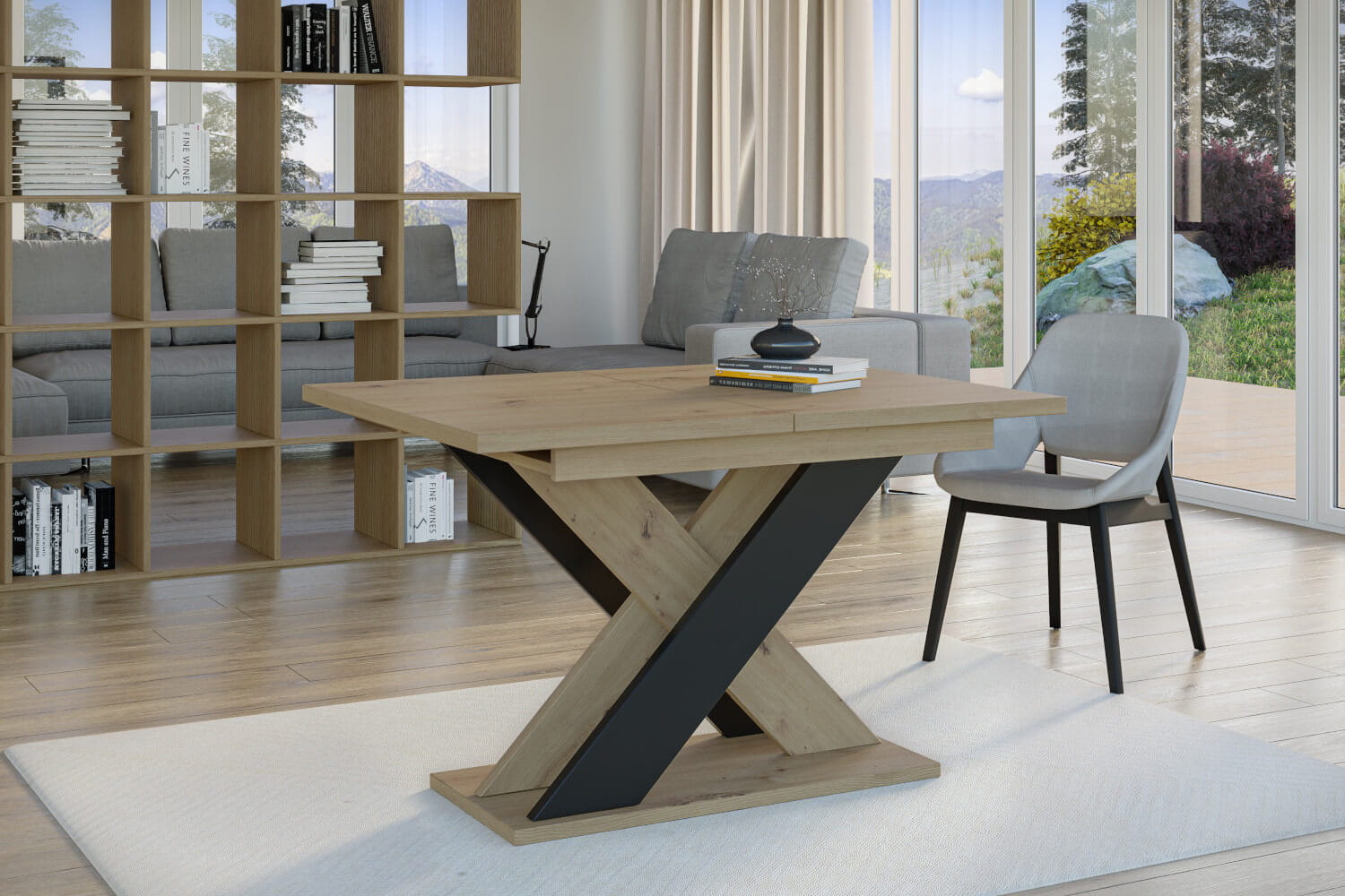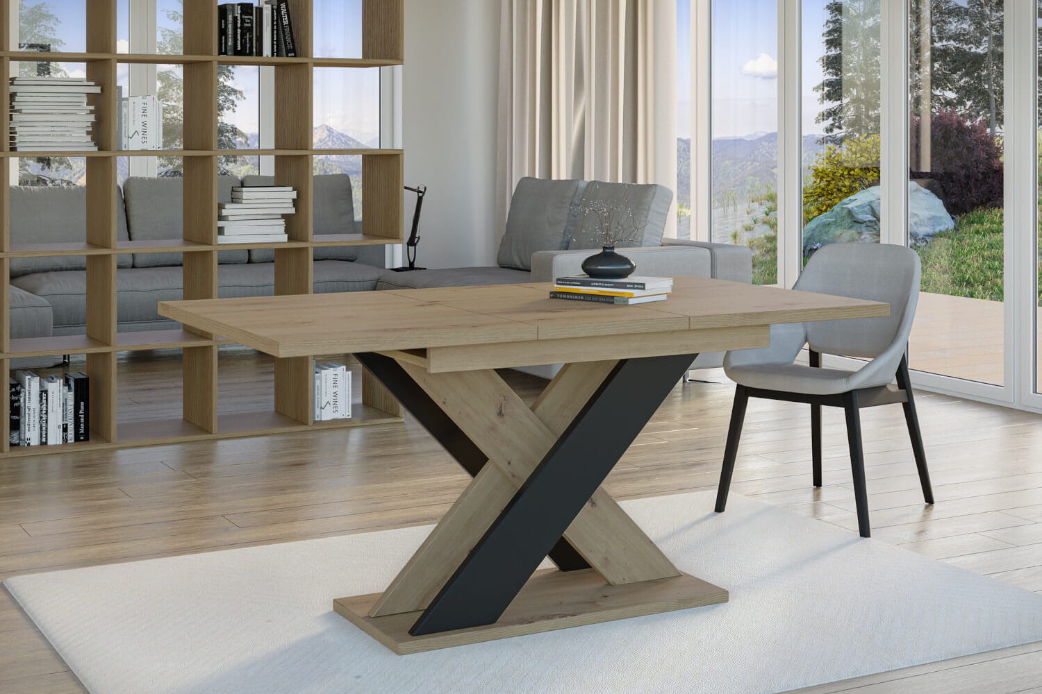Stół do jadalni KAO to nowa wersja Twojej jadalni! Charakterystyczne, krzyżujące się nogi, wprowadzą do Twojego mieszkanie nieco oryginalności, a także unikalnego akcentu. Dzięki swojej kolorystyce, KAO doskonale sprawdzi się w skandynawskich wnętrzach, a także jako mocny dodatek dla pomieszczeń industrialnych.Dostępna kolorystyka: