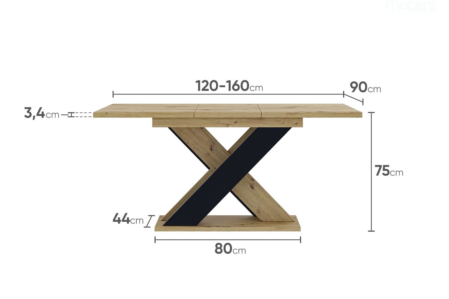 Stół rozkładany 120 - 160 cm dąb artisan-czarny KAO