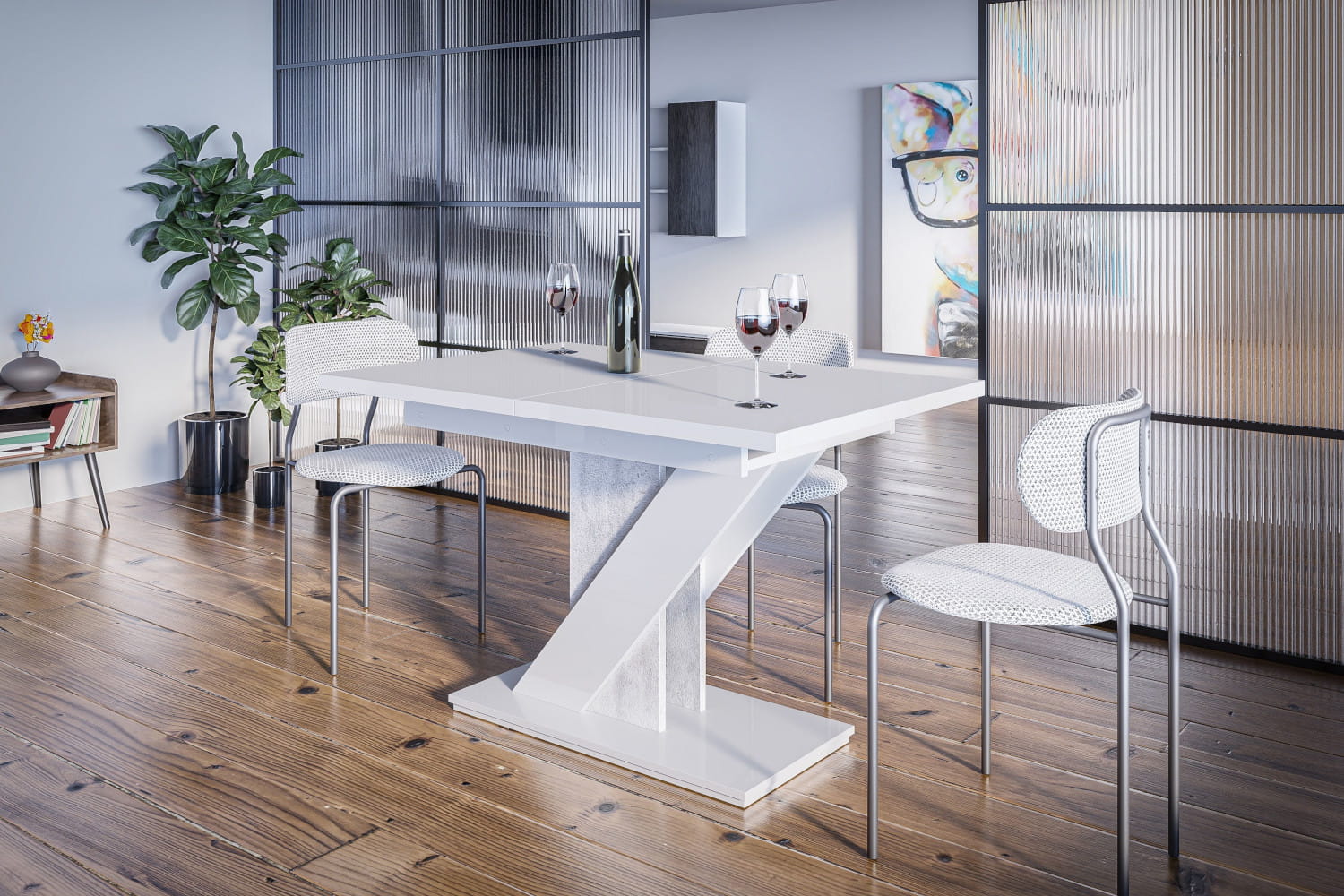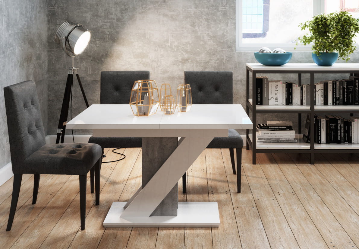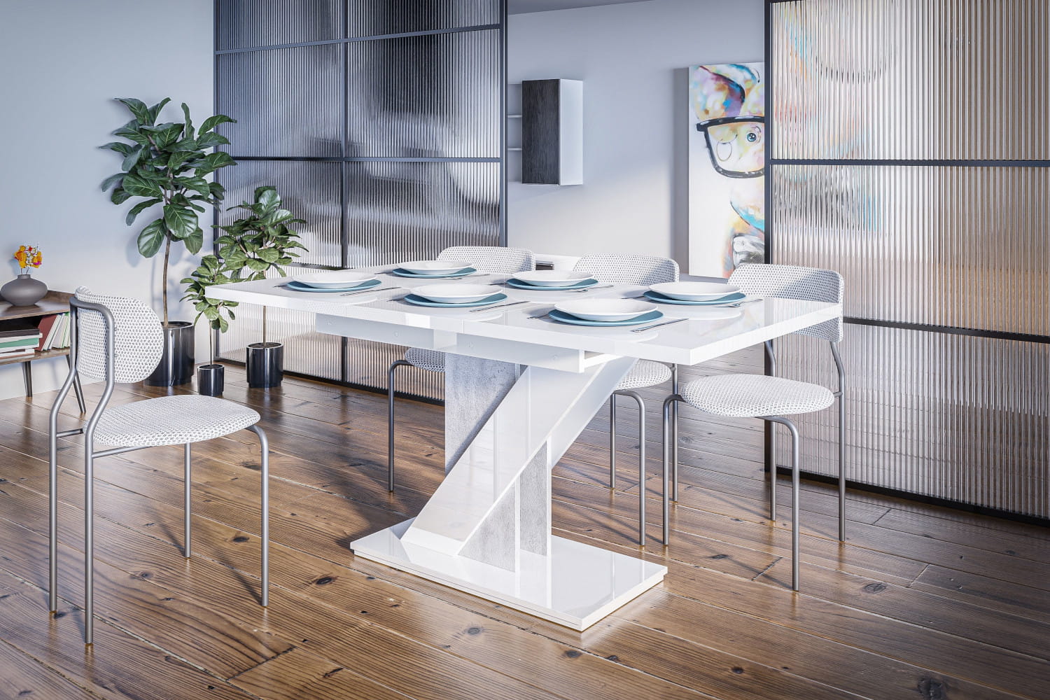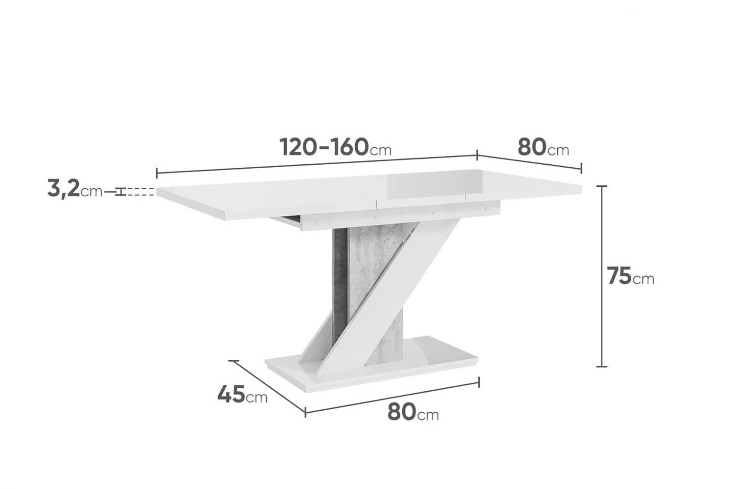 Stół rozkładany biały połysk - beton MEWO 120- 160