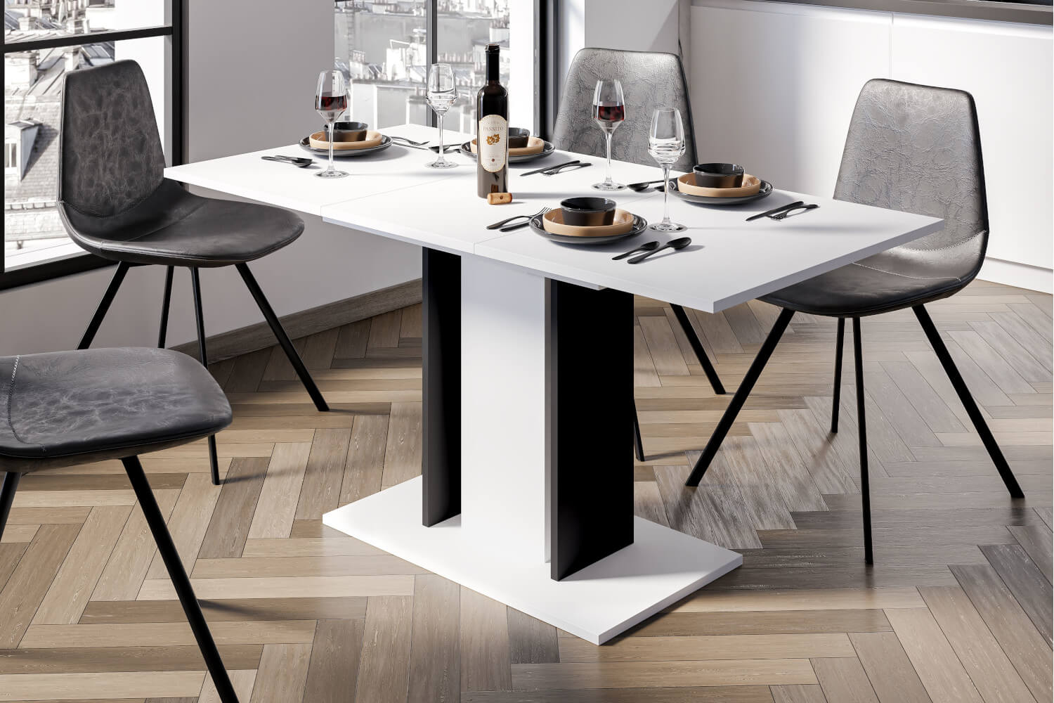 Stół rozkładany mały 100-140 cm biały-czarny mat WODIN MINI