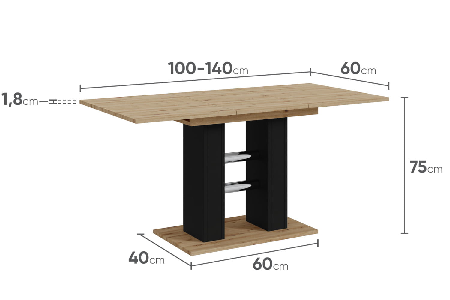 Stół rozkładany mały 100-140 cm dąb artisan-czarny WILDIN MINI