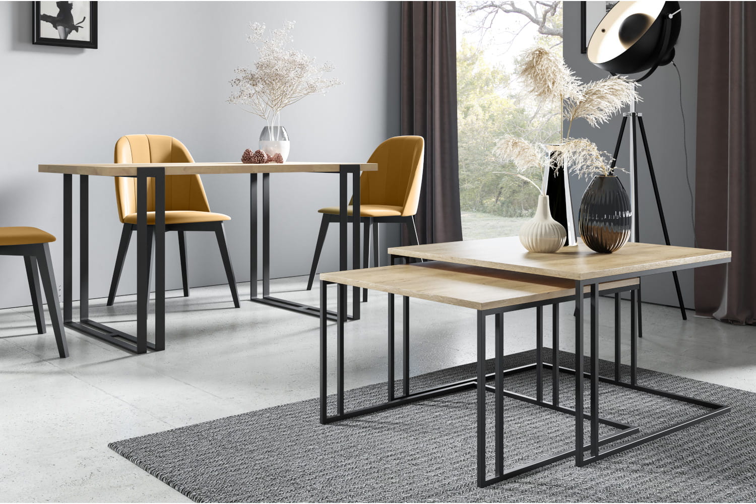 Podwójny stolik kawowy ASTER wprowadzi do Twojego wnętrza nie tylko powiew świeżości, ale również ogrom loftowego stylu. Proste, kwadratowe blaty, dostępne w kilku wariantach kolorystycznych, zostały osadzone na metalowych podporach. Mogą zostać wybarwione na kolor czarny, kaszmirowy bądź biały dzięki metodzie malowania proszkowego. Dwie odrębne bryły stolików można ustawić w odpowiedni sposób tak, aby tworzyły dwupoziomową ławę, która zmieści wiele kaw i przekąsek podczas spotkań towarzyskich. Industrialny klimat to znak rozpoznawczy stolika kawowego ASTER!