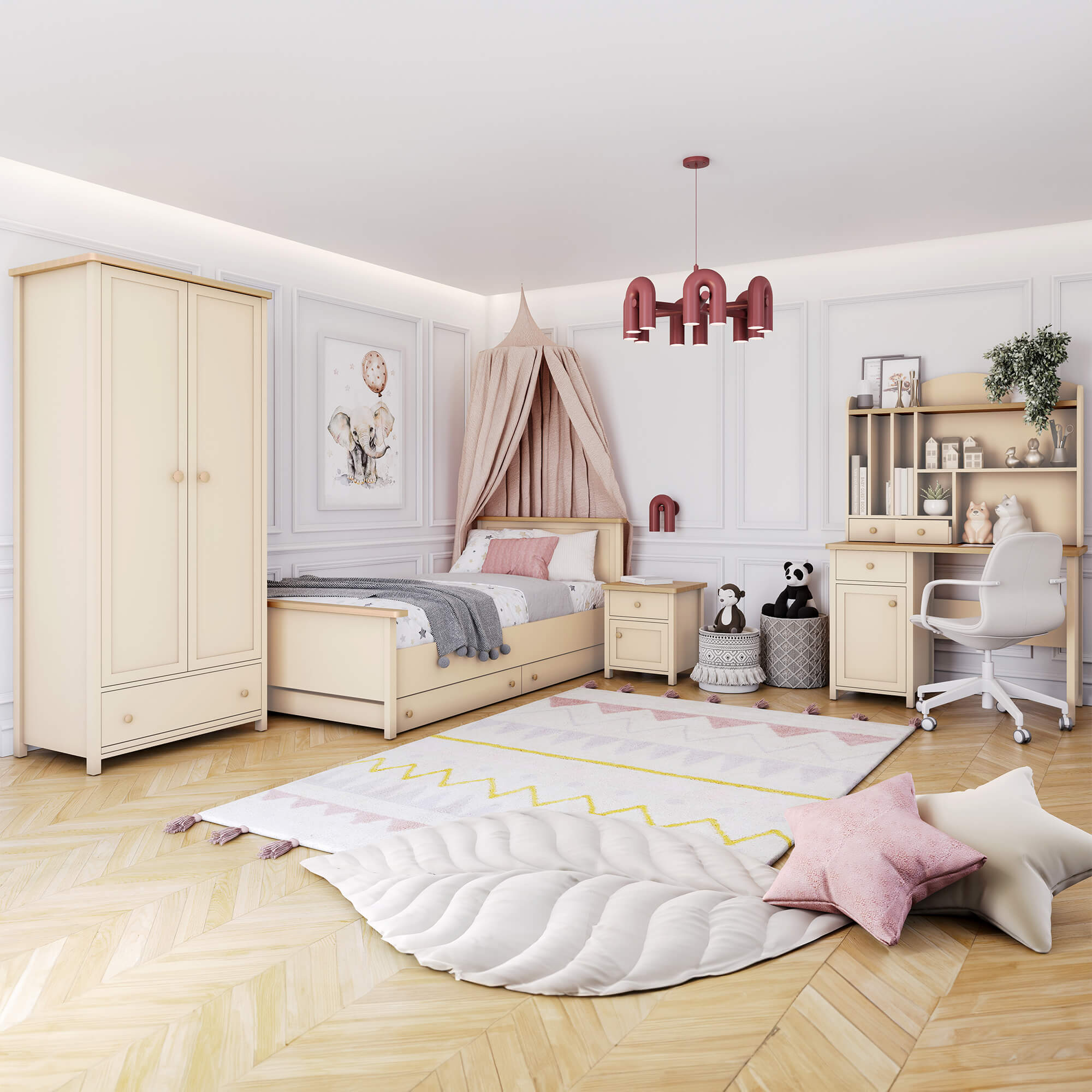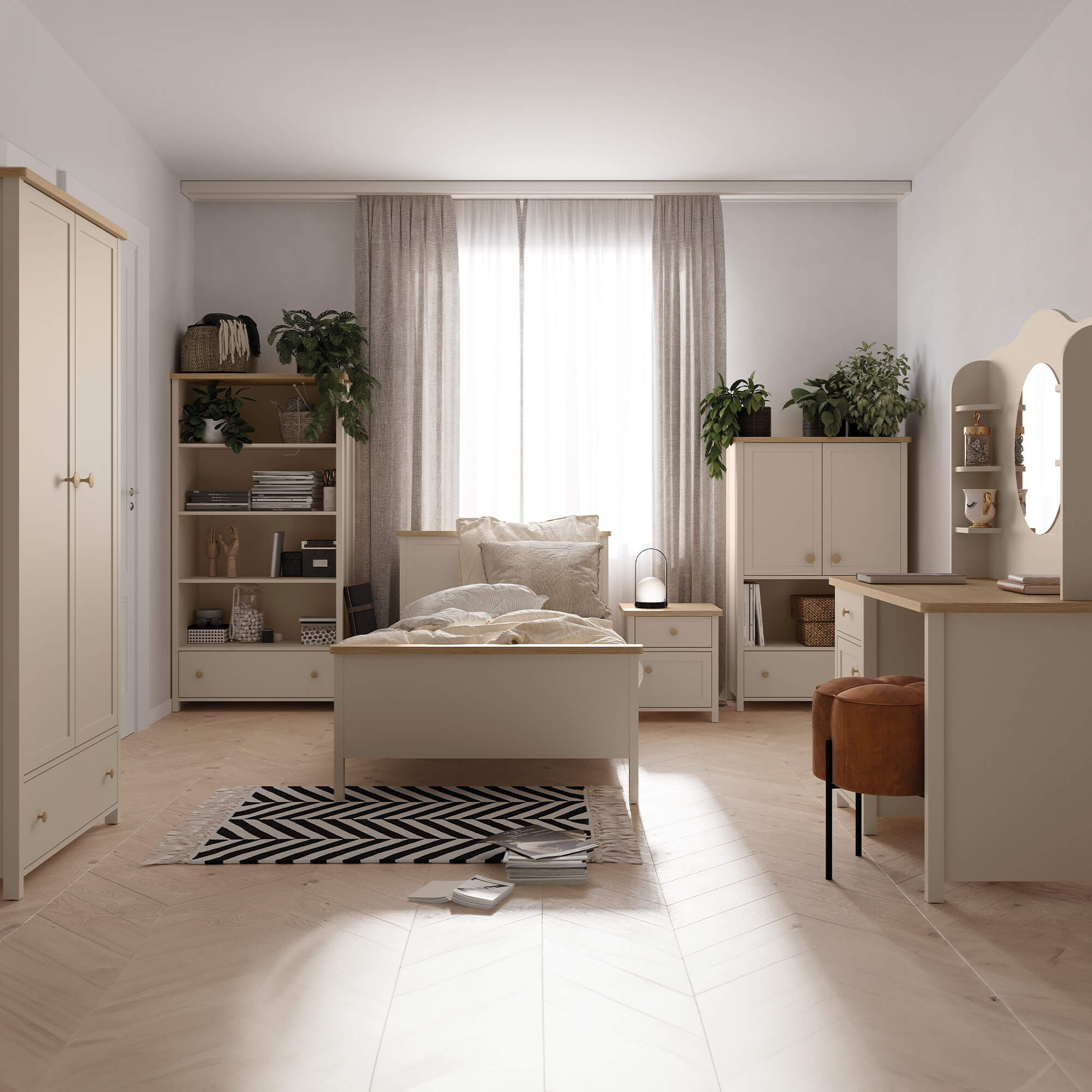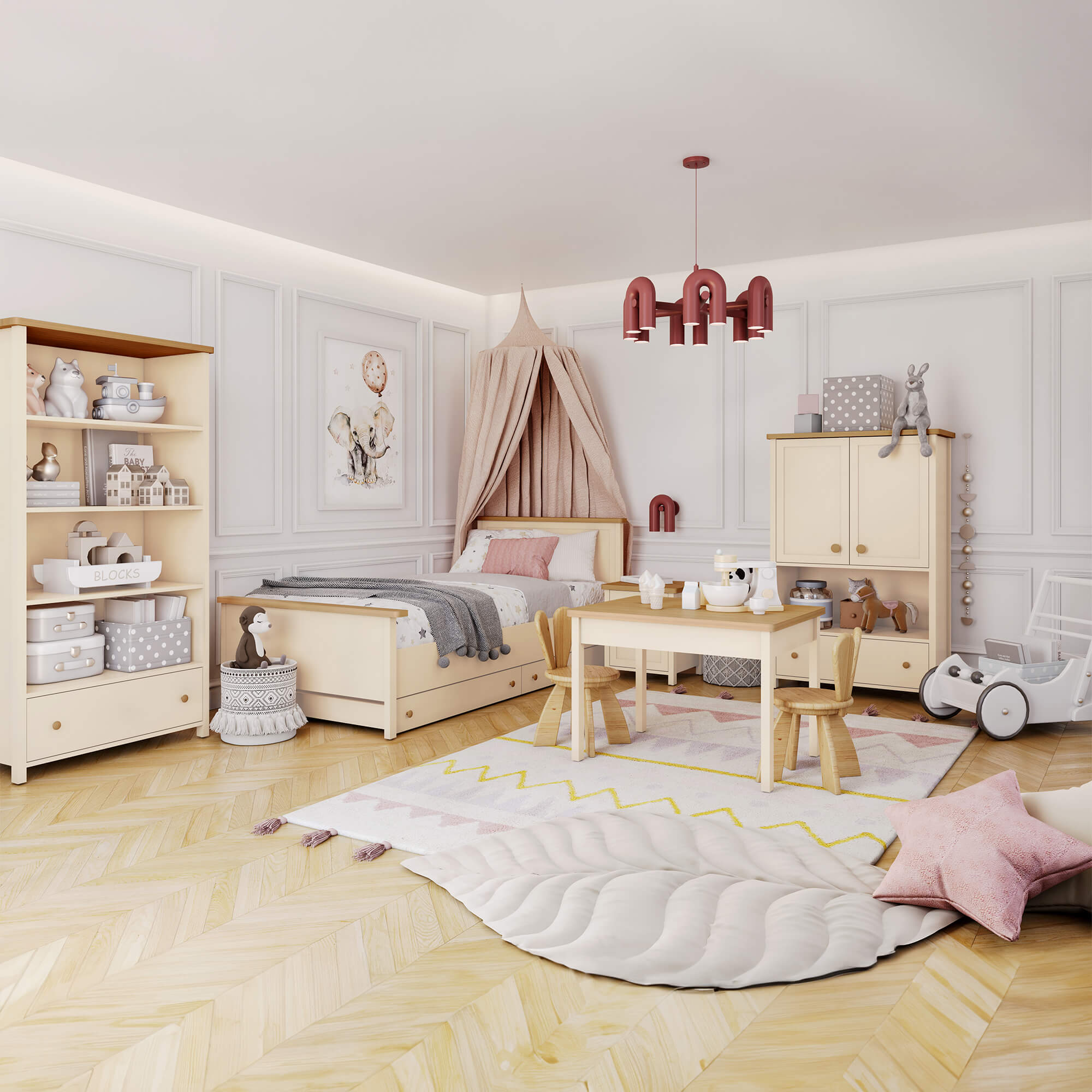System mebli STORY został stworzony z myślą o wyposażeniu przytulnych, klasycznych oraz pełnych wdzięku wnętrz. Kolekcja charakteryzuje się ponadczasową stylistyką, różnorodnością oraz funkcjonalnością, co pozwoli idealnie urządzić pokój dla nastolatki oraz młodej kobiety. Wielofunkcyjność mebli daje możliwość dostosowania wnętrza do aktualnego zapotrzebowania i upodobania. Klasyczne bryły z najchętniej wybieranymi elementami imitujących strukturę drewna będą zachwycały swoje użytkowniczki uniwersalnym stylem.