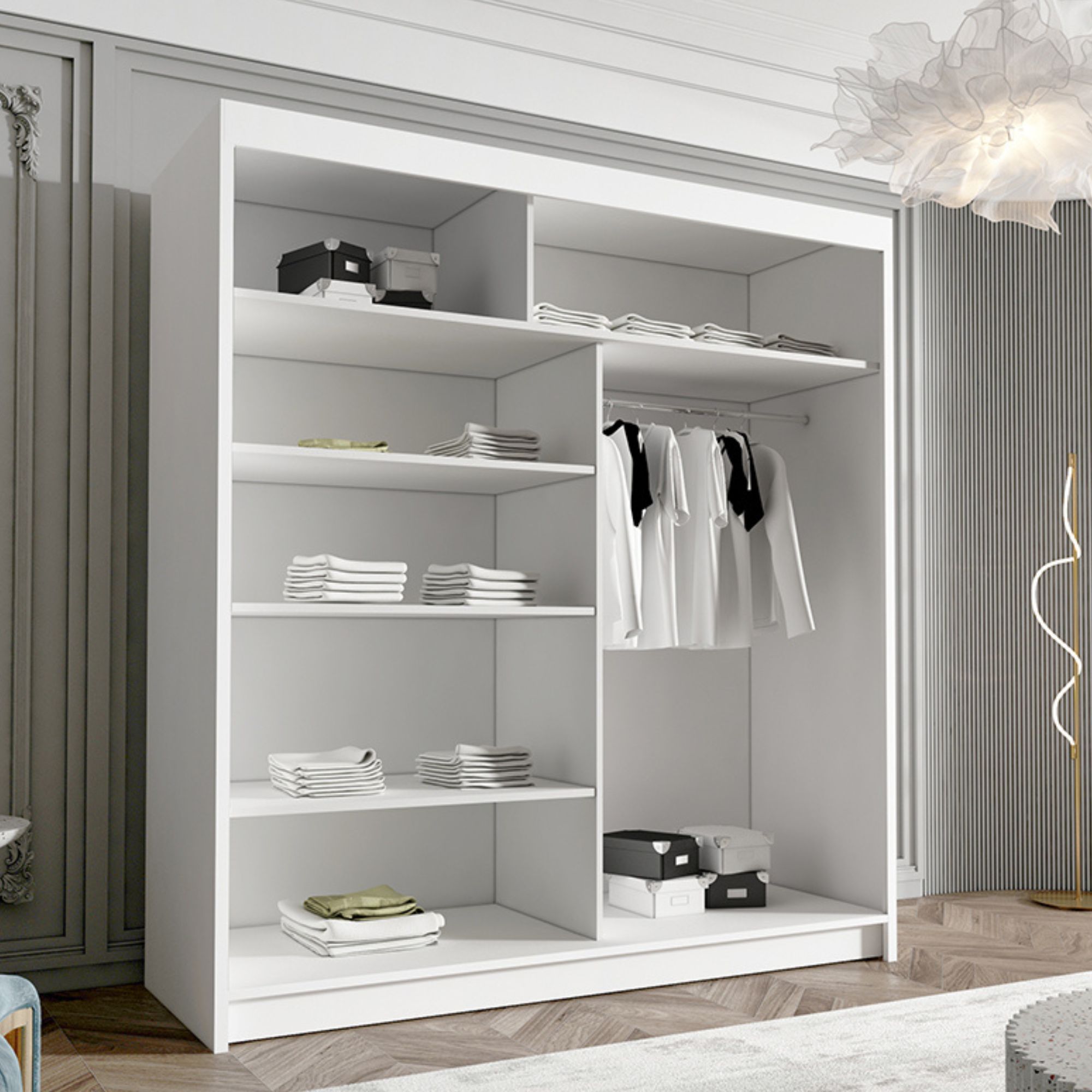 Wykonana z trwałych i odpornych materiałów, szafa HUGA gwarantuje długie użytkowanie bez utraty walorów estetycznych. System płynnie przesuwających się drzwi zapewnia komfort i cichą pracę każdego dnia. To mebel, który łączy w sobie jakość wykonania, nowoczesny wygląd i praktyczność na co dzień.