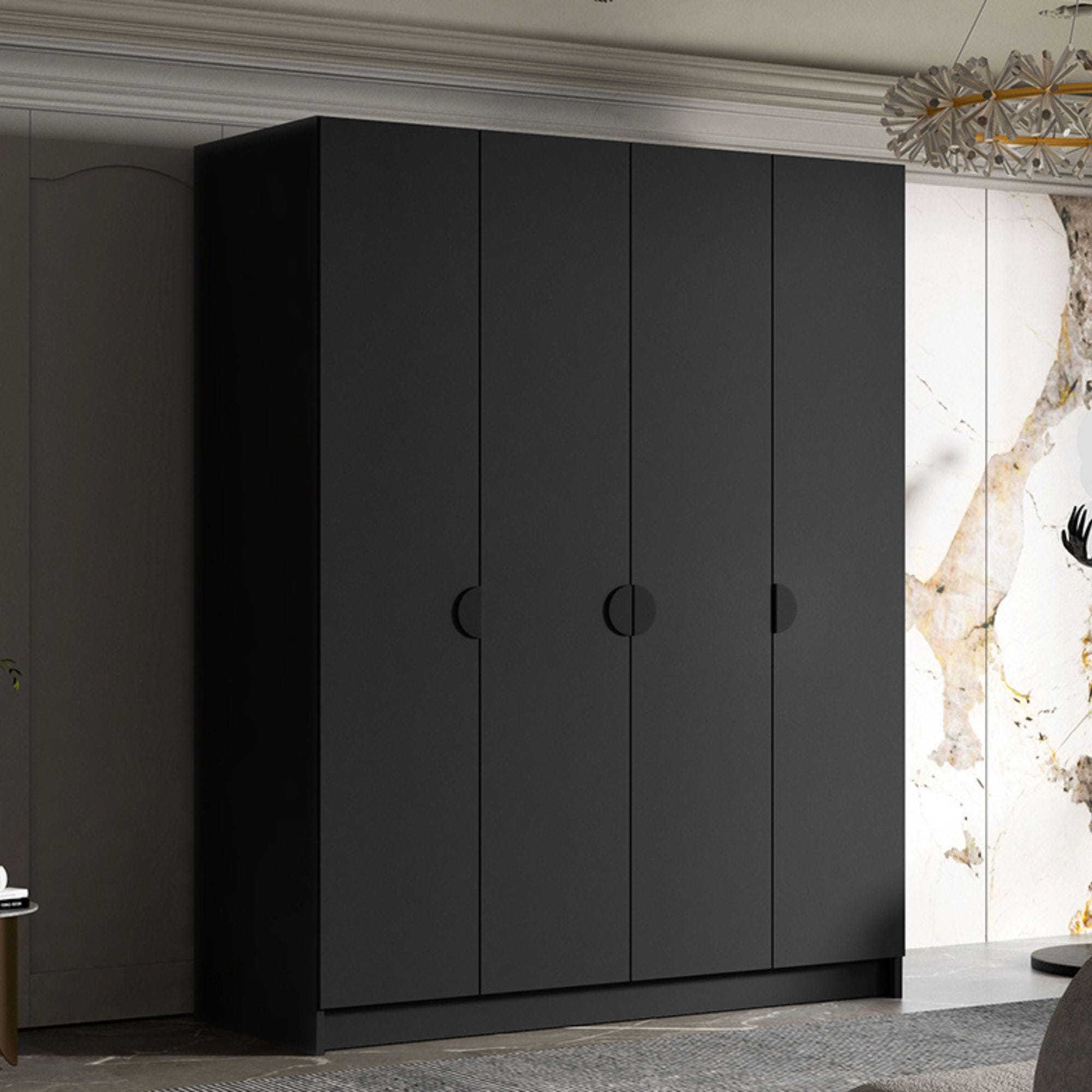 Szafa czterodrzwiowa 200 cm DIANA czarna drążek i półki