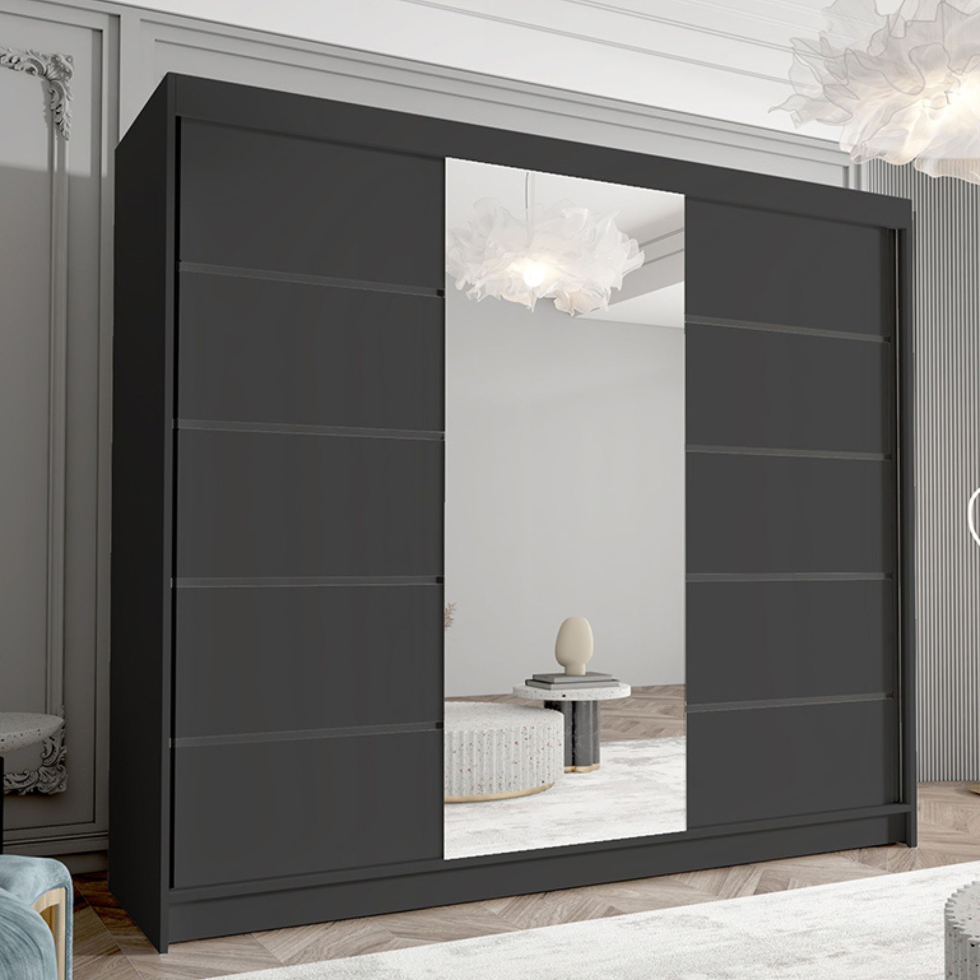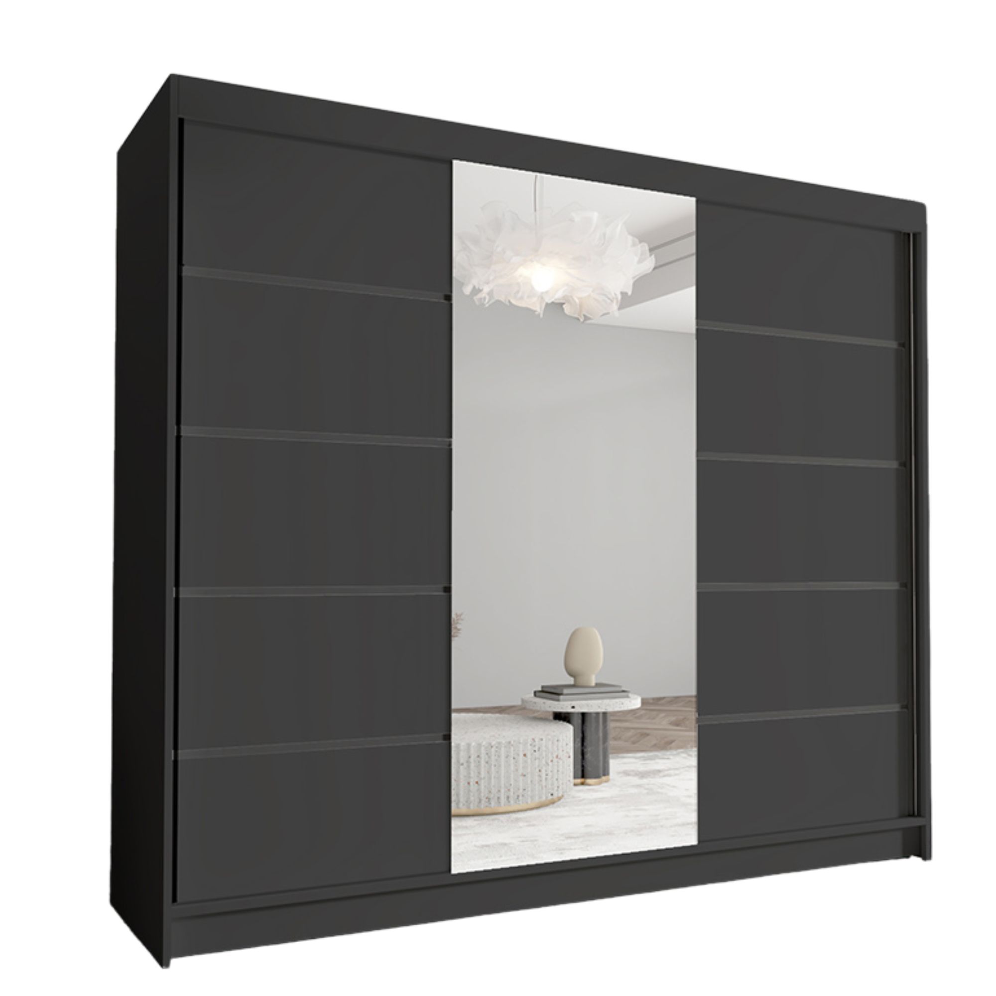 Szafa z lustrem 250 cm DIAVO VI czarny mat