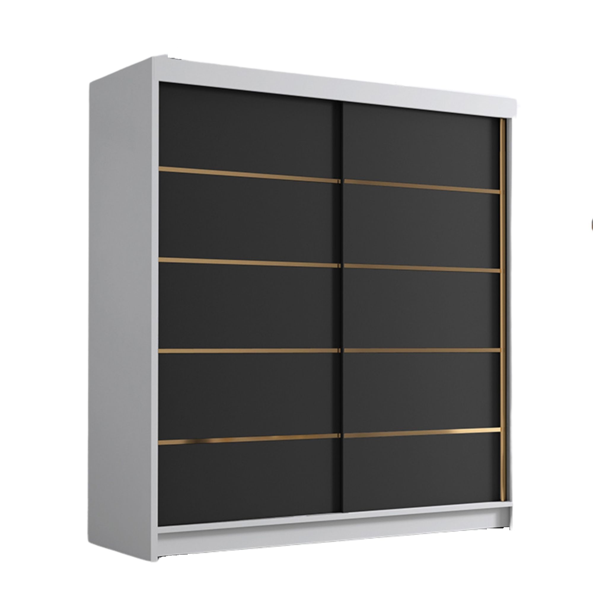 Szafa BELLI, o szerokości 180 cm, to idealne połączenie minimalistycznej estetyki z wysoką użytecznością. Złote szprosy efektownie dopełniają całość, tworząc spójną i stylową kompozycję. Taka szafa świetnie sprawdzi się jako centralny punkt aranżacji, który nie tylko spełnia funkcję praktyczną, ale też nadaje przestrzeni wyrazistego stylu.
