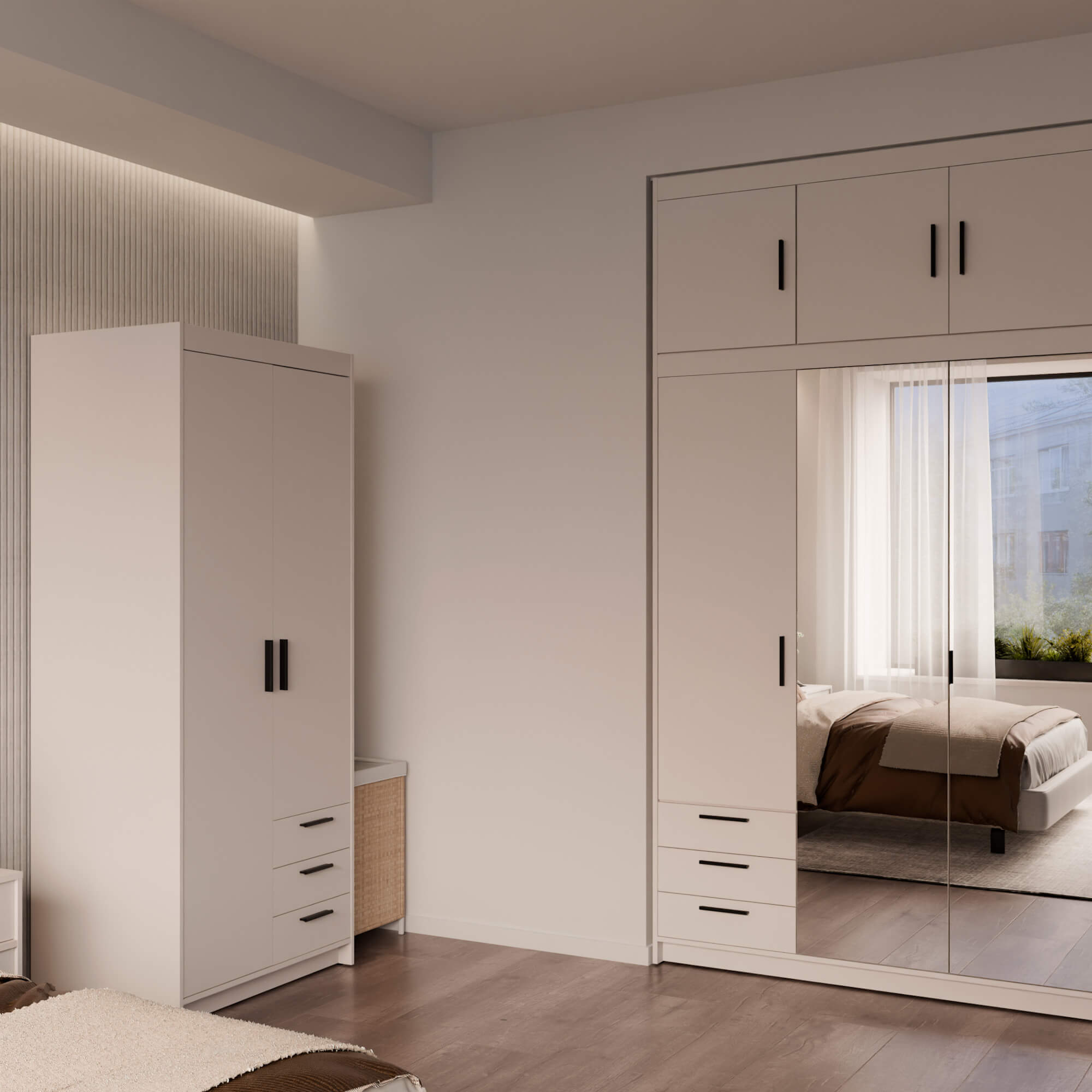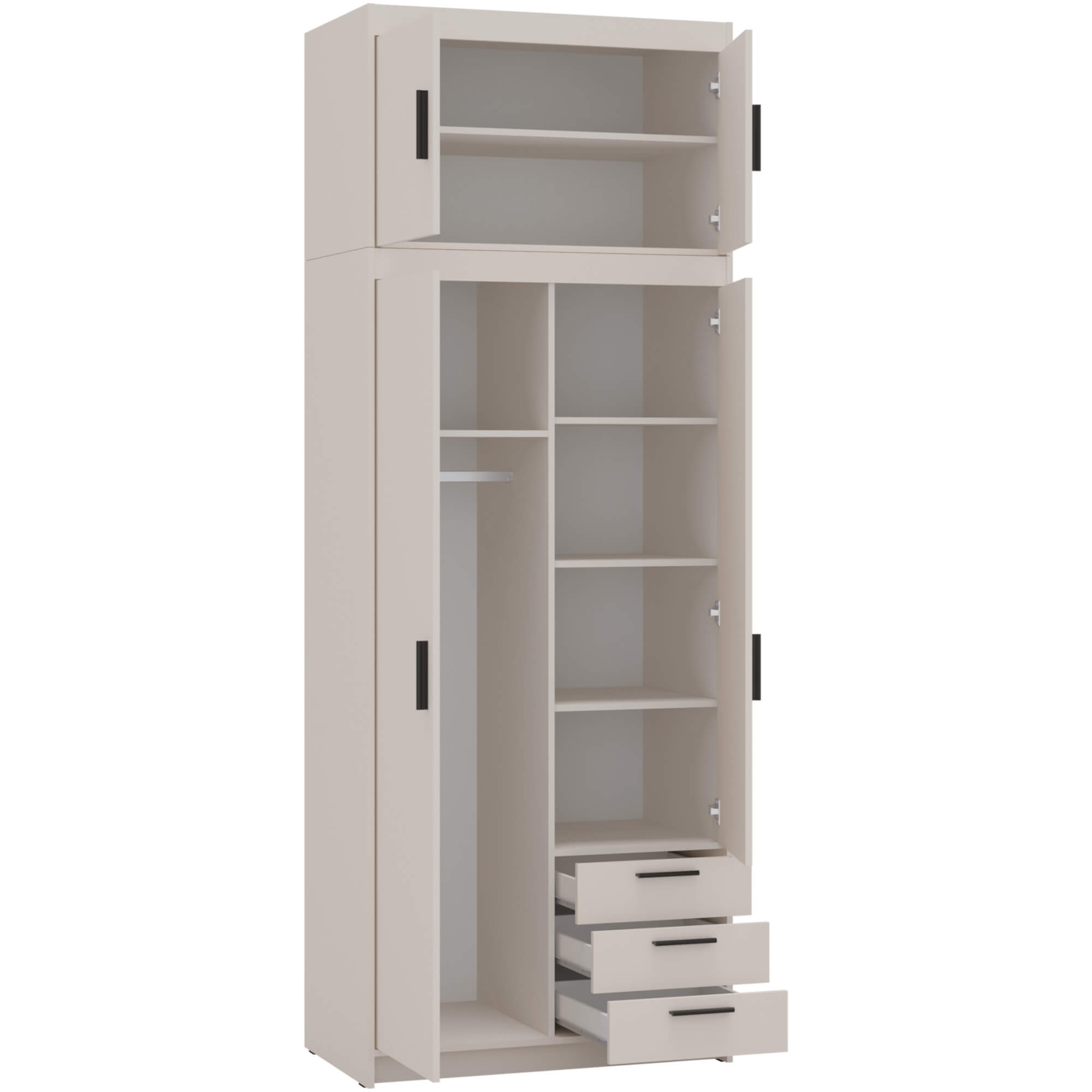 Szafa LENA to idealne rozwiązanie do każdego wnętrza. Jej minimalistyczny design w beżowym kolorze wprowadza lekkość i świeżość, sprawiając, że pomieszczenie staje się bardziej przestronne.