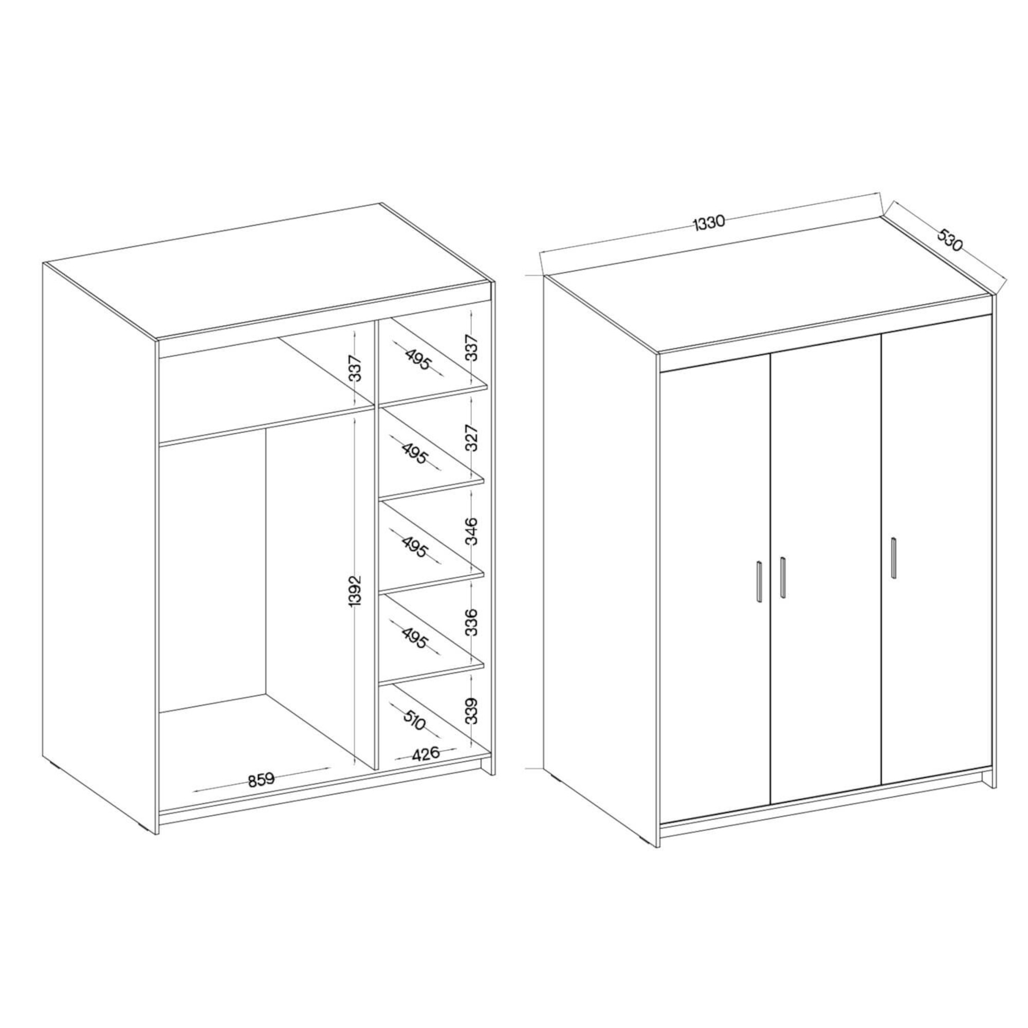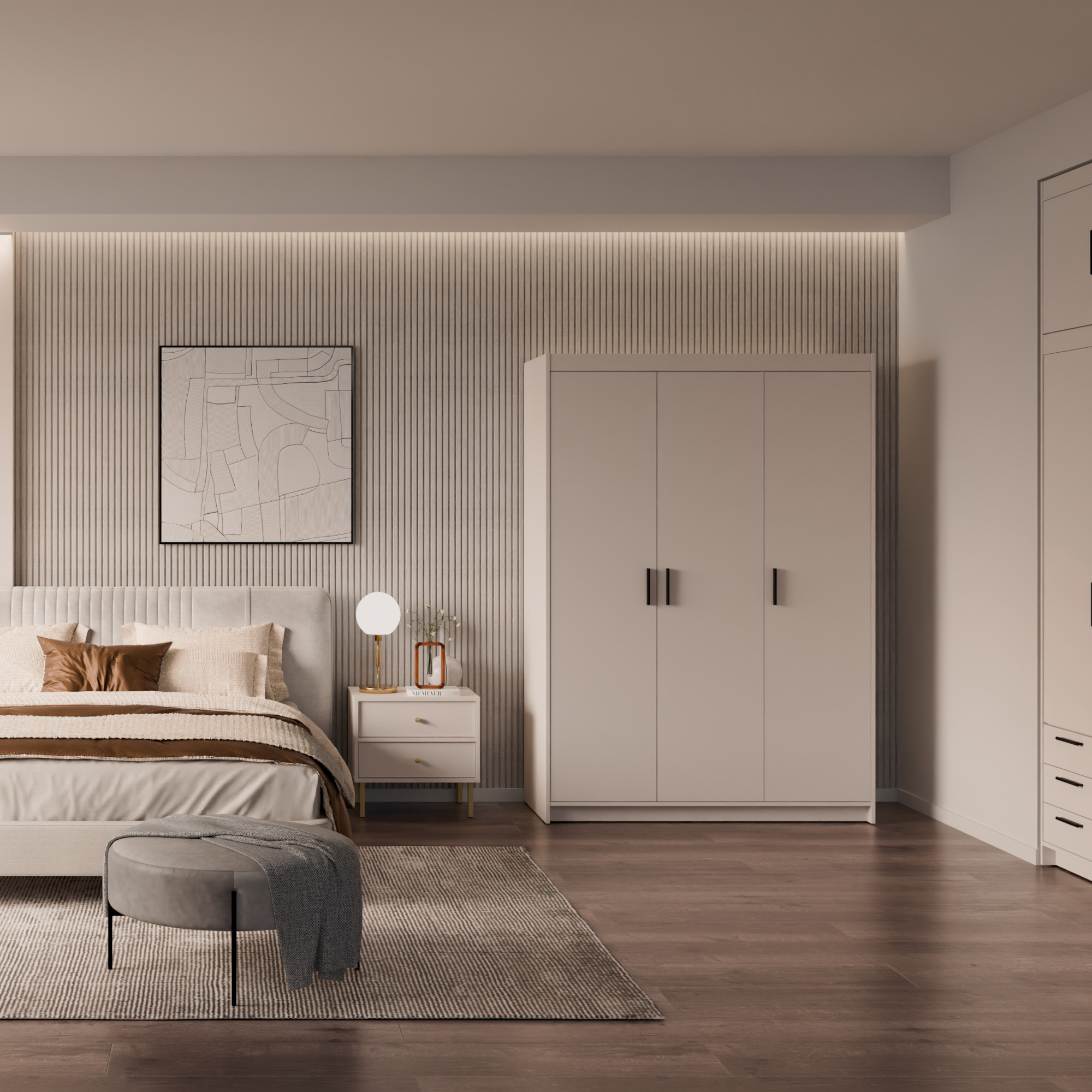 LENA 3D to klasyczna szafa w eleganckim, beżowym kolorze, który nadaje wnętrzu ciepła, doskonale wpisując się w ponadczasowe aranżacje. Wykonana z laminowanej płyty wiórowej o grubości 15 mm, łączy trwałość z estetycznym wykończeniem. Szafa wyróżnia się wysoką funkcjonalnością i komfortem użytkowania, zachowując przy tym klasyczny design. Jej wnętrze zostało zaprojektowane z myślą o wygodnym przechowywaniu - wyposażone jest w praktyczne półki oraz drążek na ubrania.