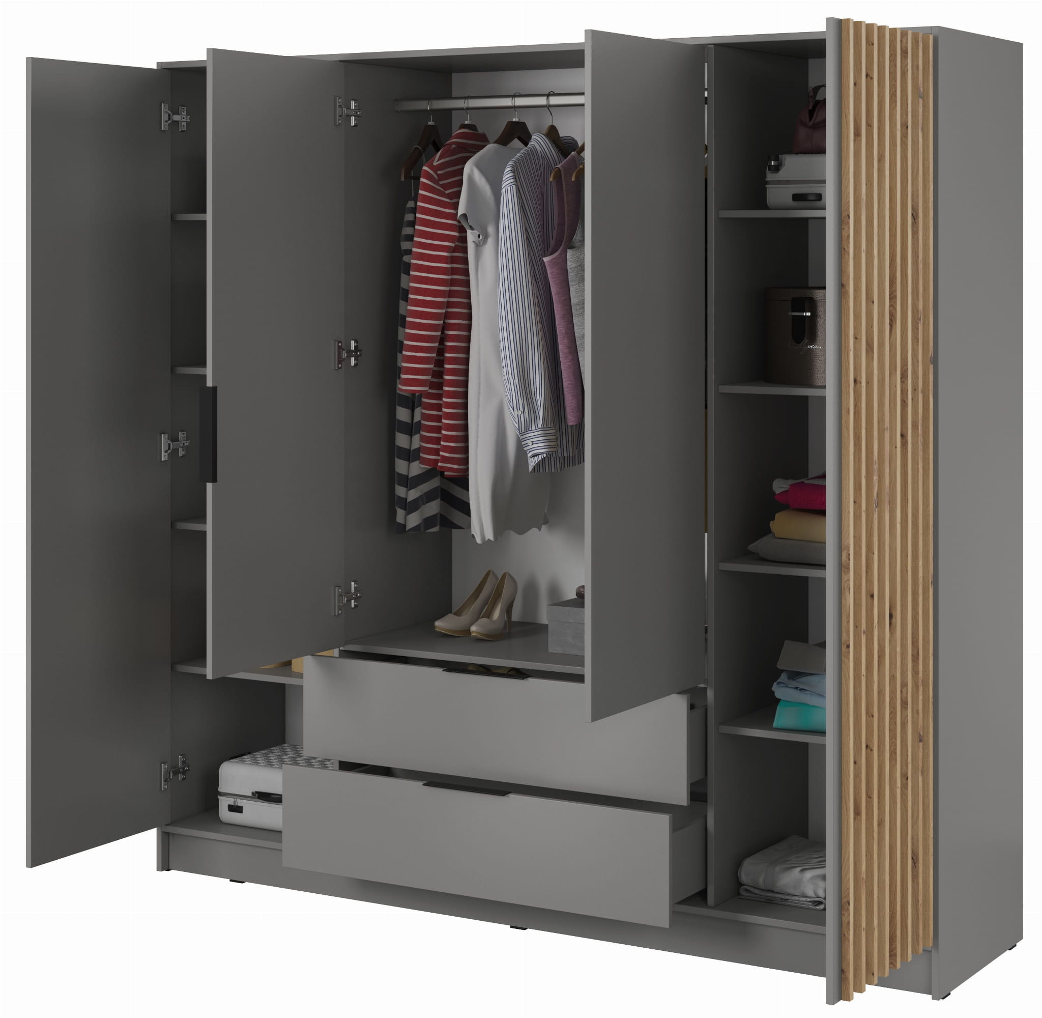 Szafa czterodrzwiowa NELI 206 cm szara z lamelami