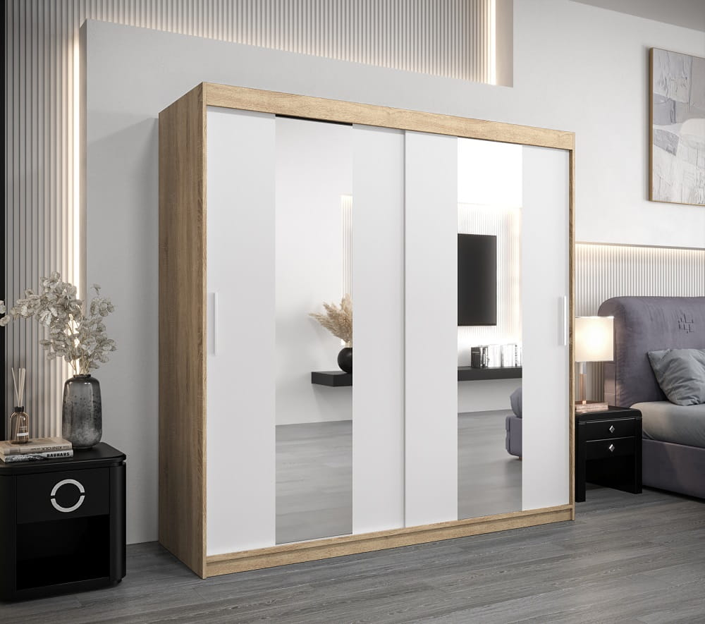 Szafa przesuwna POLENA wypełni przestrzeń przedpokoju w funkcjonalny sposób. Dzięki lustrzanym pasom zyskuje bardziej eleganckiego charakteru, natomiast w odpowiedniej wersji kolorystycznej doskonale będzie współgrać również z wnętrzami bardziej klasycznymi, skandynawskimi. Kolekcja szaf z lustrem POLENA zadba o ład i porządek w Twoim domu.