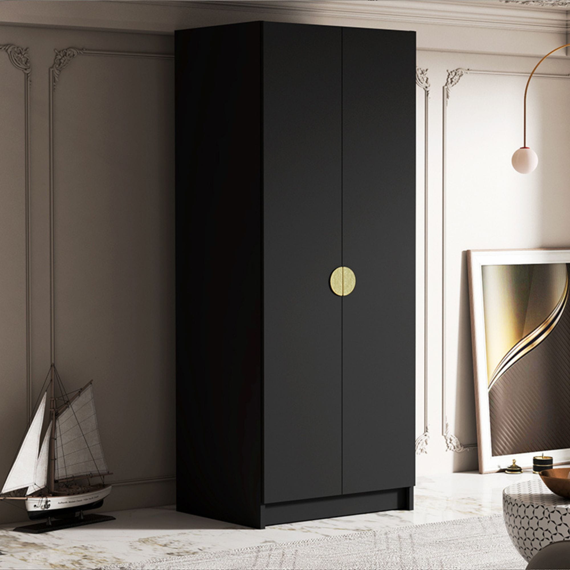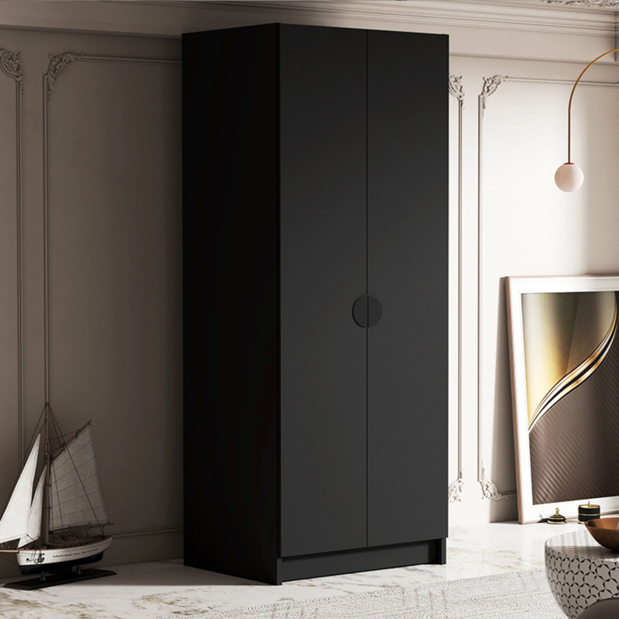 Szafa do pokoju BOSTA to klasyka gatunku, dzięki któremu stworzysz aranżację w każdym z możliwych stylów wnętrzarskich. Mocna kolorystyka czarnego matu pozwoli na skomponowanie loftowej sypialni oraz industrialnego przedpokoju. Do szafy możesz dobrać uchwyt w odcieniu złota lub czerni. W zależności od aranżacji Twojego domu, dopasuj mebel do swoich potrzeb.