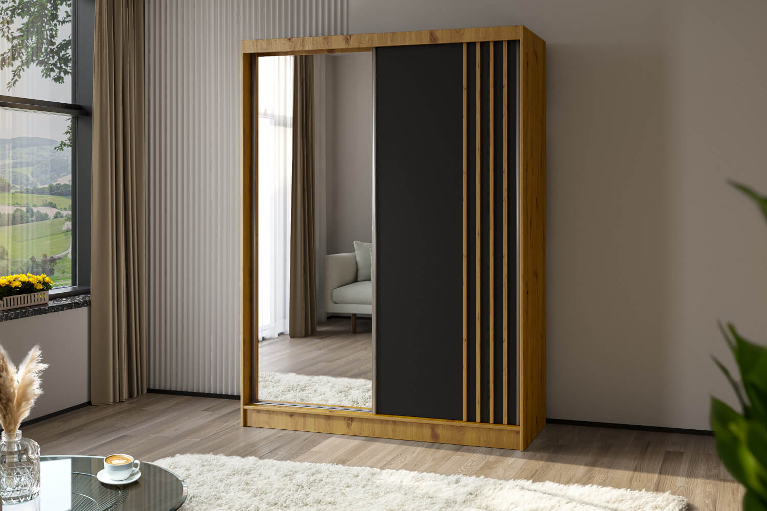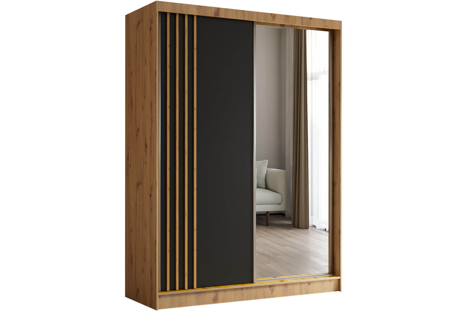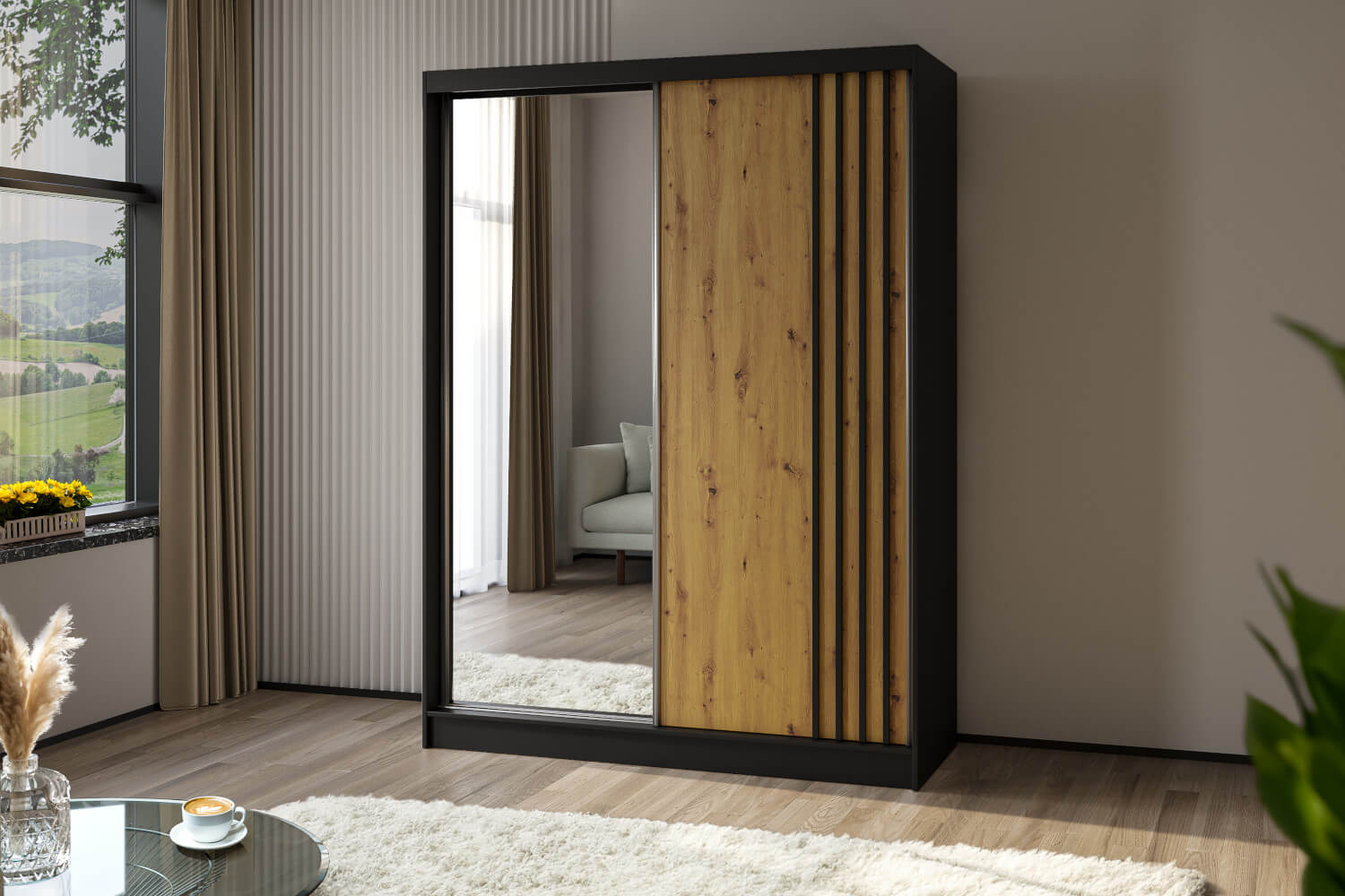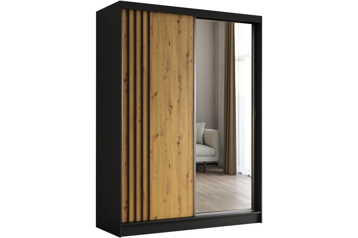 Korpus: Czarny Mat / Front: Dąb Artisan / Lamele : Czarny Mat