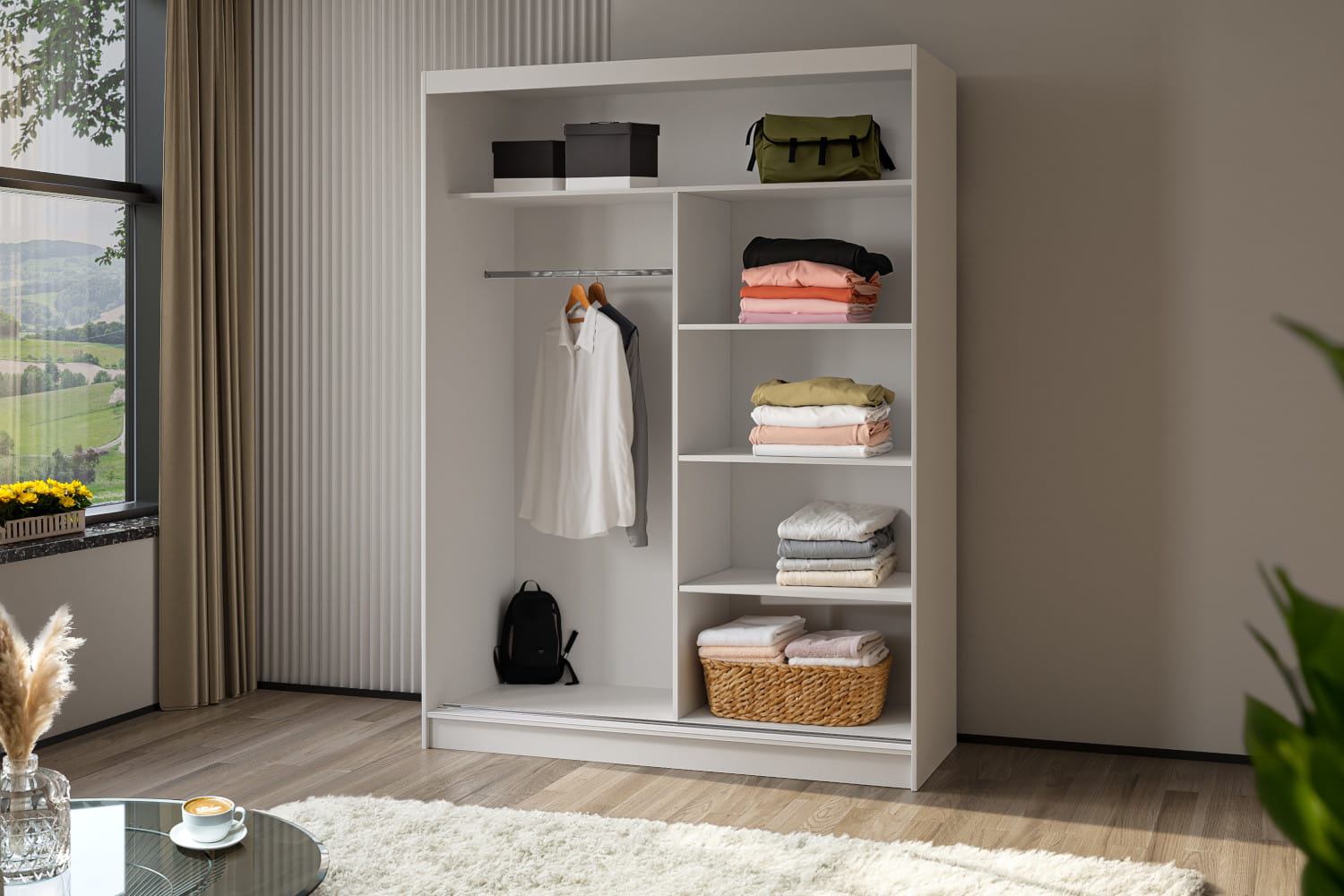 Szafa o szerokości 160 cm to idealne rozwiązanie dla tych, którzy poszukują praktycznego i stylowego mebla do przechowywania swojej garderoby. Minimalistyczny design modelu NILA zwraca uwagę swoją prostotą i elegancją.