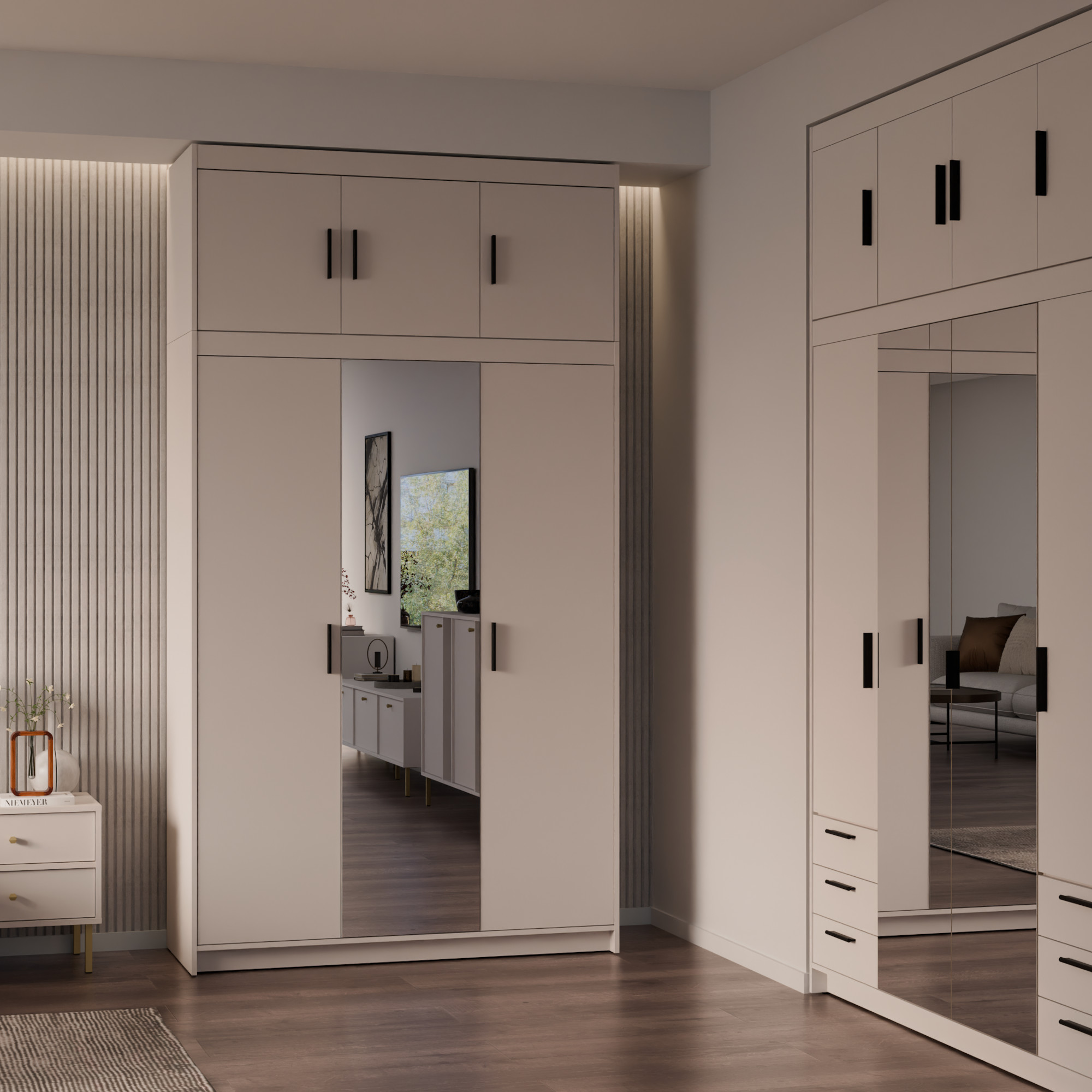 Szafa beżowa uchylna z lustrem LENA 3D BP03 z nadstawką NAEL BP03