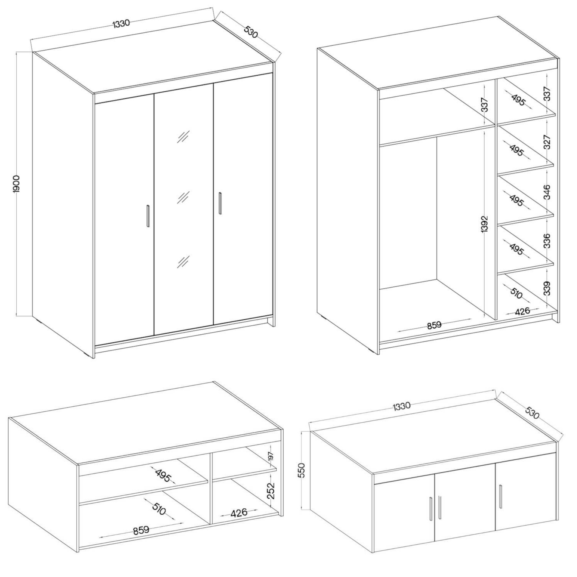 W zestawie znajduje się nadstawka z dwiema półkami, która umożliwia dodatkową organizację przestrzeni. Idealna do przechowywania przedmiotów użytku codziennego. Szafa LENA to praktyczne i estetyczne rozwiązanie, które z pewnością ułatwi organizację przestrzeni w Twoim wnętrzu.