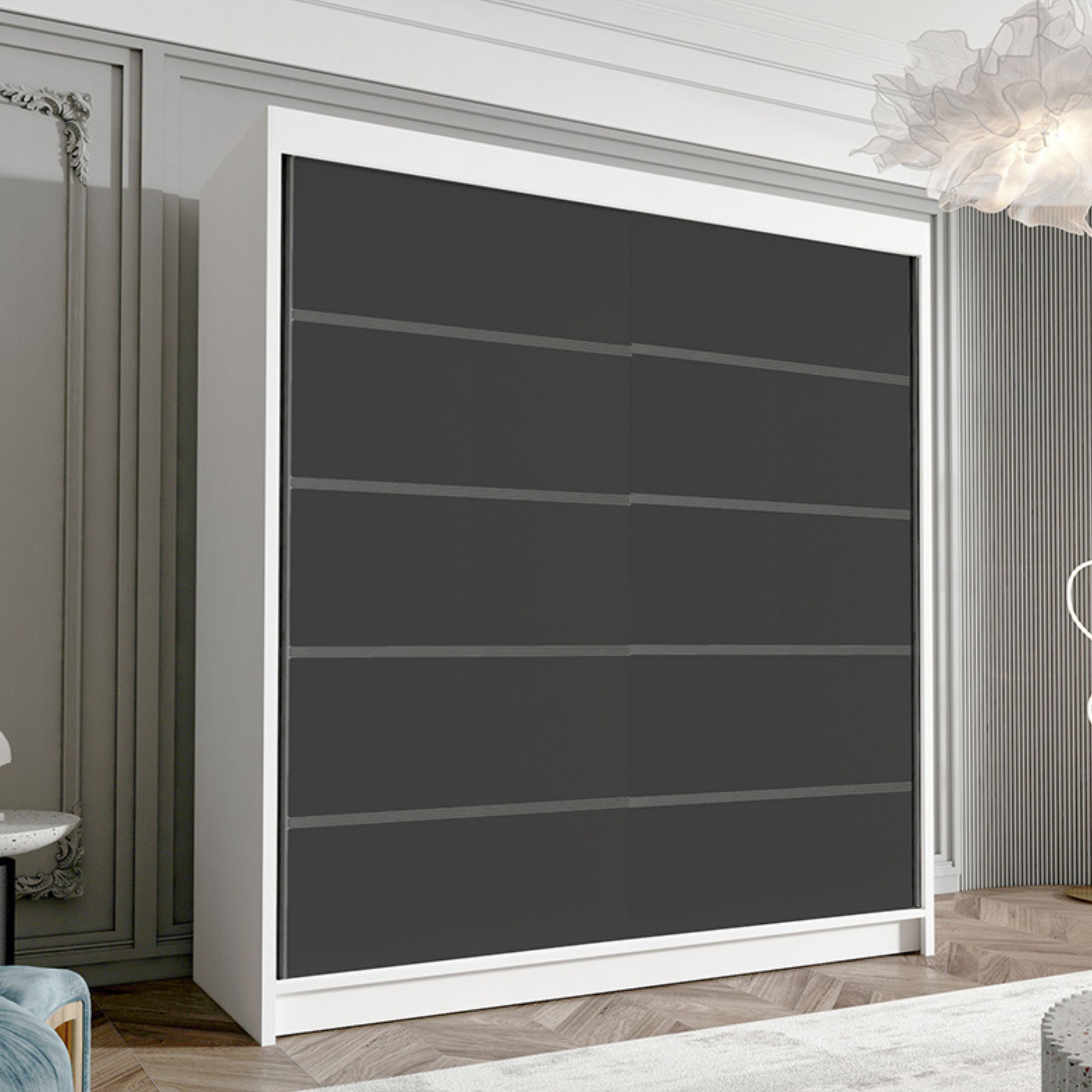 Szafa przesuwna HUGA wyróżnia się prostą, ale wyrazistą formą, która doskonale wpisuje się w nowoczesne wnętrza. Wyraziste detale i starannie dobrana kolorystyka dodają meblowi charakteru, jednocześnie zachowując jego uniwersalny wygląd. To mebel, który łączy w sobie jakość wykonania, nowoczesny wygląd i praktyczność na co dzień. HUGA 180 cm to wybór dla tych, którzy szukają stylowej szafy w kompaktowym formacie, bez kompromisów w kwestii funkcji.