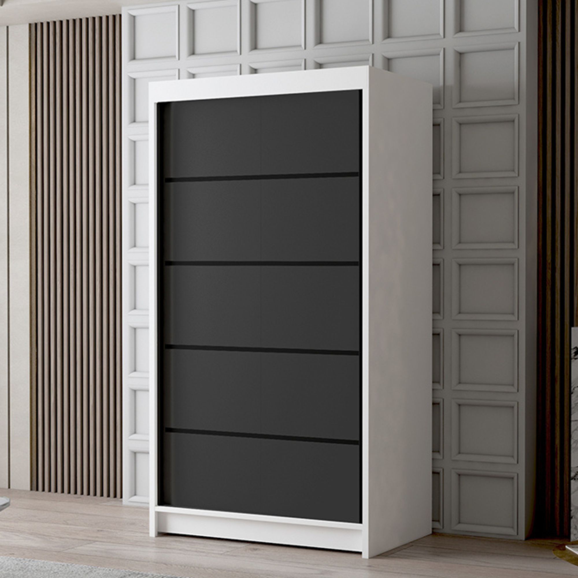 Szafa przesuwna 100 cm LIWIO IV czarny biały mat