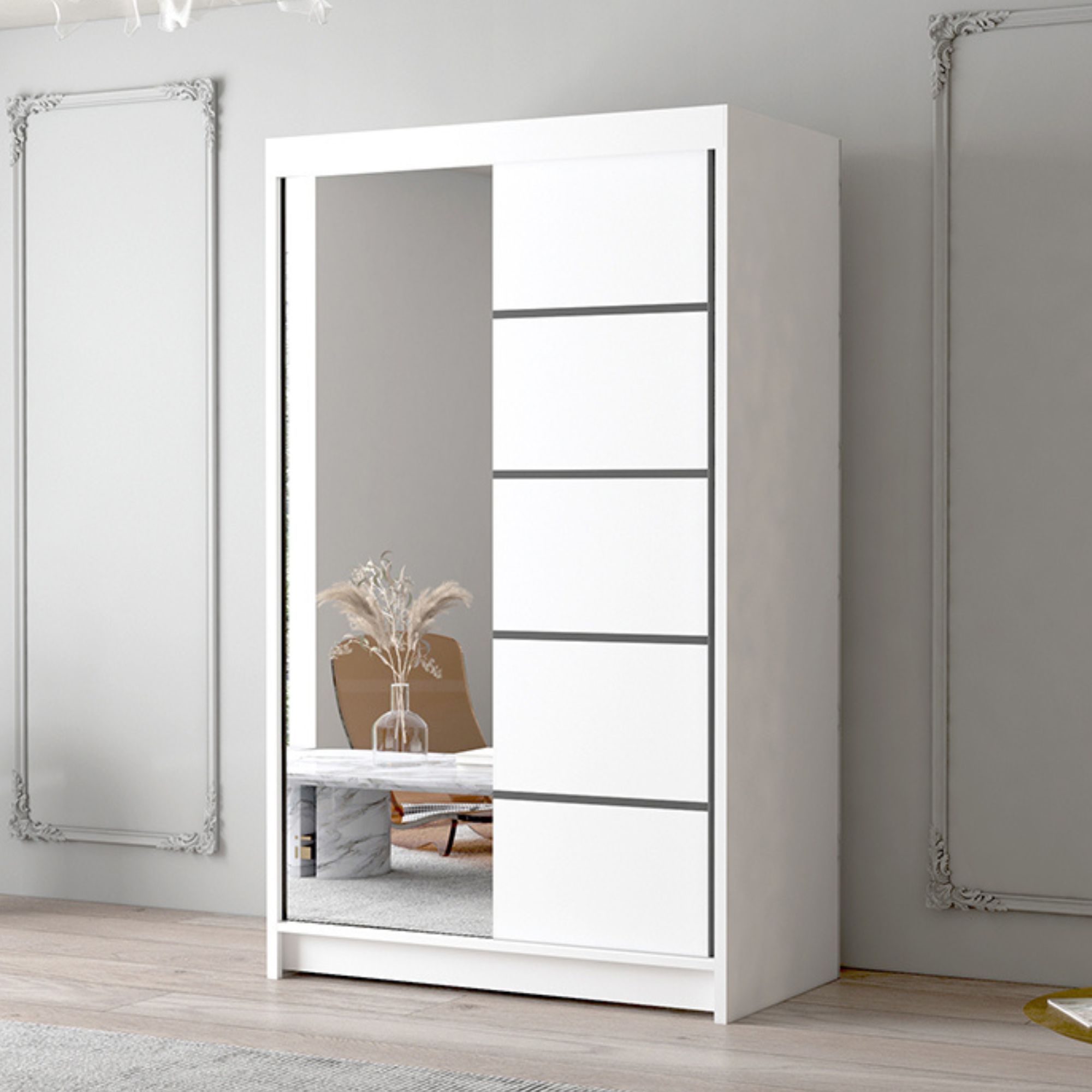 Szafa przesuwna 120 cm biała z lustrem FIDO III