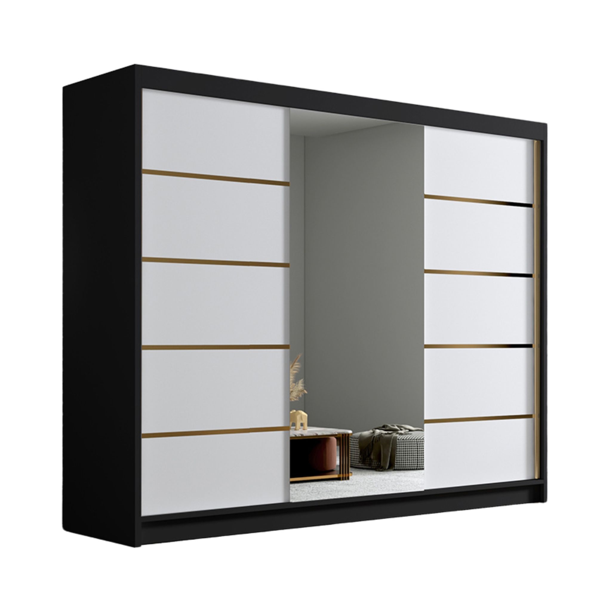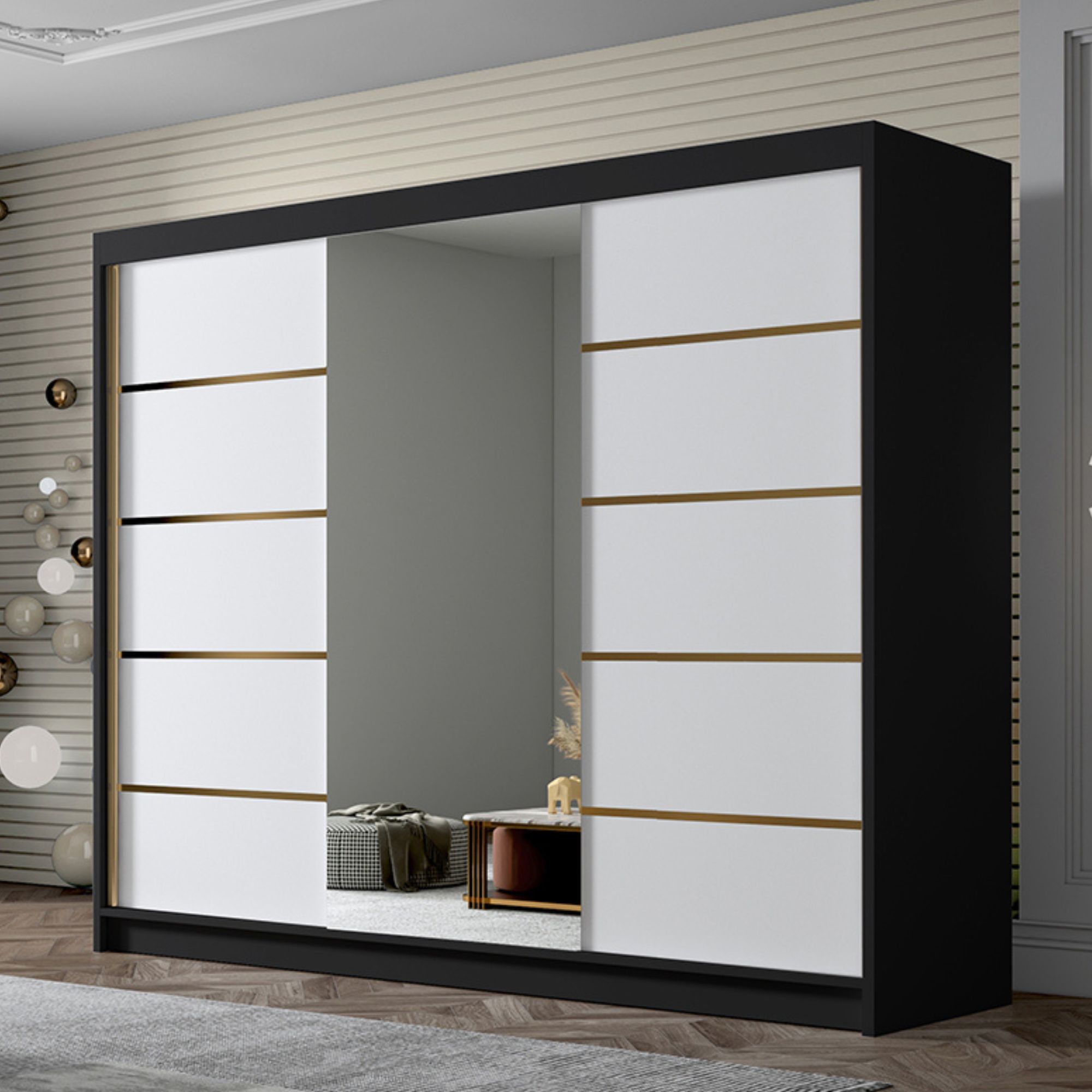 Szafa przesuwna 250 cm biały czarny LAMBI VI z lustrem